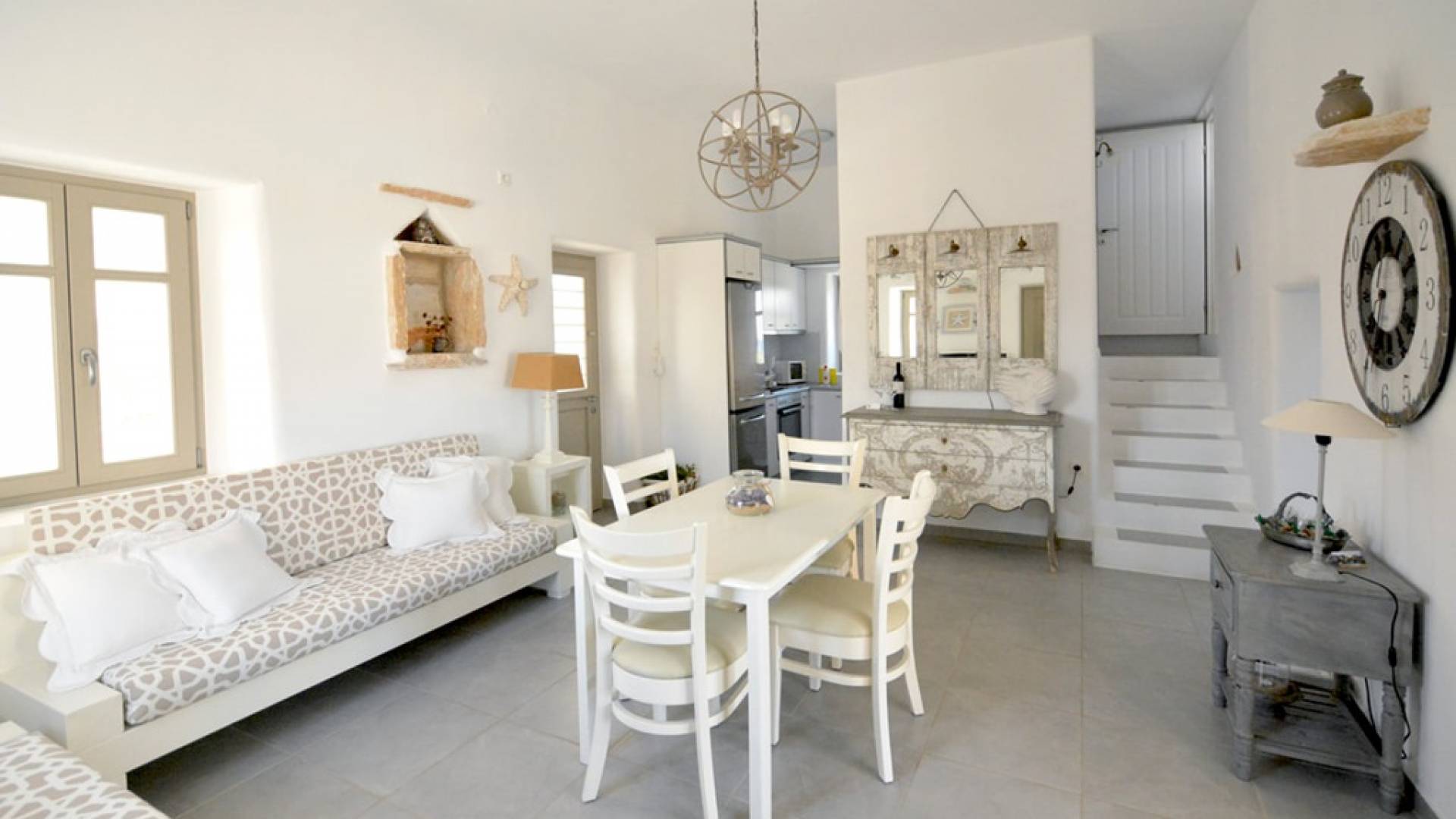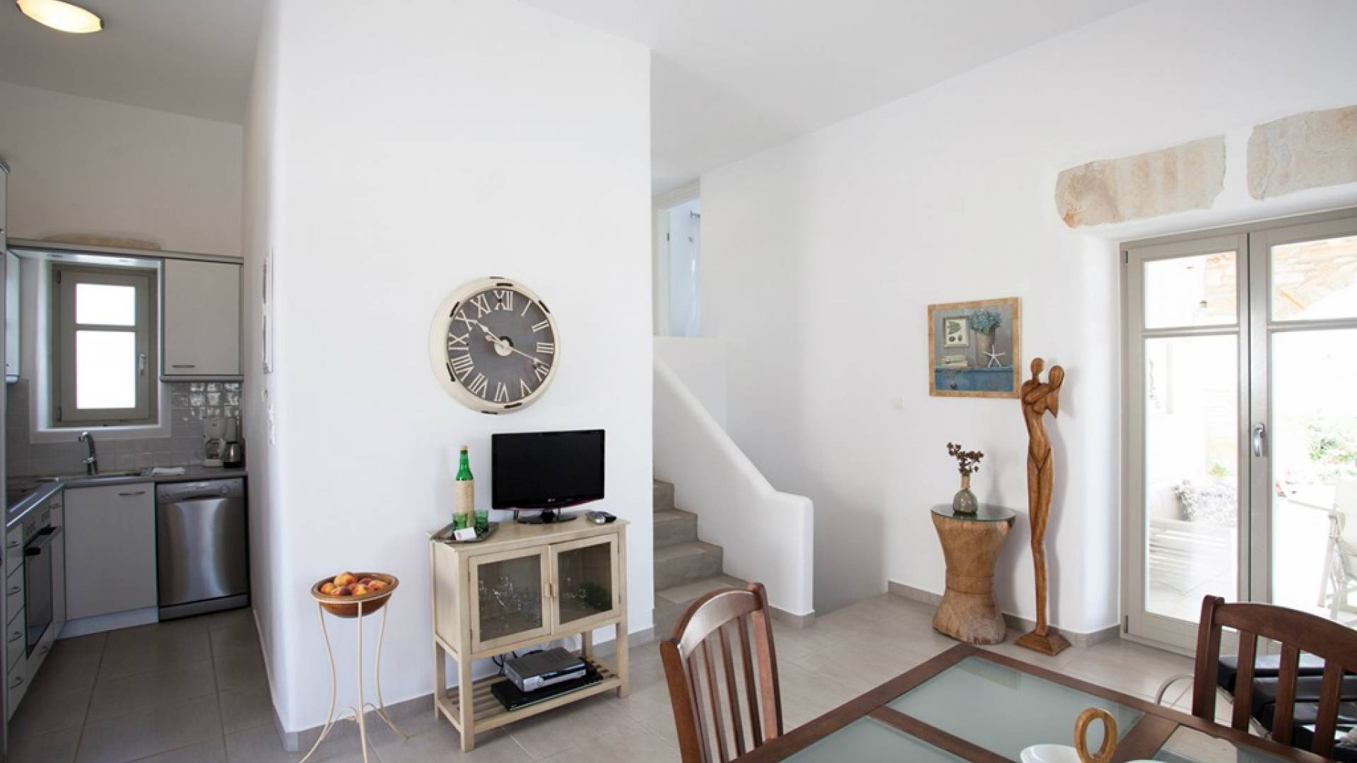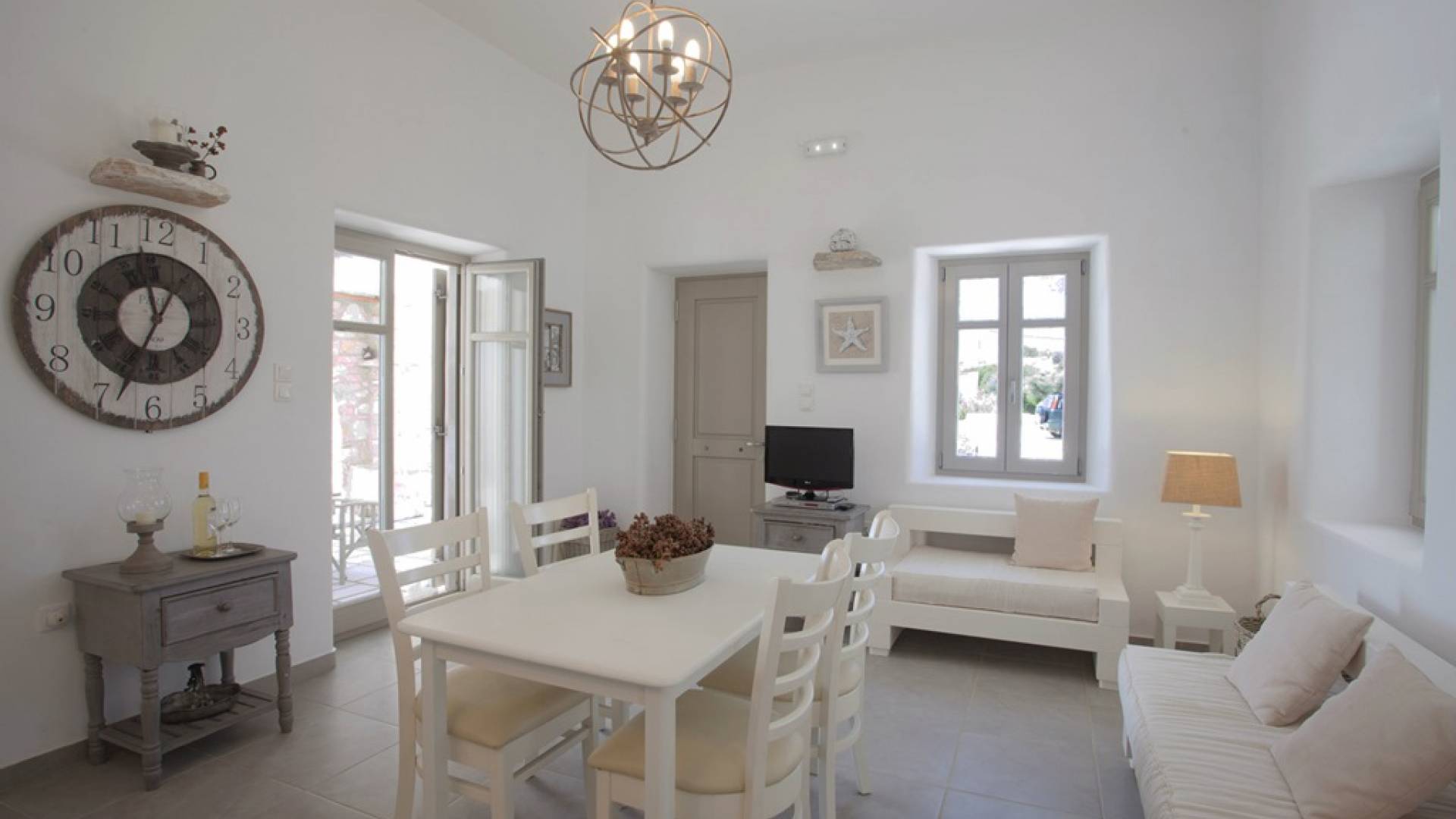 Starfish Villa is a holiday villa rental of 85m2. It has a living room, fully equipped kitchen, dining room, 1 double bedroom, 1 twin bedroom and 1 bathroom. It has also private spacious shaded verandas, outdoor dining areas and private BBQ. It can accommodate 4 persons. It shares the pool, the garden and the parking with the three other Villas. Starfish Villa has a breathtaking view to the pool, the sea and the island of Naxos!