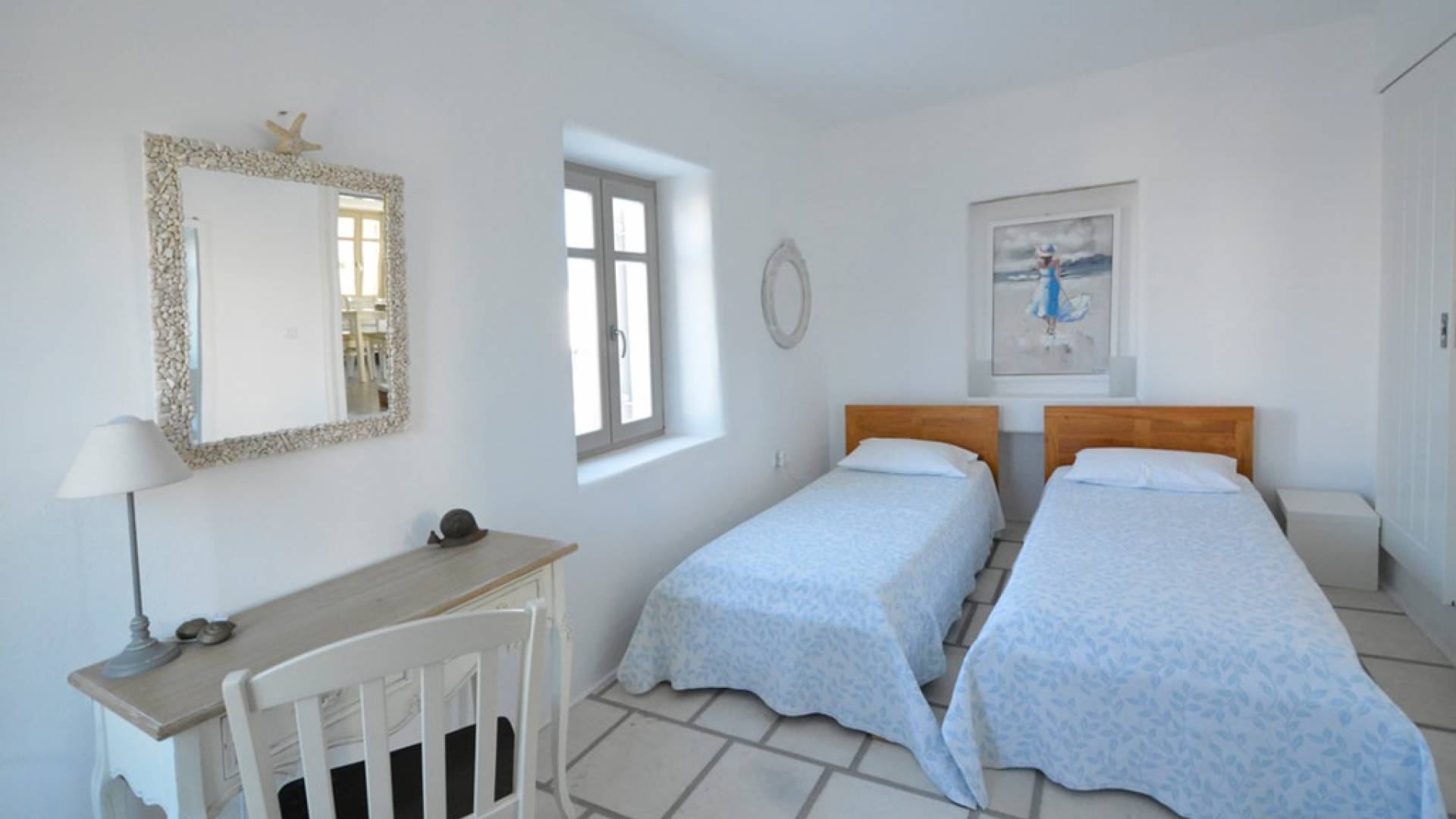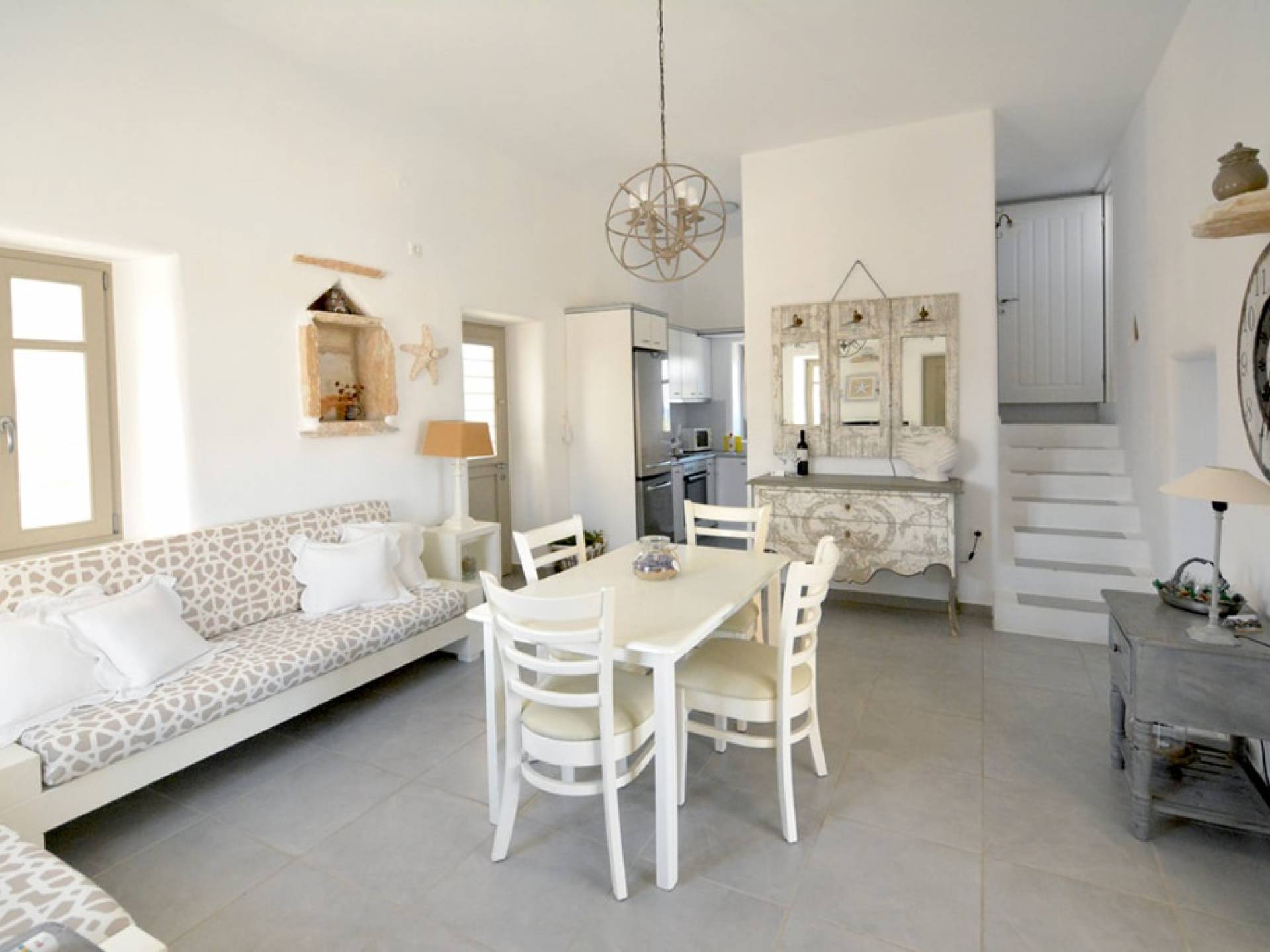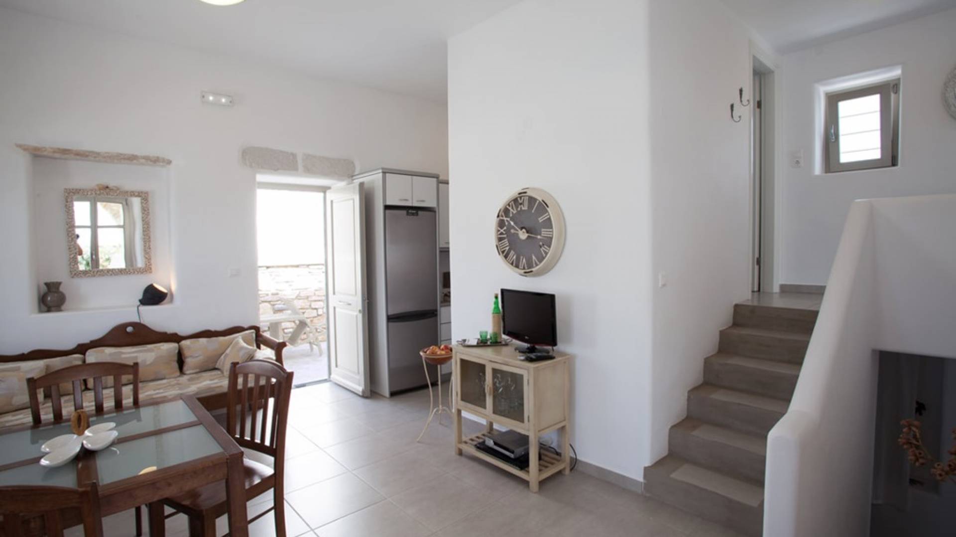 Starfish Villa is a holiday villa rental of 85m2. It has a living room, fully equipped kitchen, dining room, 1 double bedroom, 1 twin bedroom and 1 bathroom. It has also private spacious shaded verandas, outdoor dining areas and private BBQ. It can accommodate 4 persons. It shares the pool, the garden and the parking with the three other Villas. Starfish Villa has a breathtaking view to the pool, the sea and the island of Naxos!