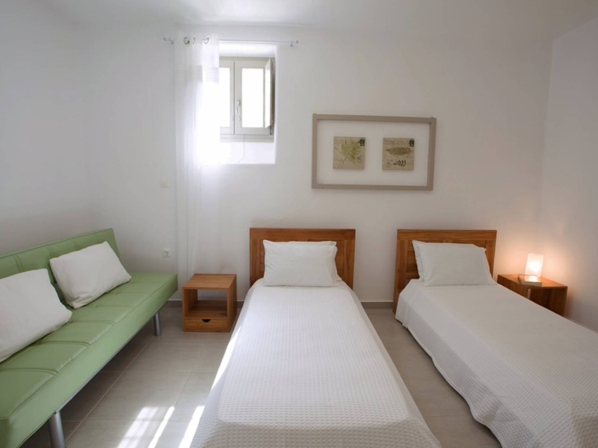 Shell Villa is a holiday rental of 90m2. It has a living room, fully equipped kitchen, dining room, 1 double bedroom, 1 twin bedroom and 2 bathrooms. Shell Villa has also private spacious shaded veranda, outdoor dining area and private BBQ. It can accommodate 4 persons. Possibility of sleeping 1 more person in sofa-bed. It shares the pool, the garden and the parking with the three other Villas. Shell Villa is located next to the common pool while the verandas have breathtaking view to the sea and the island of Naxos!