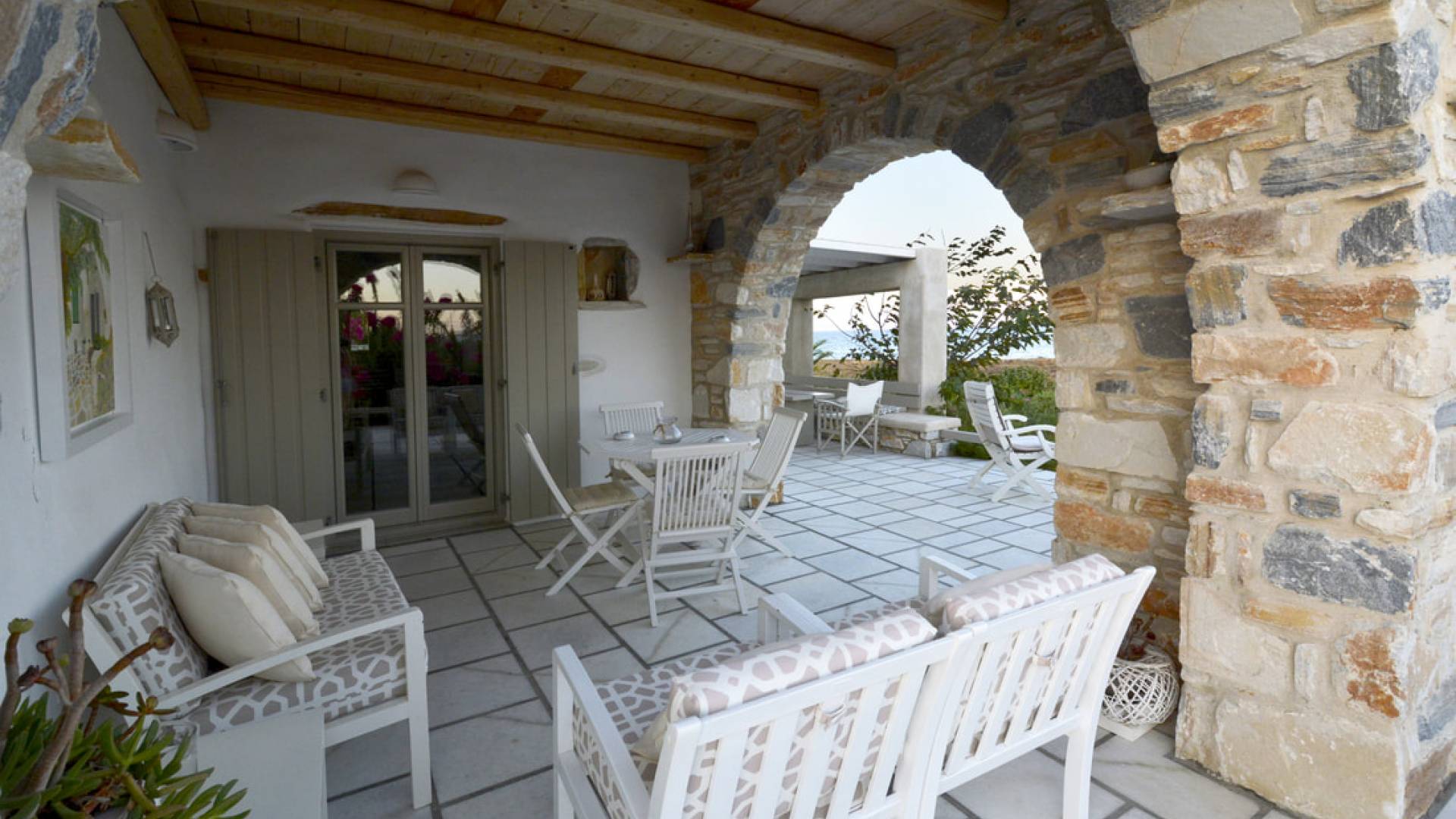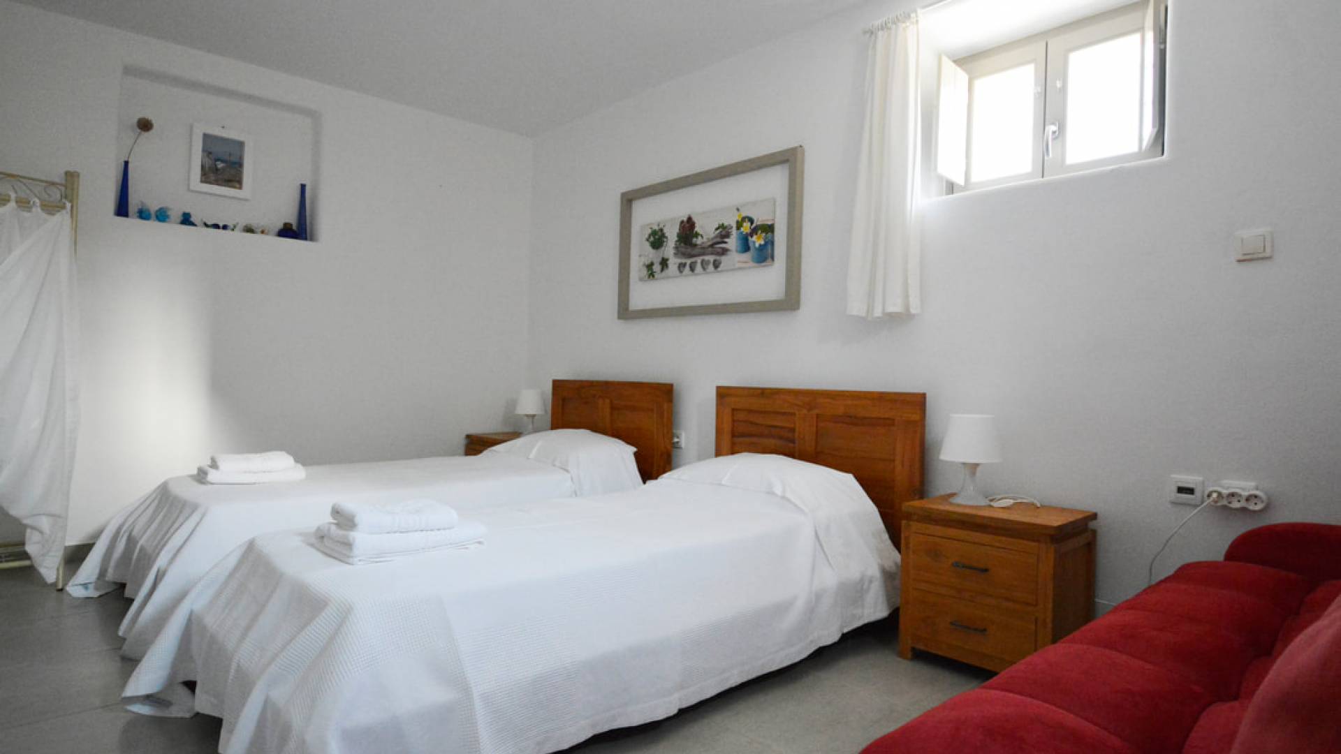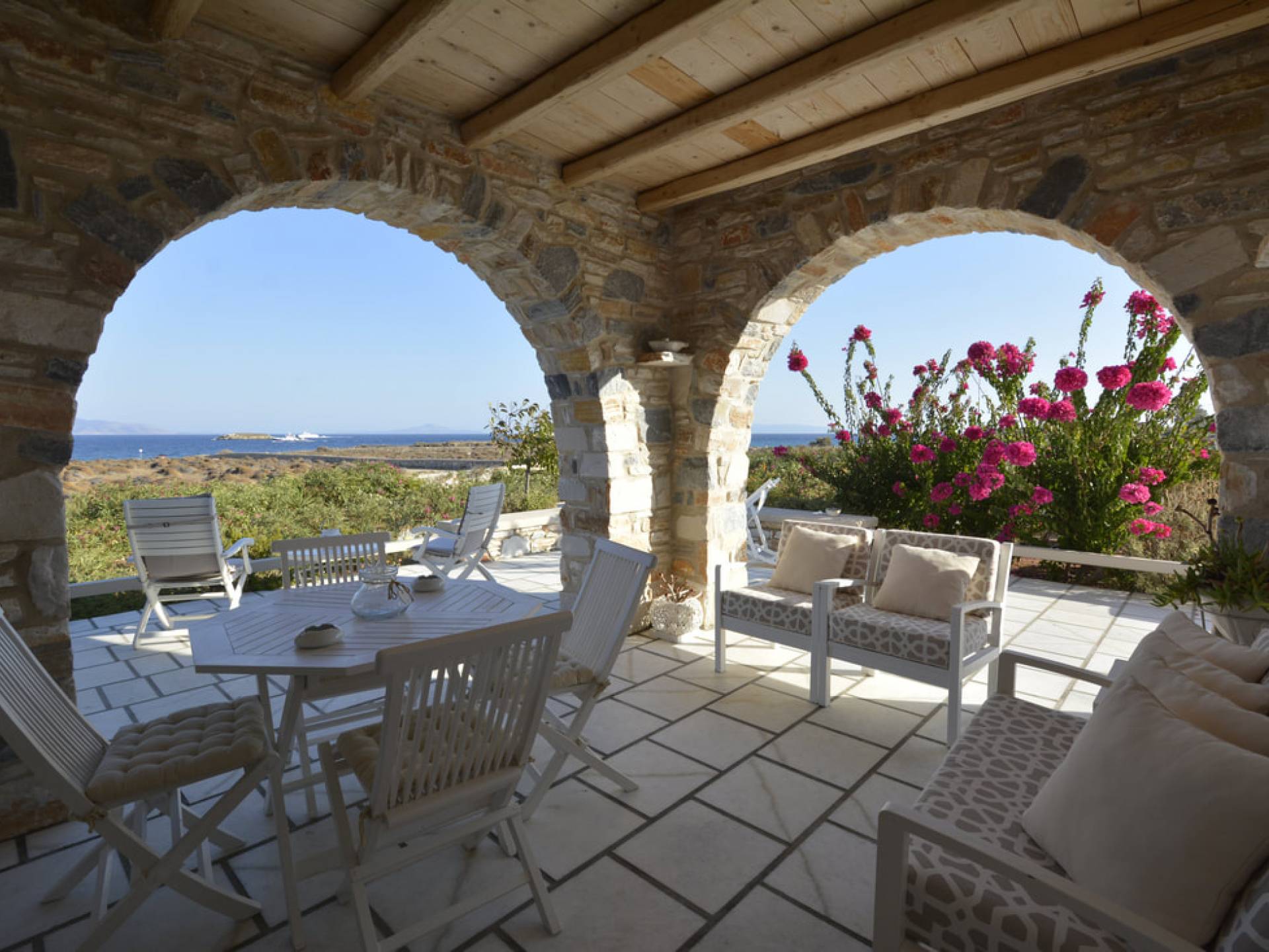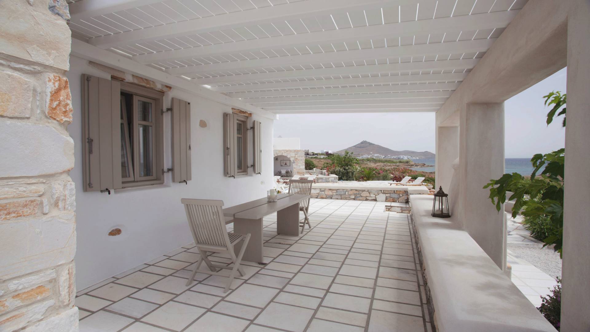 Shell Villa is a holiday rental of 90m2. It has a living room, fully equipped kitchen, dining room, 1 double bedroom, 1 twin bedroom, and 2 bathrooms. Shell Villa has also a private spacious shaded veranda, outdoor dining area, and private BBQ. It can accommodate 4 persons. Possibility of sleeping 1 more person in sofa-bed. It shares the pool, the garden, and the parking with the three other Villas. Shell Villa is located next to the common pool while the verandas have breathtaking views of the sea and the island of Naxos!