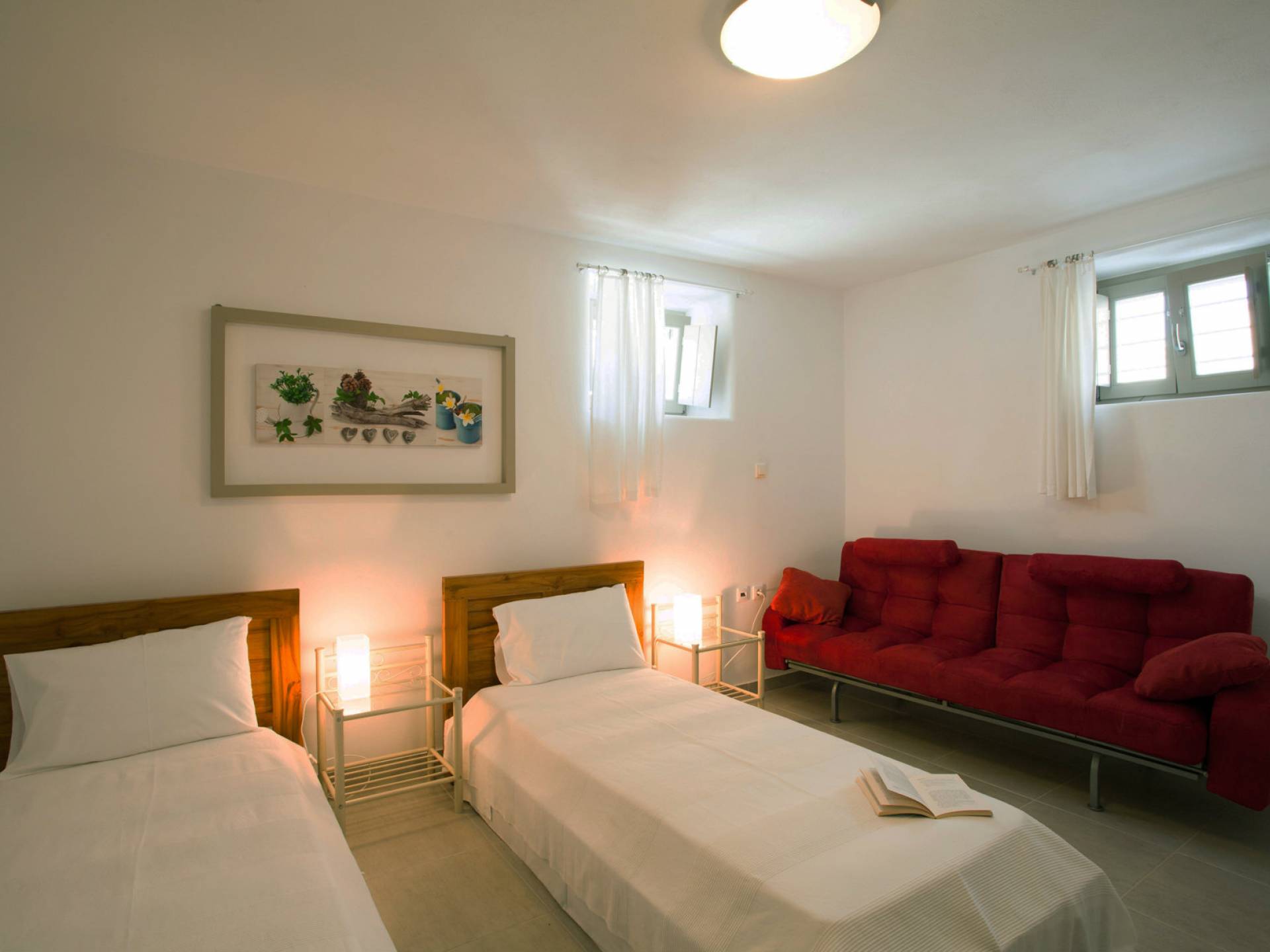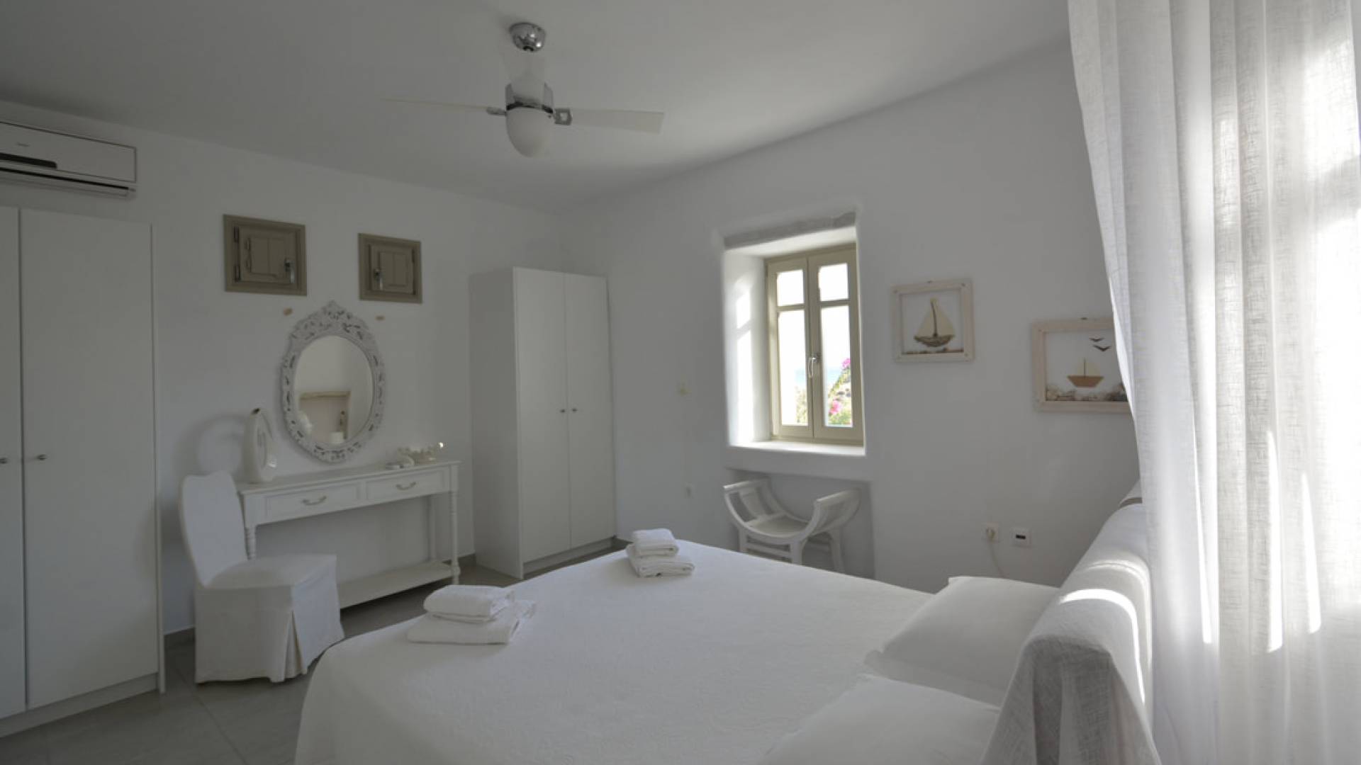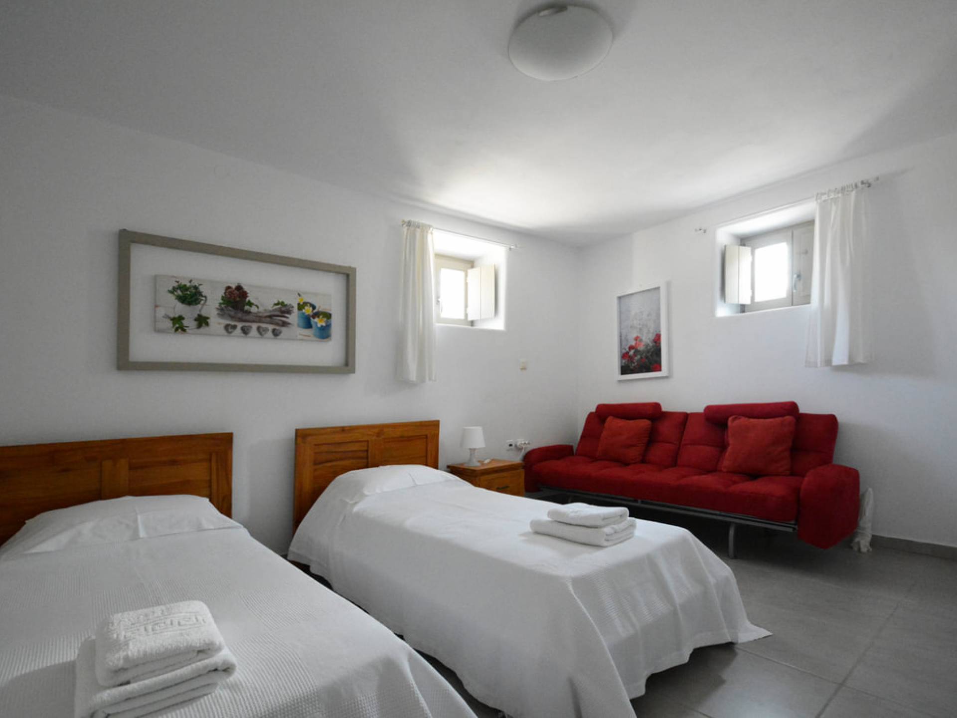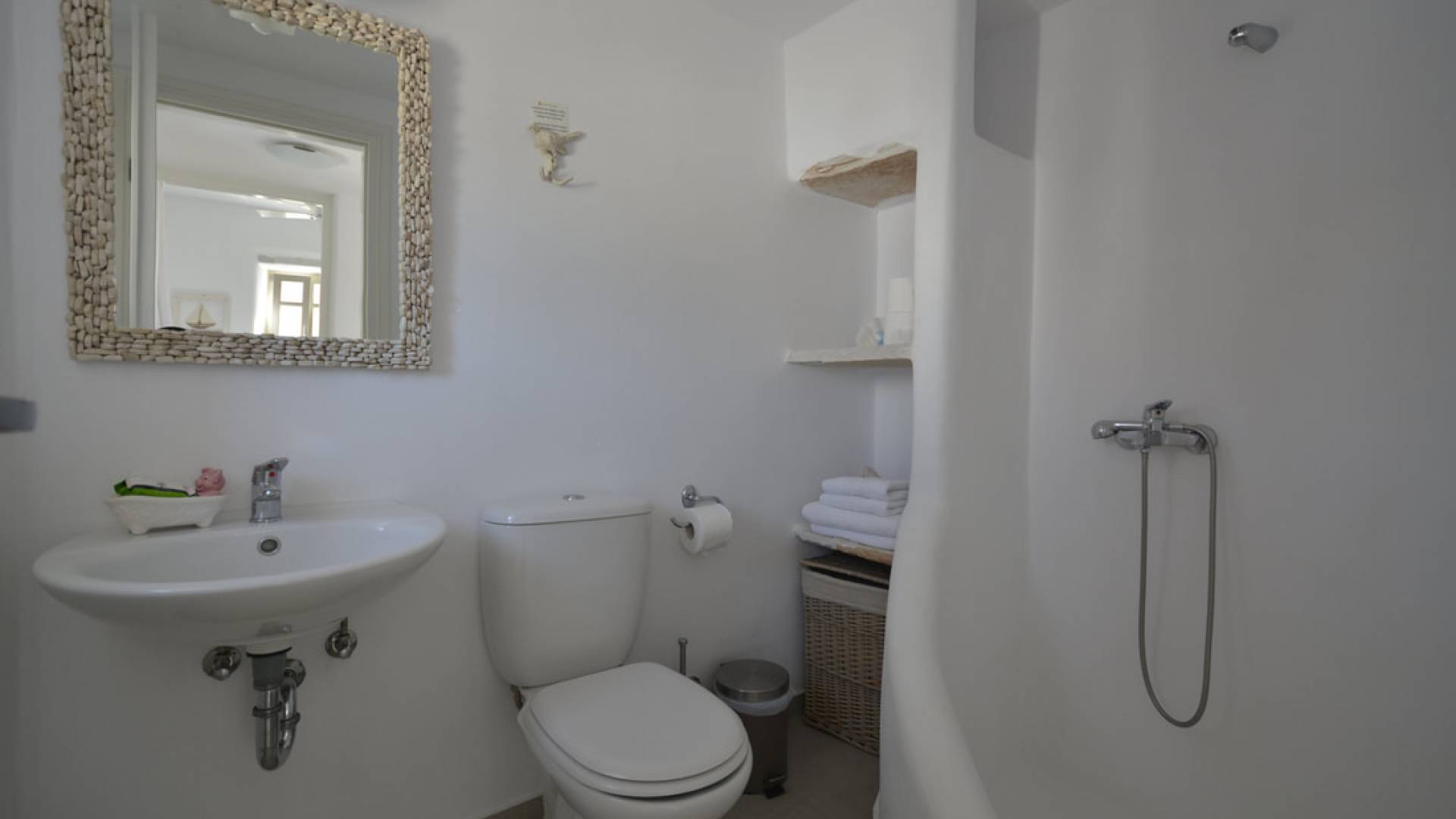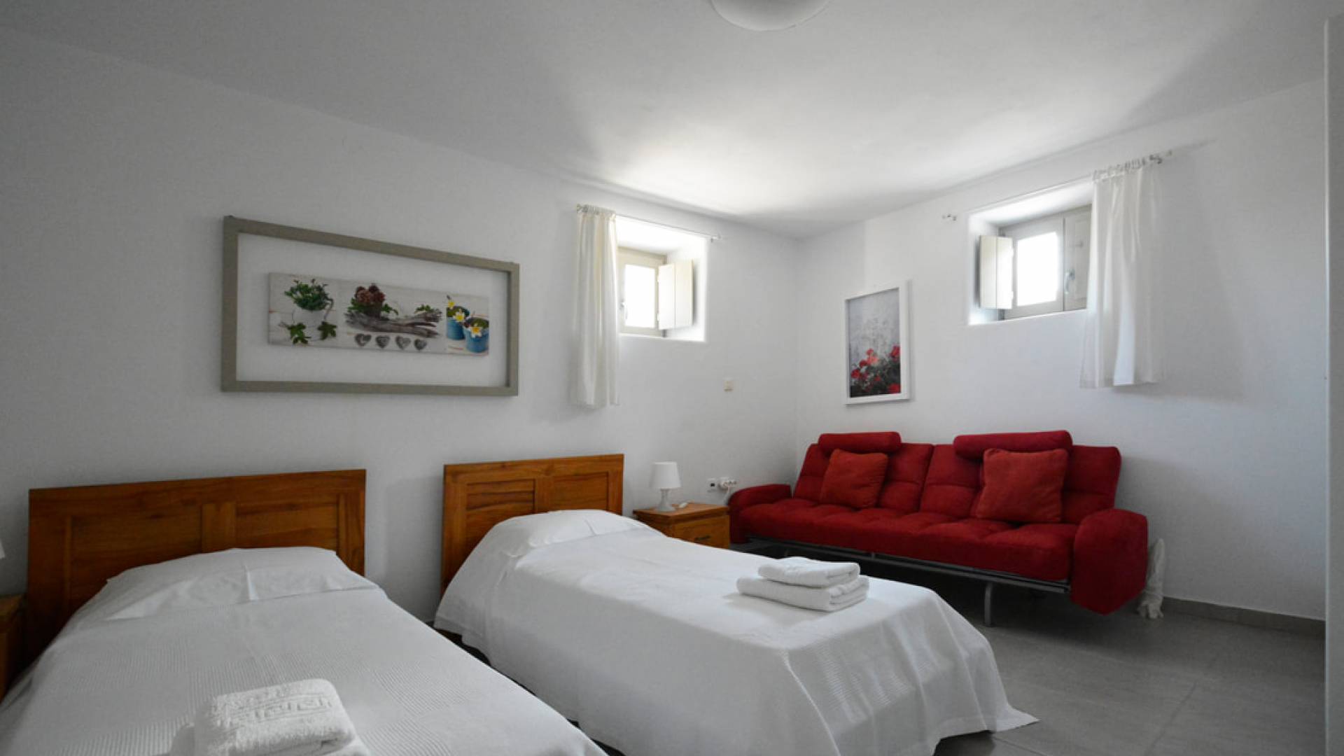 Shell Villa is a holiday rental of 90m2. It has a living room, fully equipped kitchen, dining room, 1 double bedroom, 1 twin bedroom, and 2 bathrooms. Shell Villa has also a private spacious shaded veranda, outdoor dining area, and private BBQ. It can accommodate 4 persons. Possibility of sleeping 1 more person in sofa-bed. It shares the pool, the garden, and the parking with the three other Villas. Shell Villa is located next to the common pool while the verandas have breathtaking views of the sea and the island of Naxos!