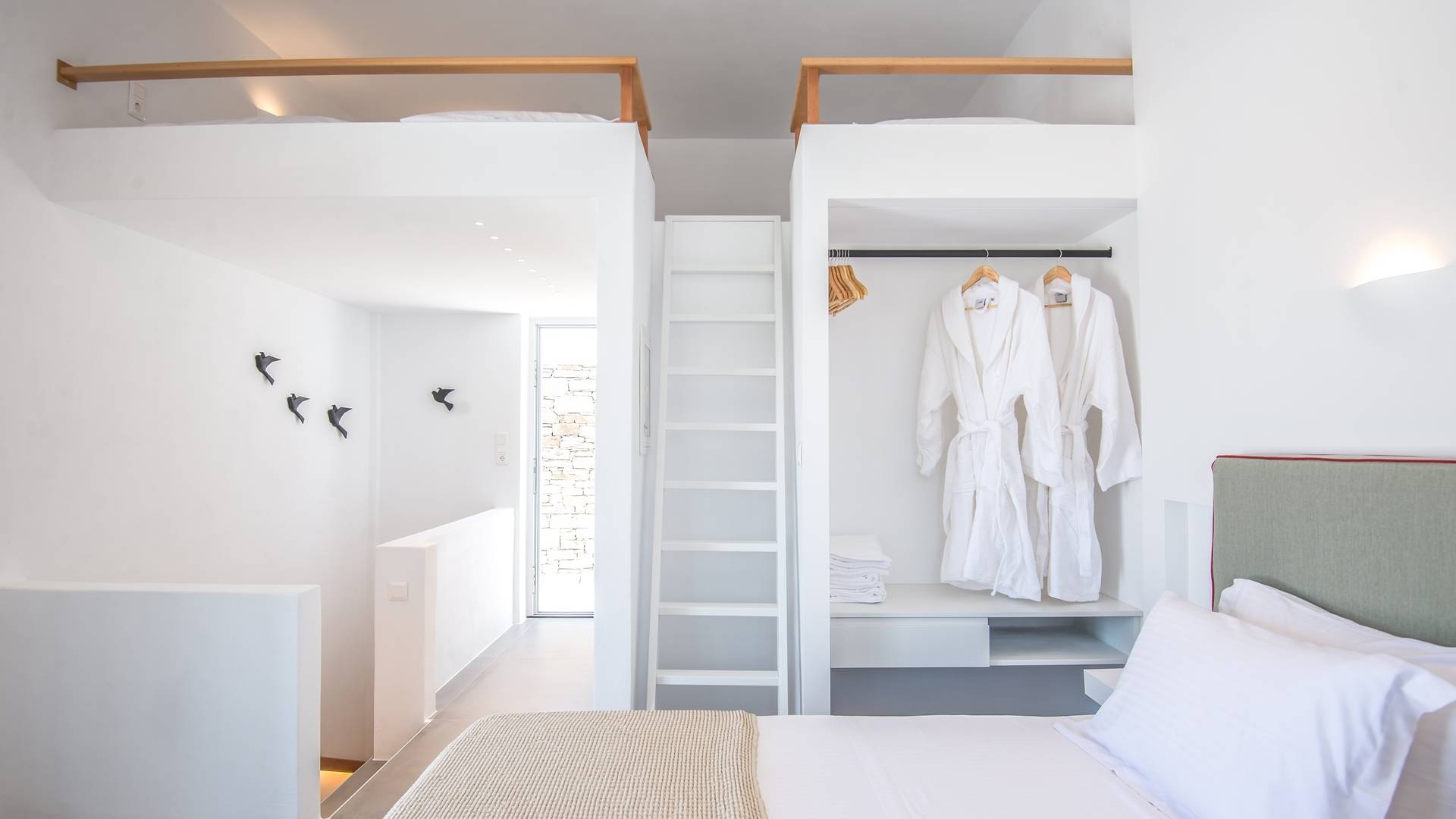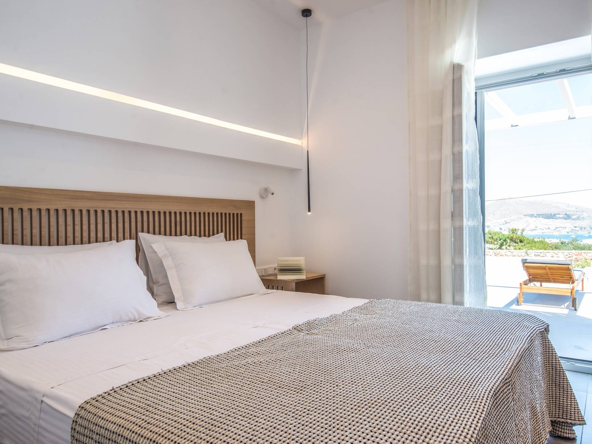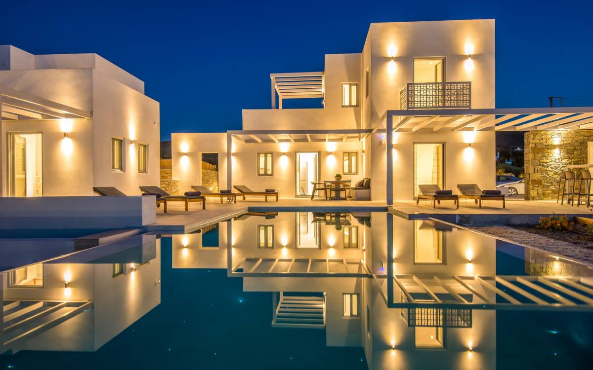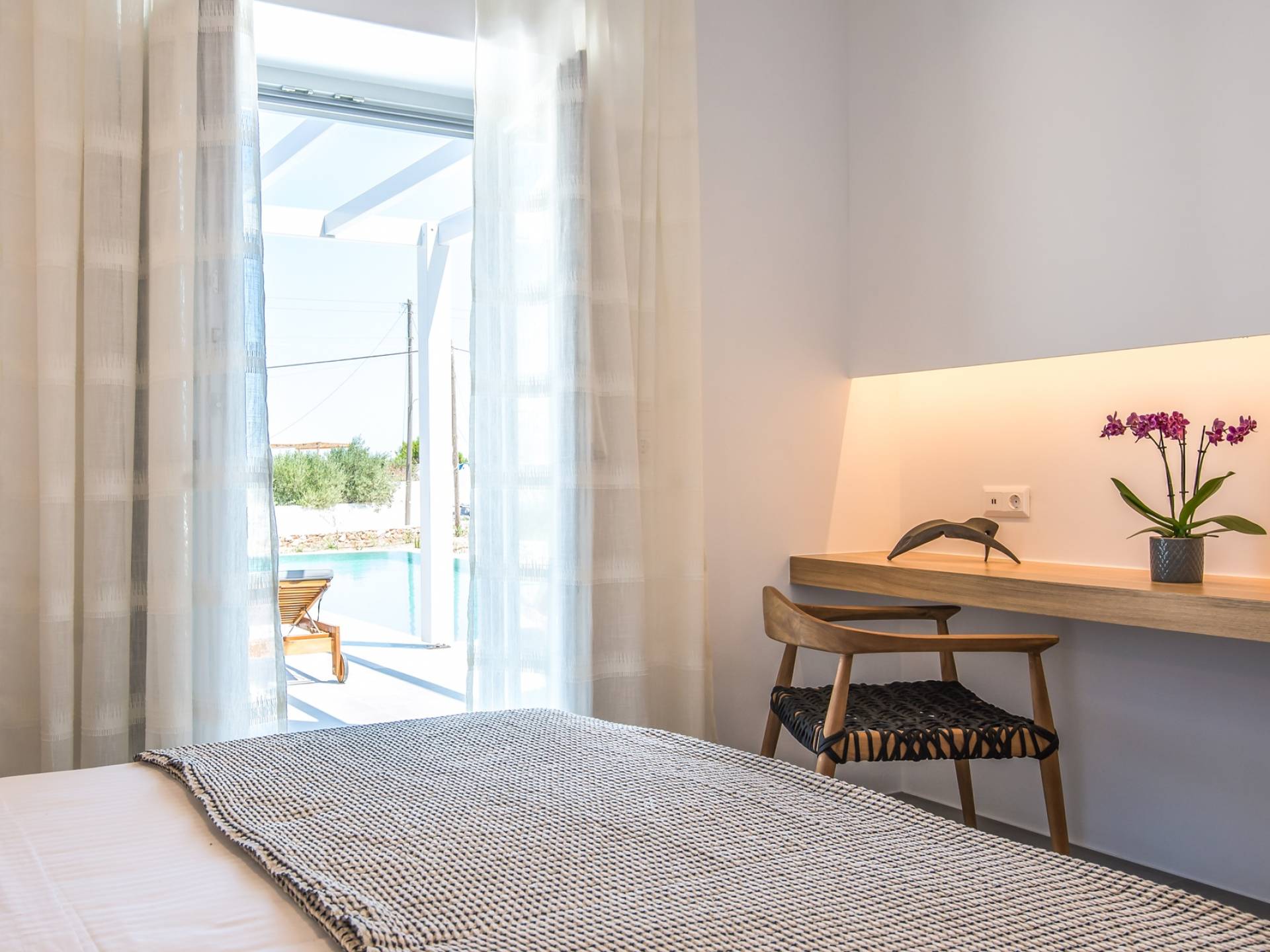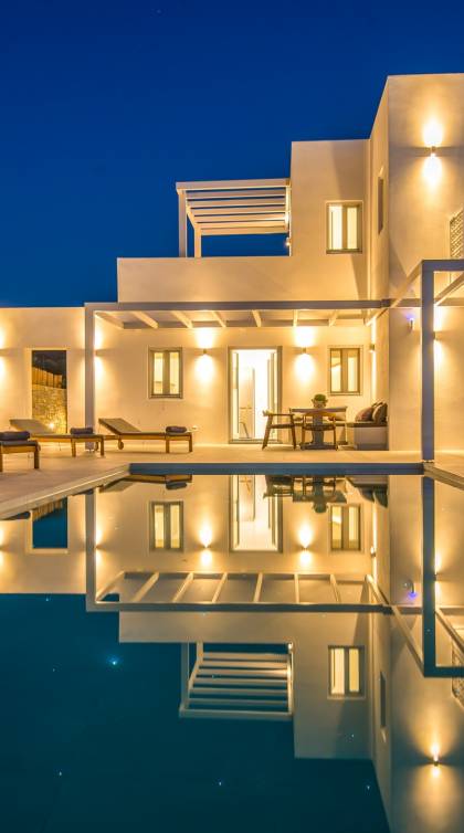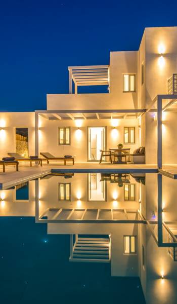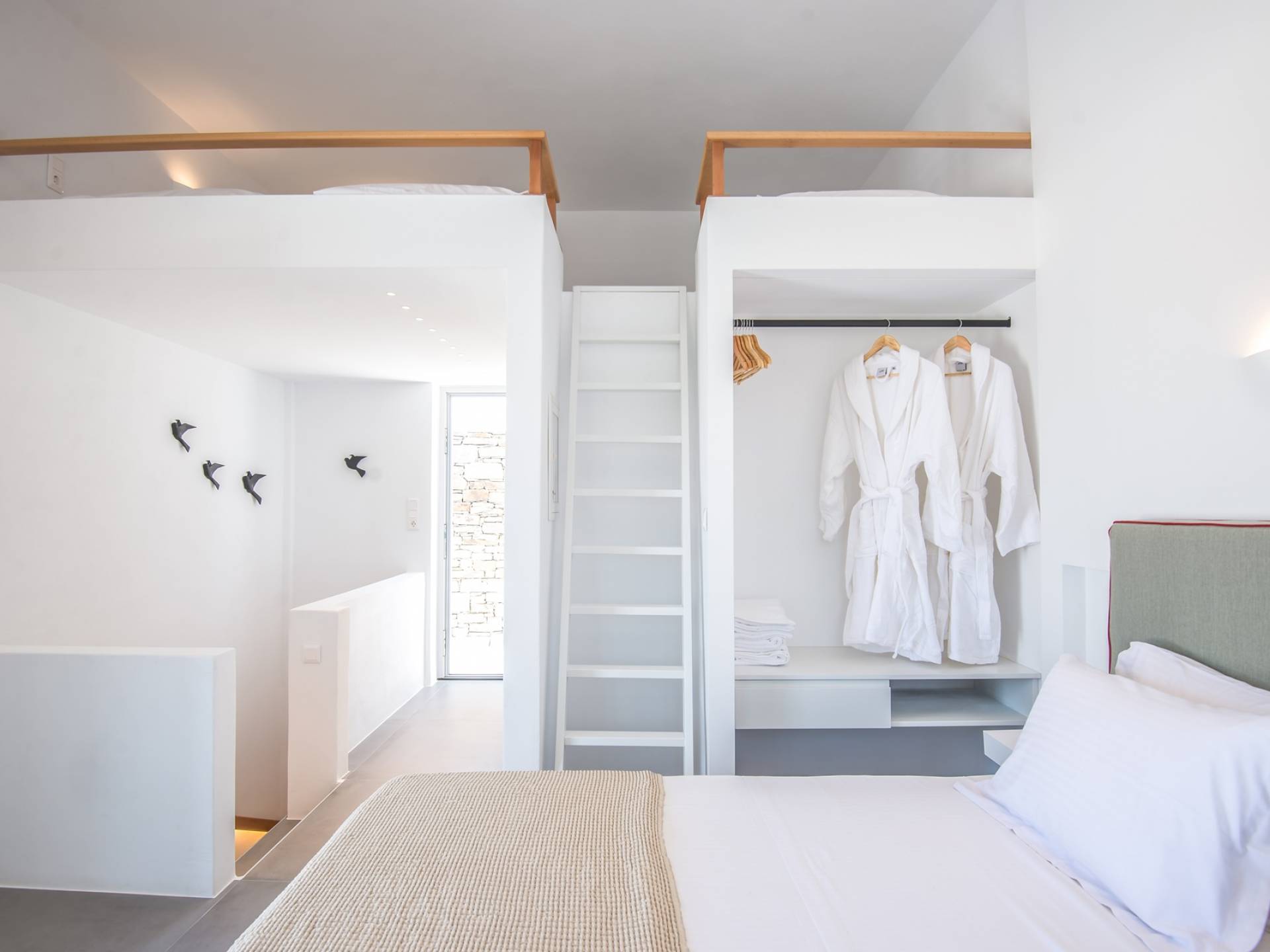 Private Villa at Blue Mare Villas Paros is a brand new project located 150m away from Blue Mare Villas. It is a luxurious accommodation option in Paros. The Private Villa is 150 sqm and consists of two parts, a two-story suite, and a two-story villa. It can accommodate from 4 to 8 adults and 3 children max.