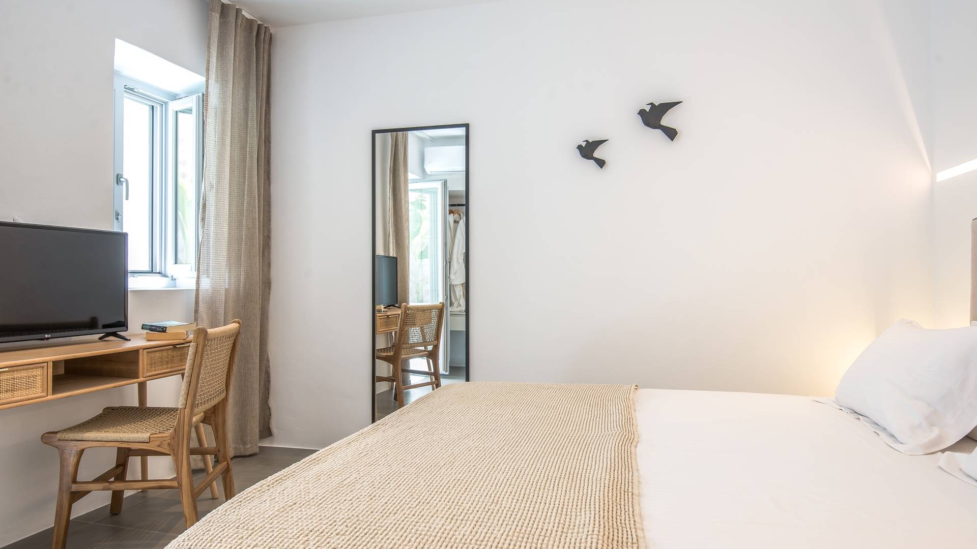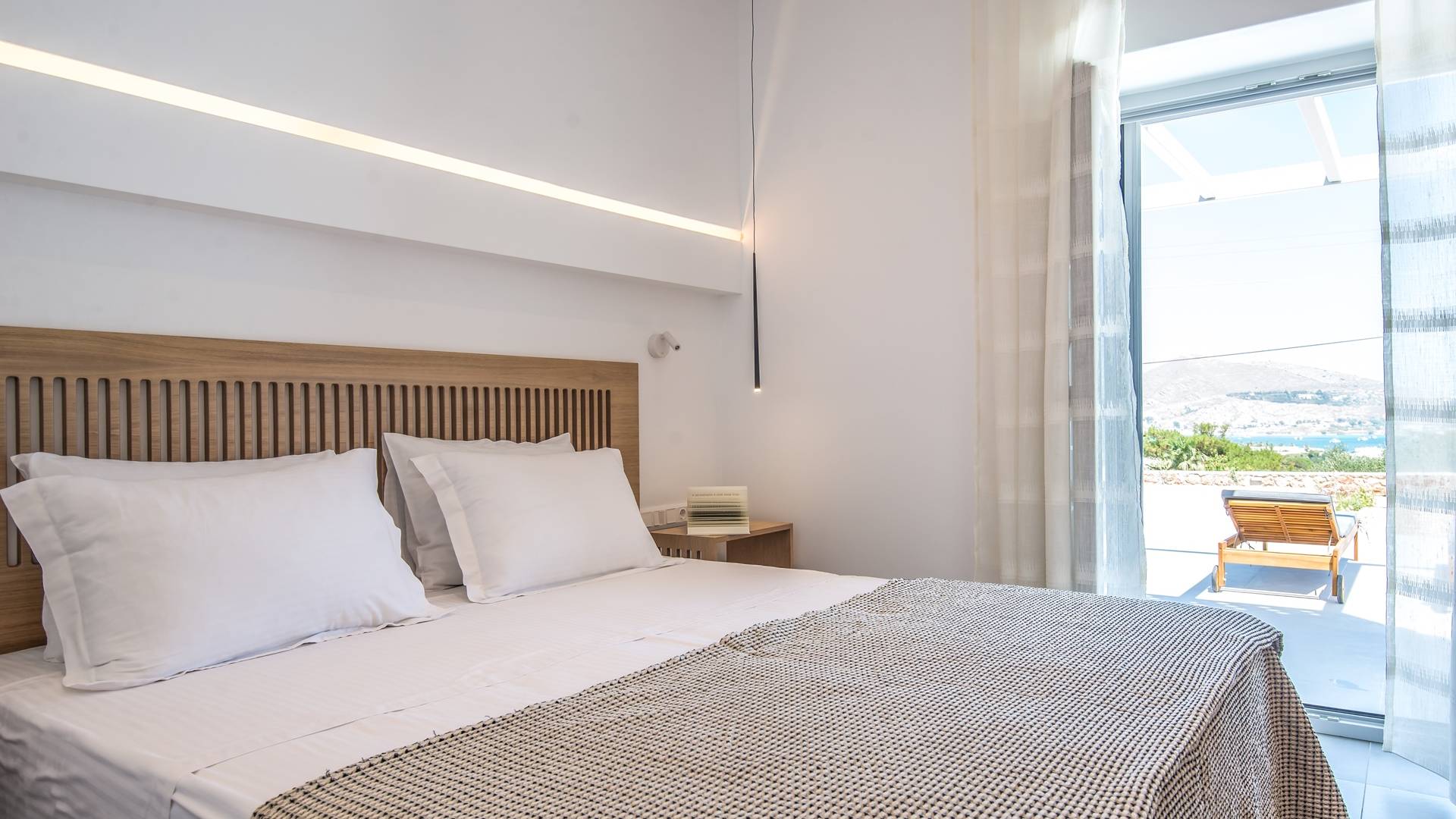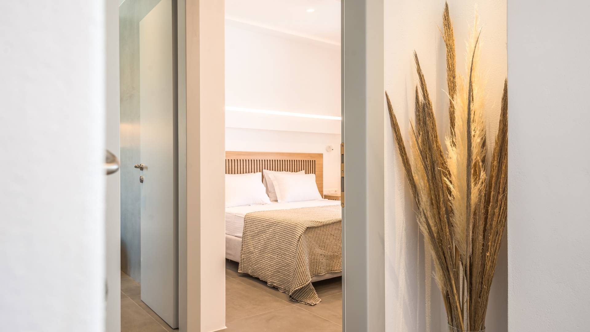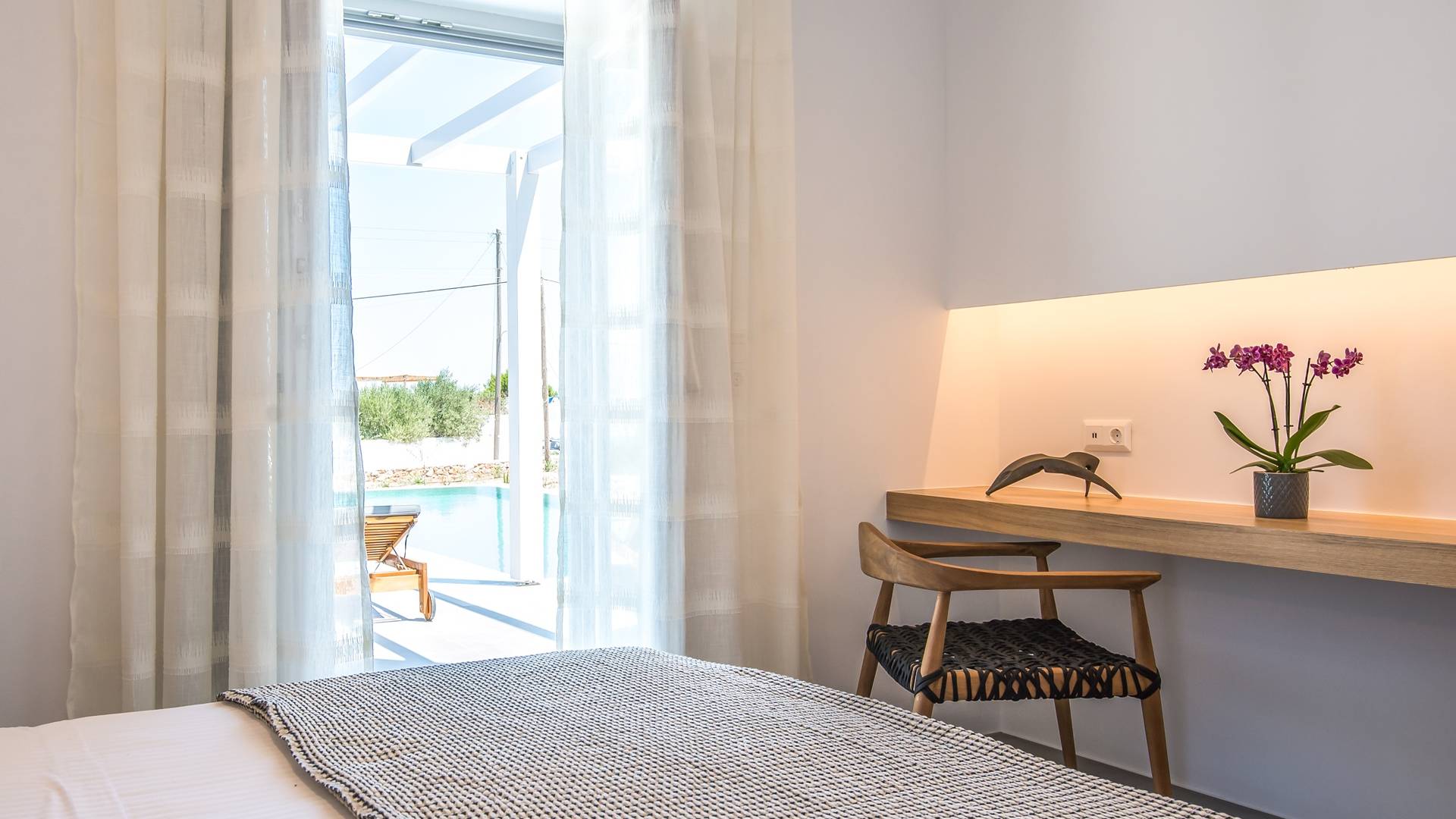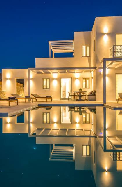 Private Villa at Blue Mare Villas Paros is a brand new project located 150m away from Blue Mare Villas. It is a luxurious accommodation option in Paros. The Private Villa is 150 sqm and consists of two parts, a two-story suite, and a two-story villa. It can accommodate from 4 to 8 adults and 3 children max.
