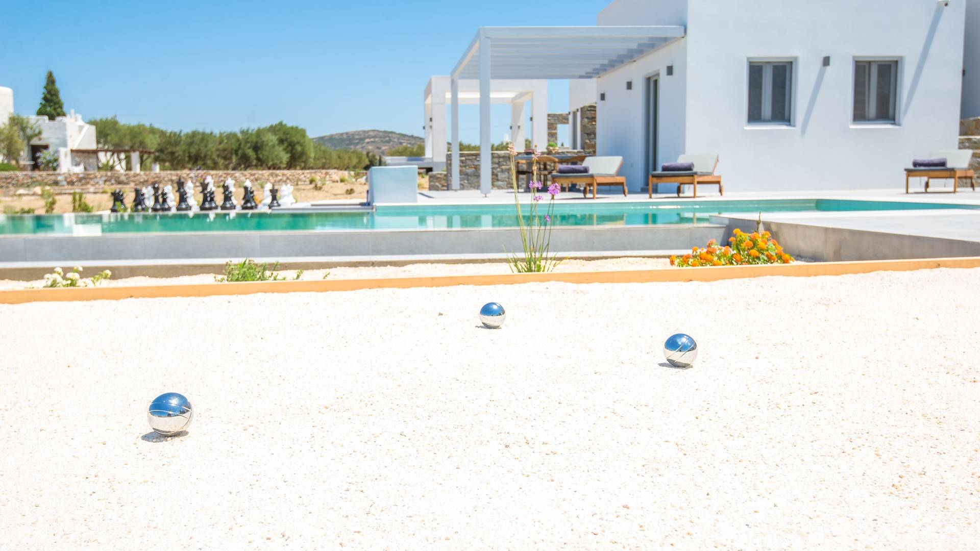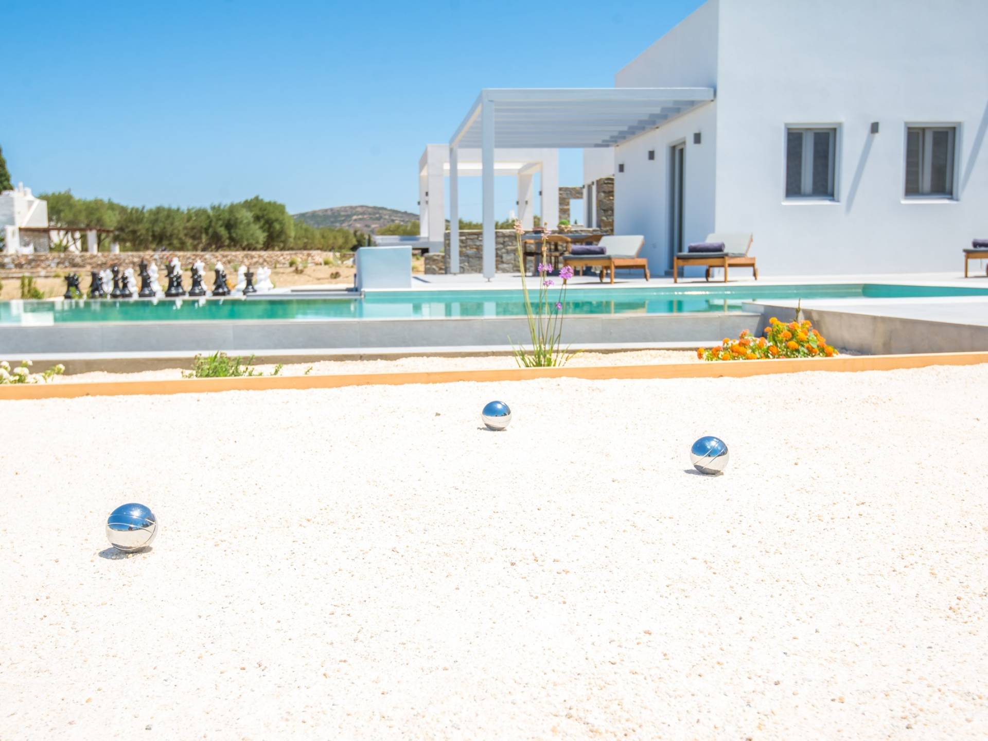 In total, it consists of 4 bedrooms with king-size beds and one of the suite's bedrooms has a private hydromassage on its terrace, 4 bathrooms with showers, 2 attics, a fully equipped kitchen, and 250 sqm terraces with a fantastic sea view. The outdoor area consists of a private swimming pool (without chlorine) overlooking the sea for your ultimate relaxation, BBQ, table chess, petanque games for kids, a private parking lot, and a big garden. The villa is comfortable and functional with a contemporary aesthetic, for clients seeking for luxury and quality.