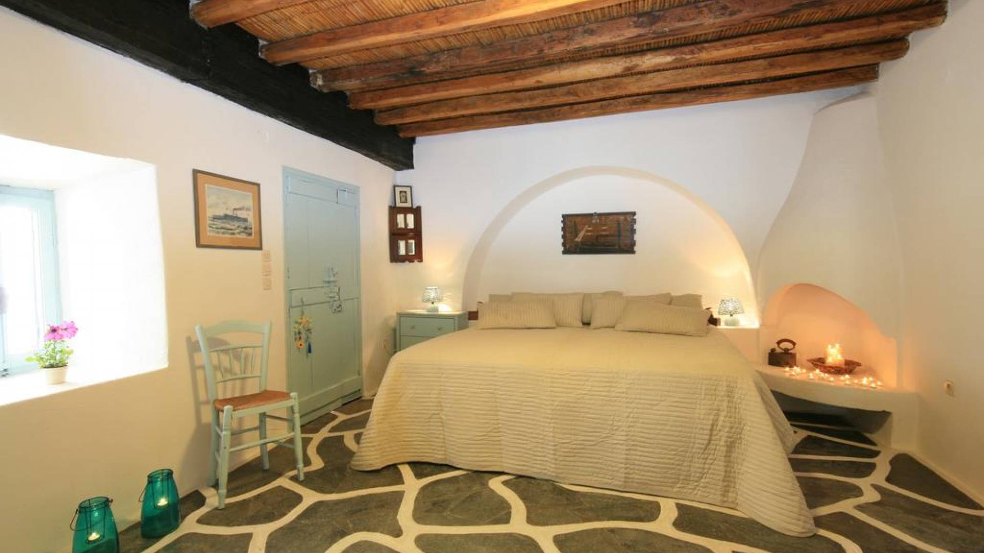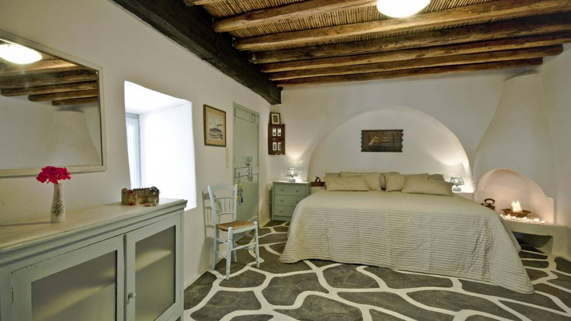 In the centre of Naoussa village, just a stone’s throw from the picturesque old fishing port, lies Villa Spiti Valia Paros. Surrounded by picturesque ancient churches, the villa is equally old: it was built back in 1.650, at an era when control of the island shifted every few years from the Venetians to the Ottomans and vice versa. The Venetian influence is evident on the marble fragments found in the house (kept today in the villa’s garden) as well as on the house’s exterior arches & overall architecture.