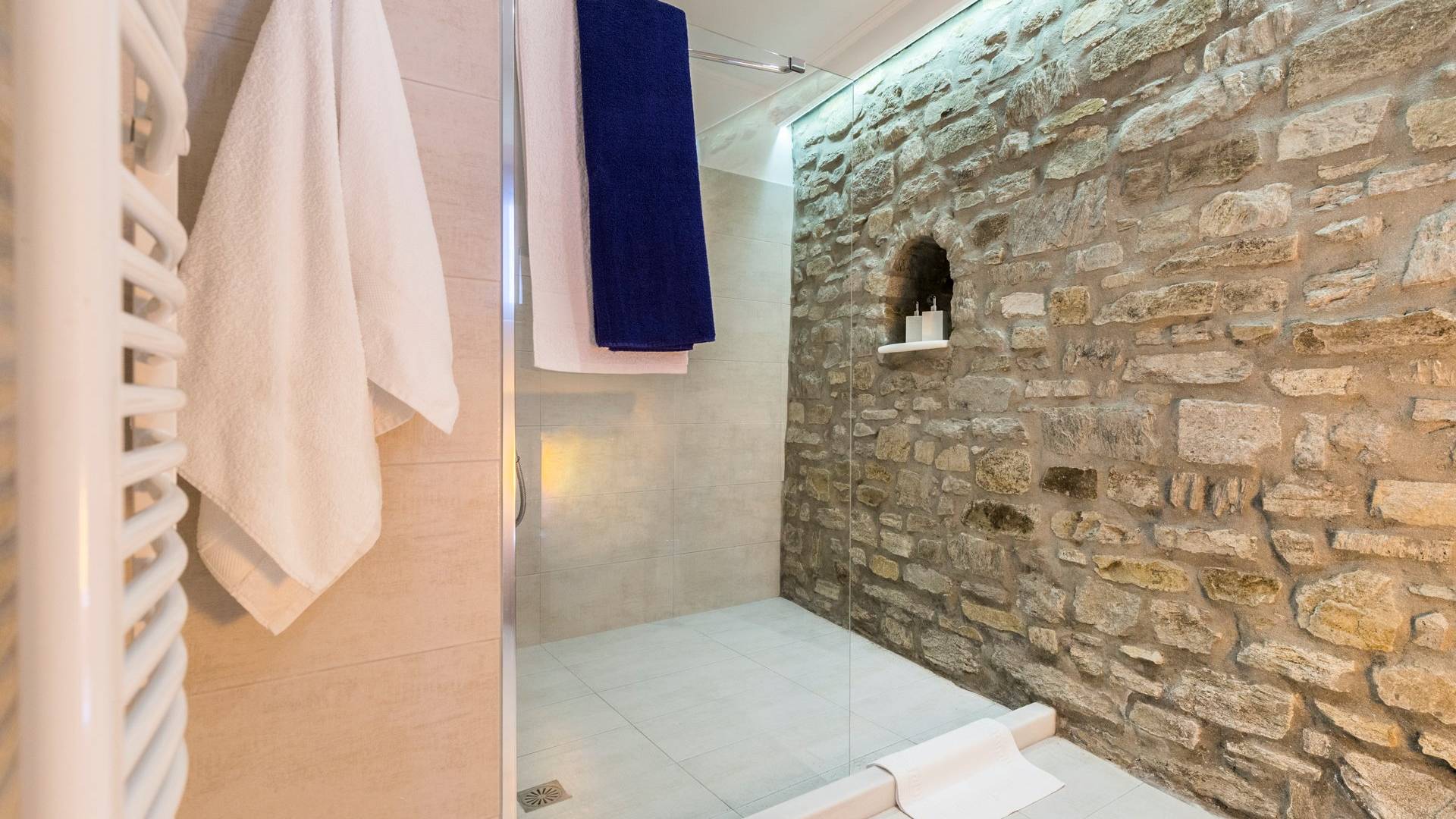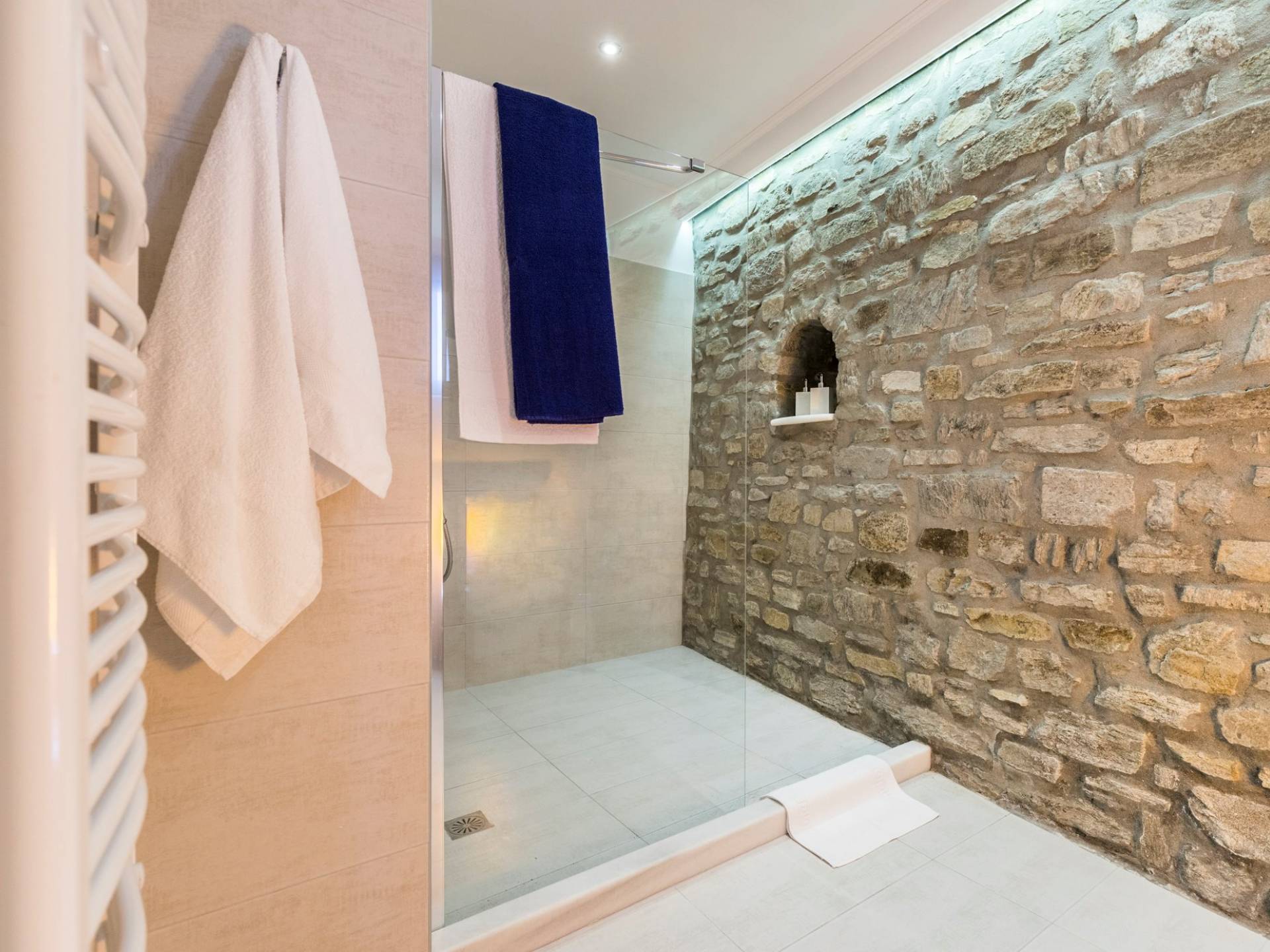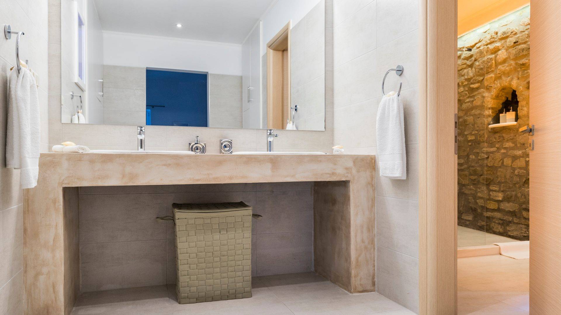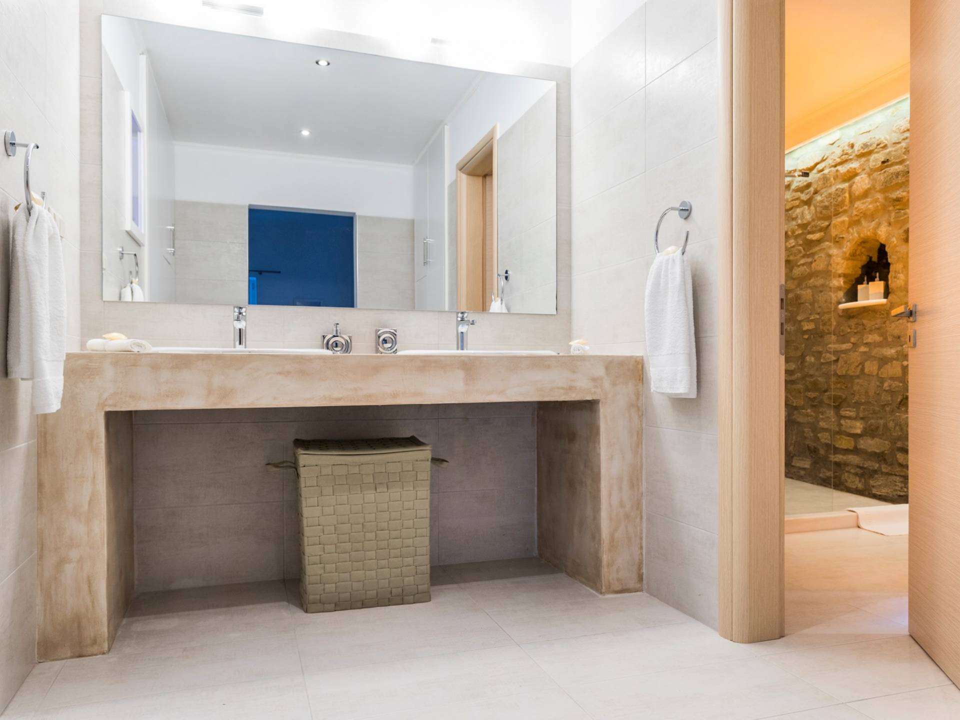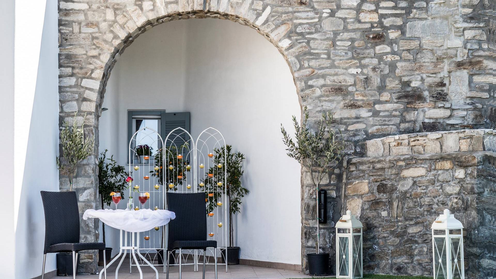 Alexander villa overlooks a plot of 5 acres and is surrounded by an imposing stone fence, giving the appearance of a medieval castle and a sense of privacy. The balance of materials and decorative elements with the simplicity of space, magnifies the serenity and offers the visitor a comfortable and luxurious stay.