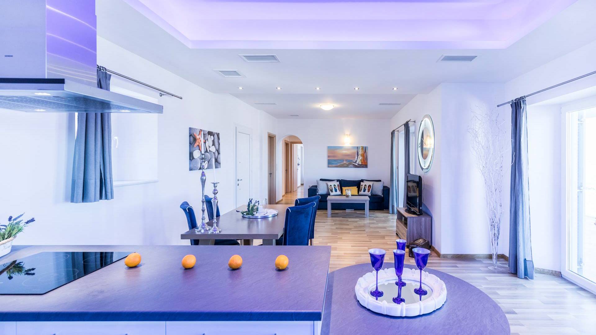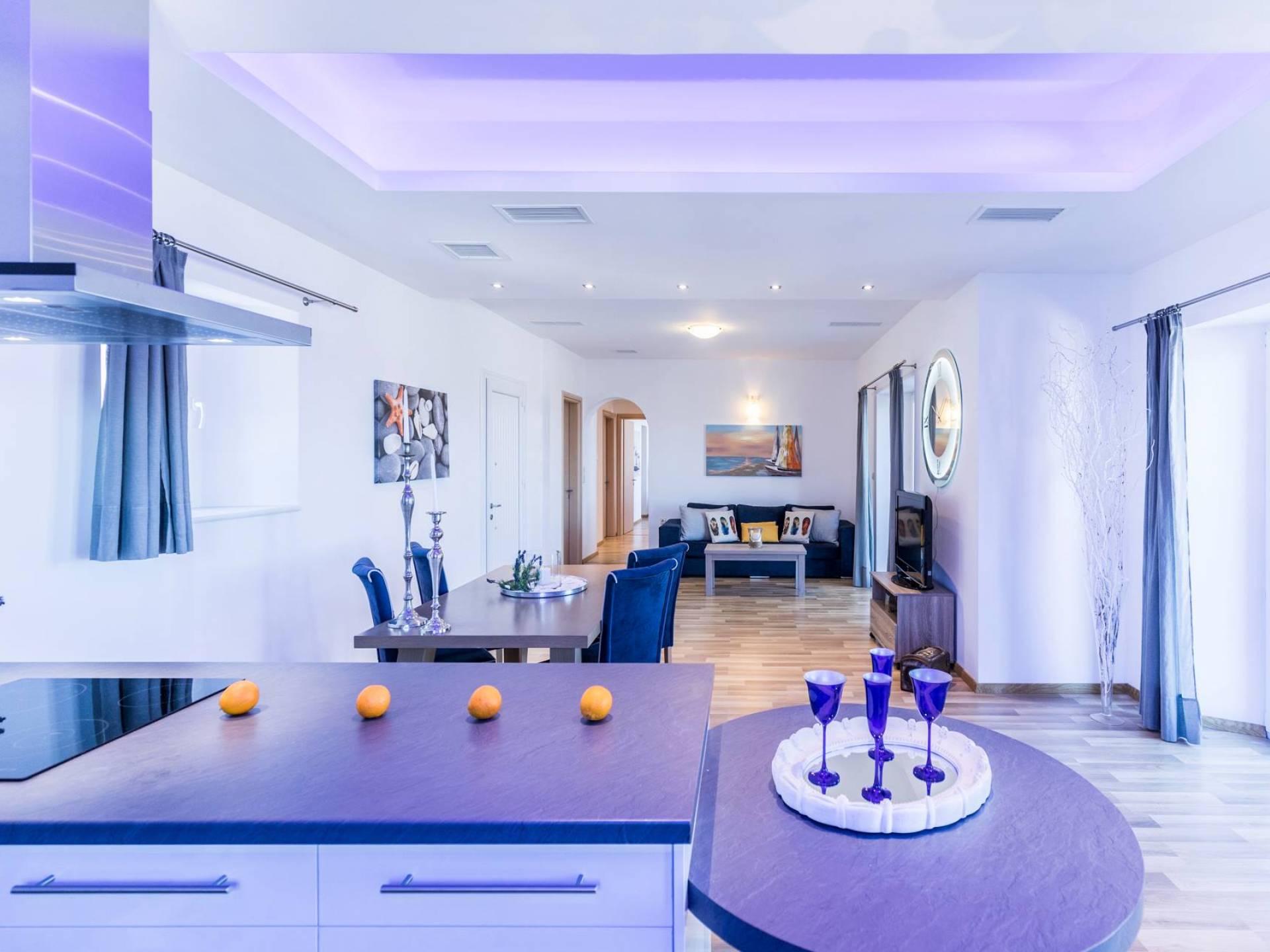 The amenities of the luxury rental cover even the most demanding visitor, having all the comforts that one would expect to find in a modern luxurious residence. From the fully equipped kitchen, to the spacious and air-conditioned rooms, everything has been designed and created to offer you an unforgettable stay experience. Leave the doors and windows open to enjoy the glorious sun that floods the house and the magic of the sea spreading out in front of you as well as the beautiful sunset!
