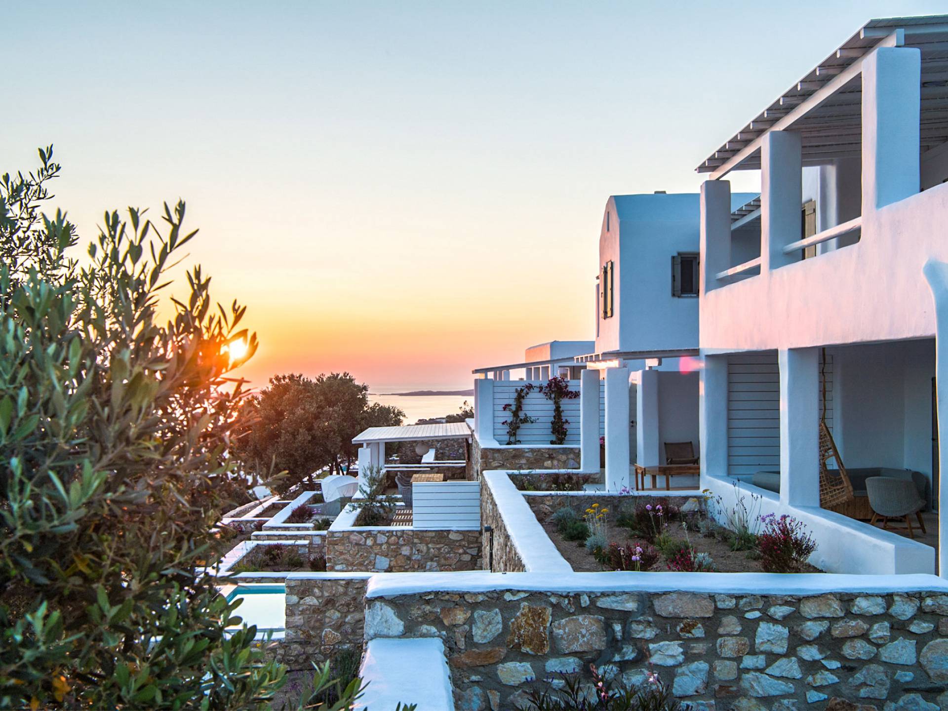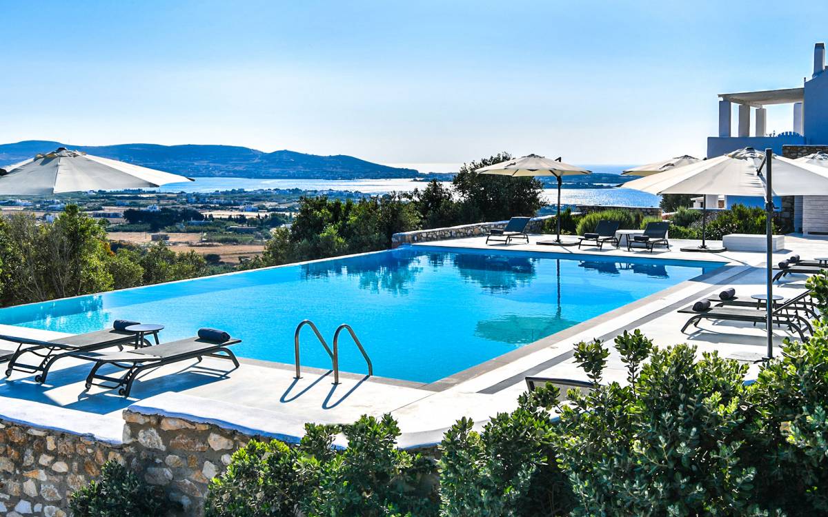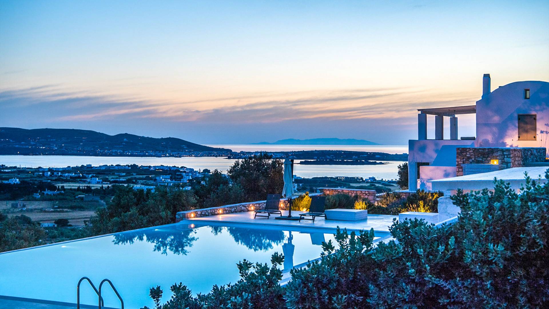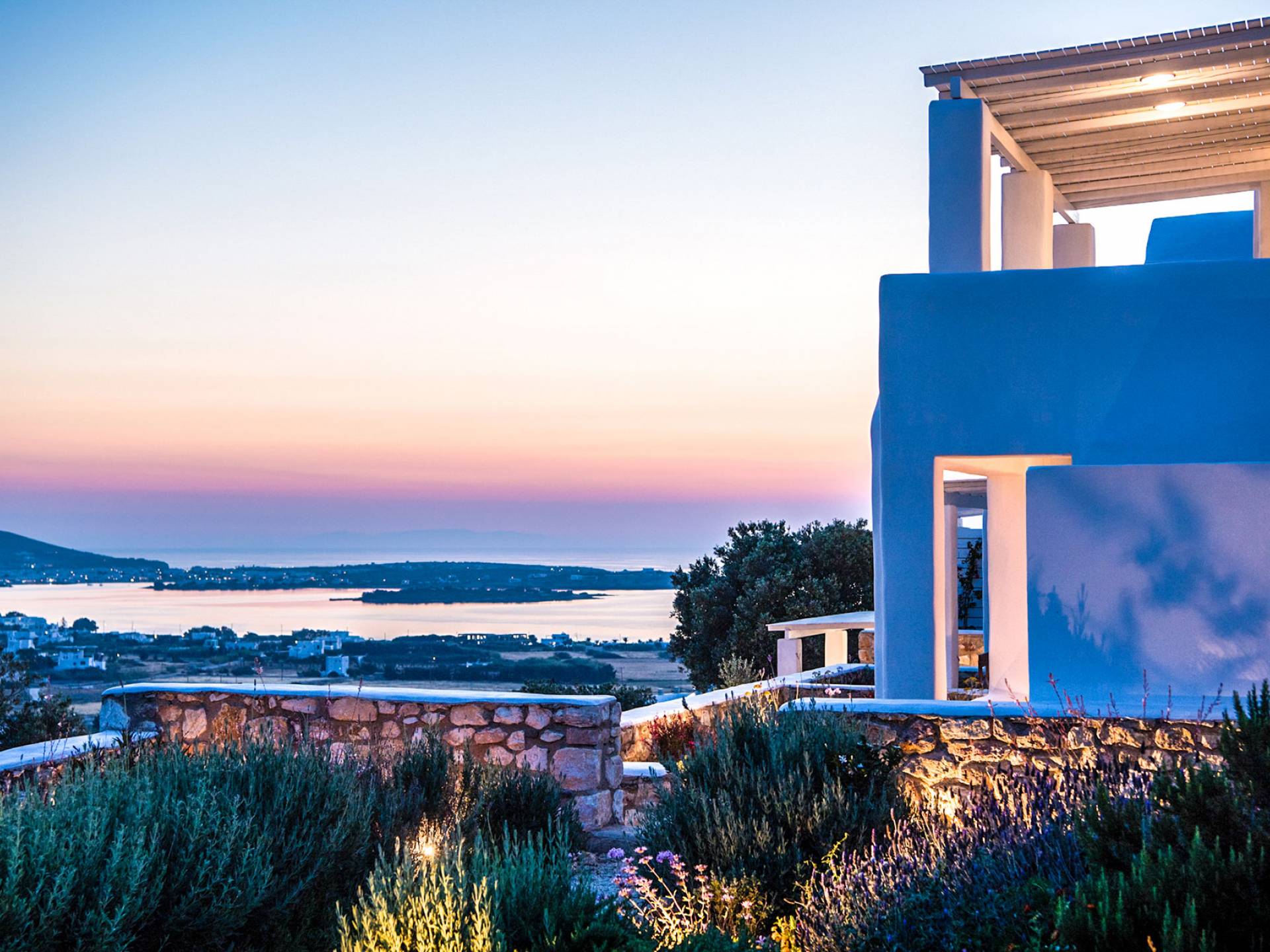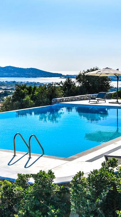 Ciel Villas are located in the area of Petaloudes – Glysidia in the Southwest of Paros, facing Antiparos with breathtaking sunset views. Built on a slope surrounded by olive trees, in a 2.2-acre estate, for the ultimate privacy and tranquility experience.