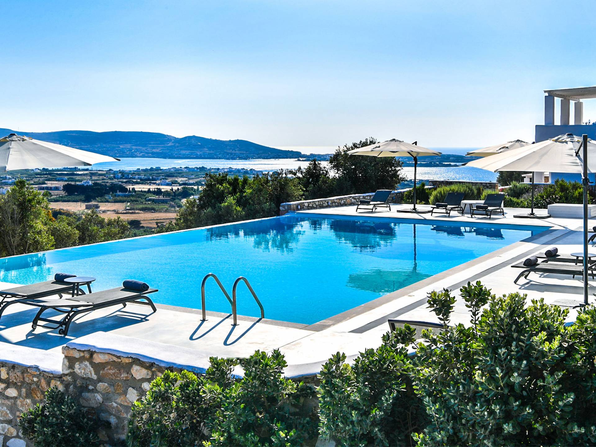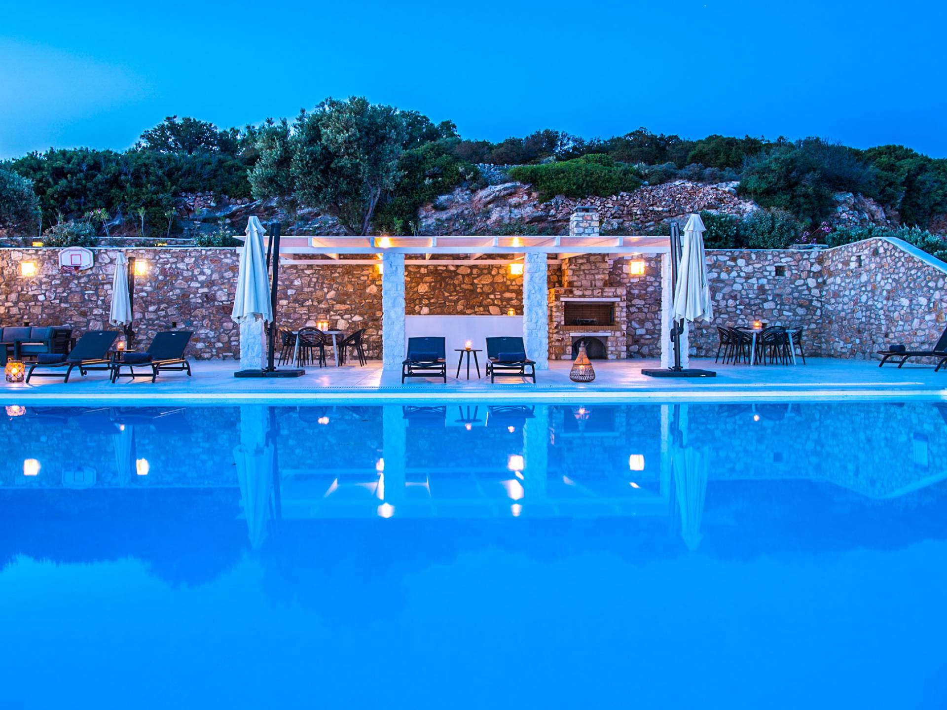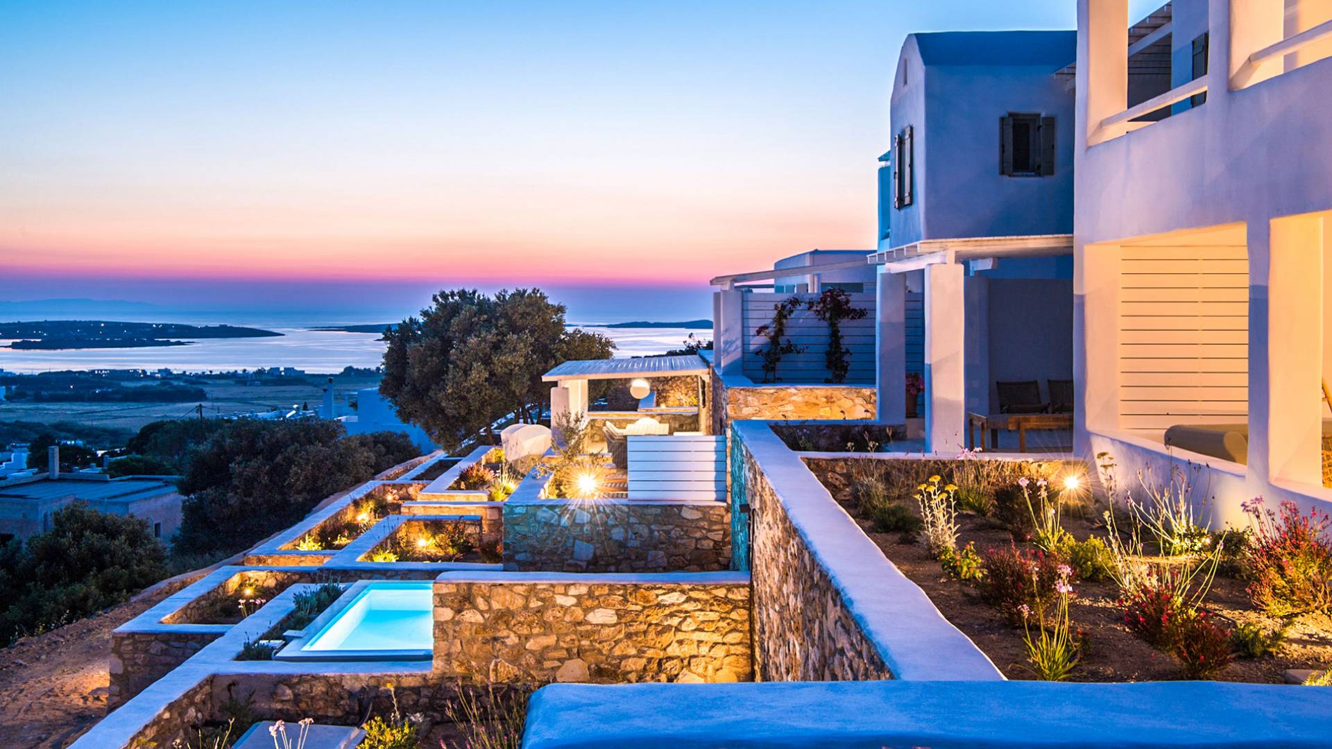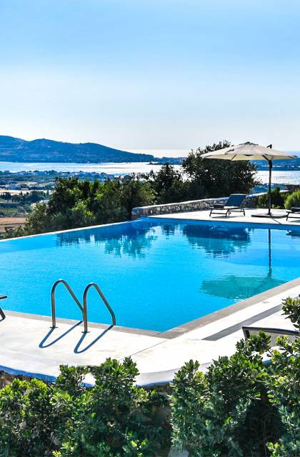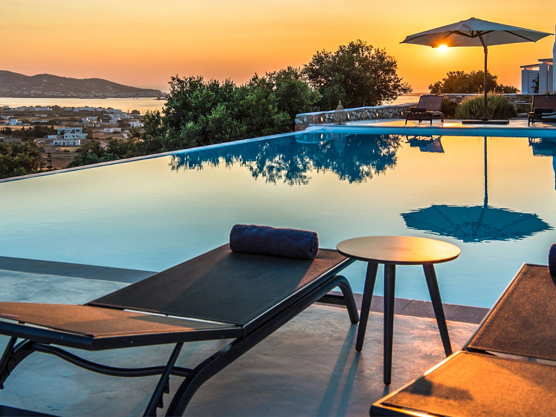 Ciel Villas are located in the area of Petaloudes – Glysidia in the Southwest of Paros, facing Antiparos with breathtaking sunset views. Built on a slope surrounded by olive trees, in a 2.2-acre estate, for the ultimate privacy and tranquility experience.