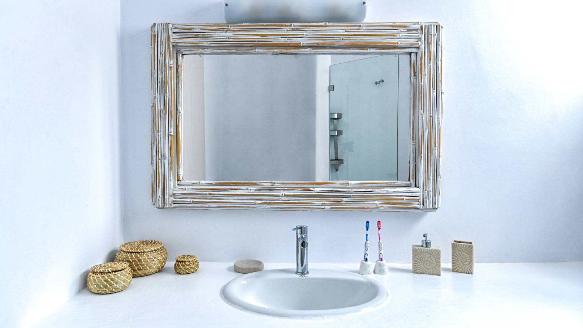 Aethra’s both bedrooms are situated on the lower level. The first bedroom has a queen-size bed and an en-suite bathroom. The master bedroom has the exact same amenities combined with a 40” TV and sofa-bed which can accommodate up to 2 guests. Both bedrooms have direct access to the outdoor area and to the laundry room.