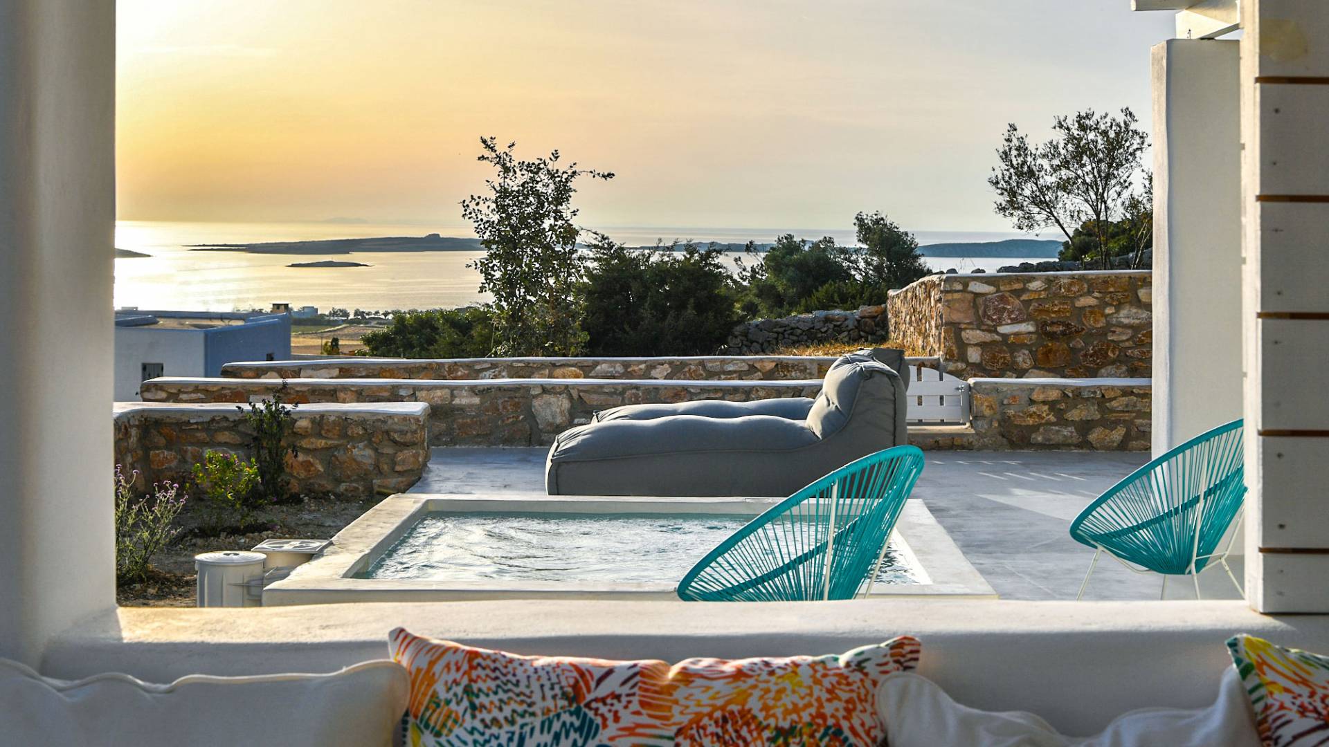 Villa Aethra at Ciel Villas Paros is a luxury villa rental with 2 bedrooms and an outdoor jacuzzi. Ciel Villas are located in Paros. View photos, rates and info here.