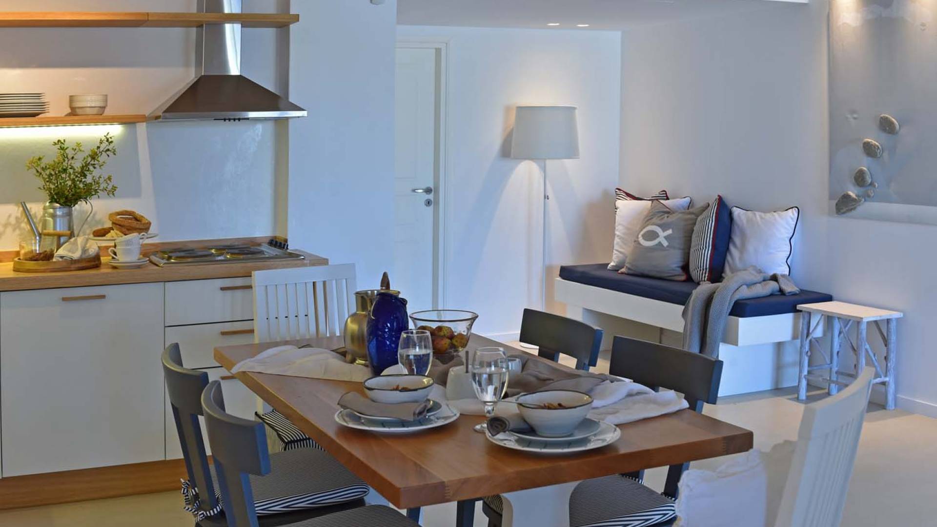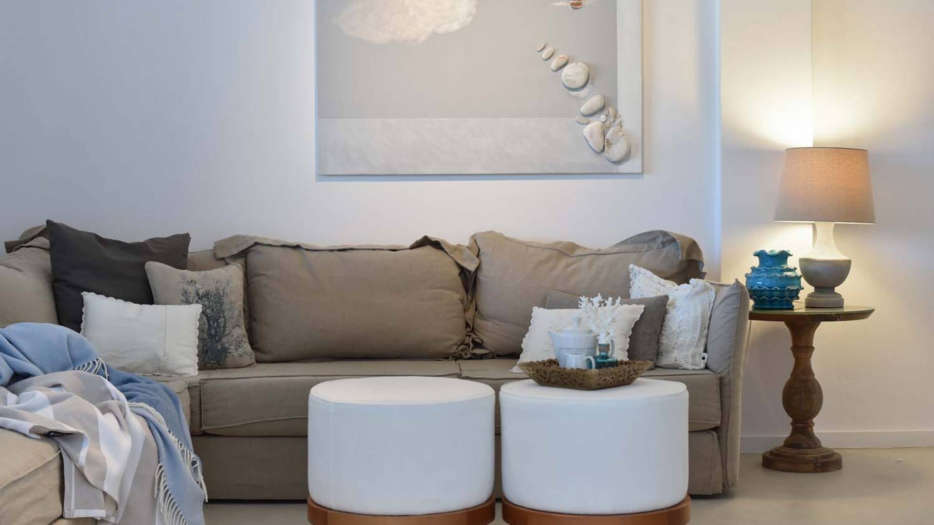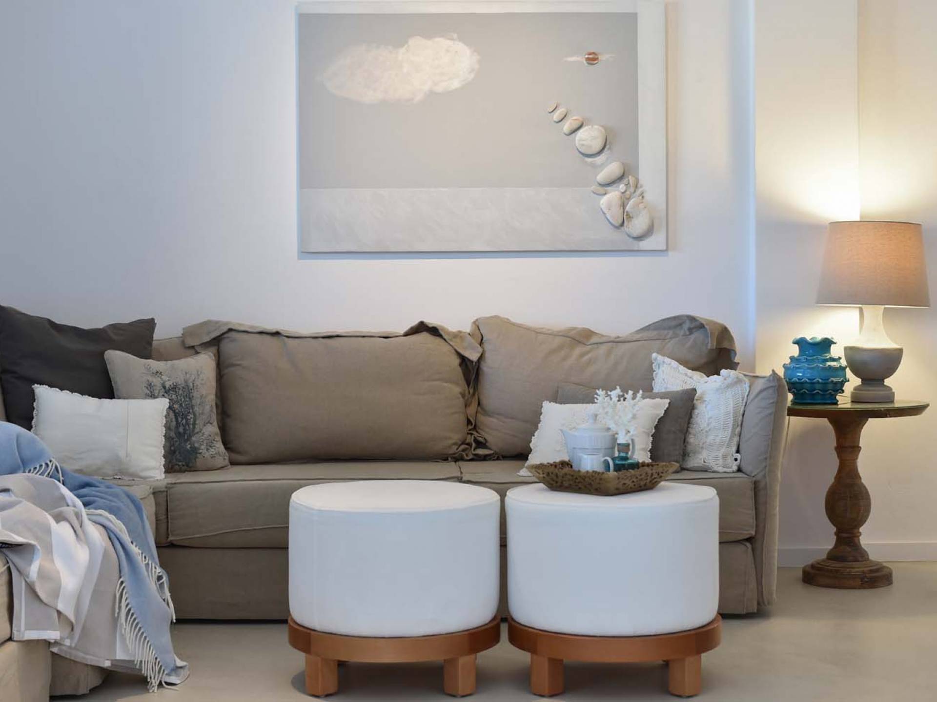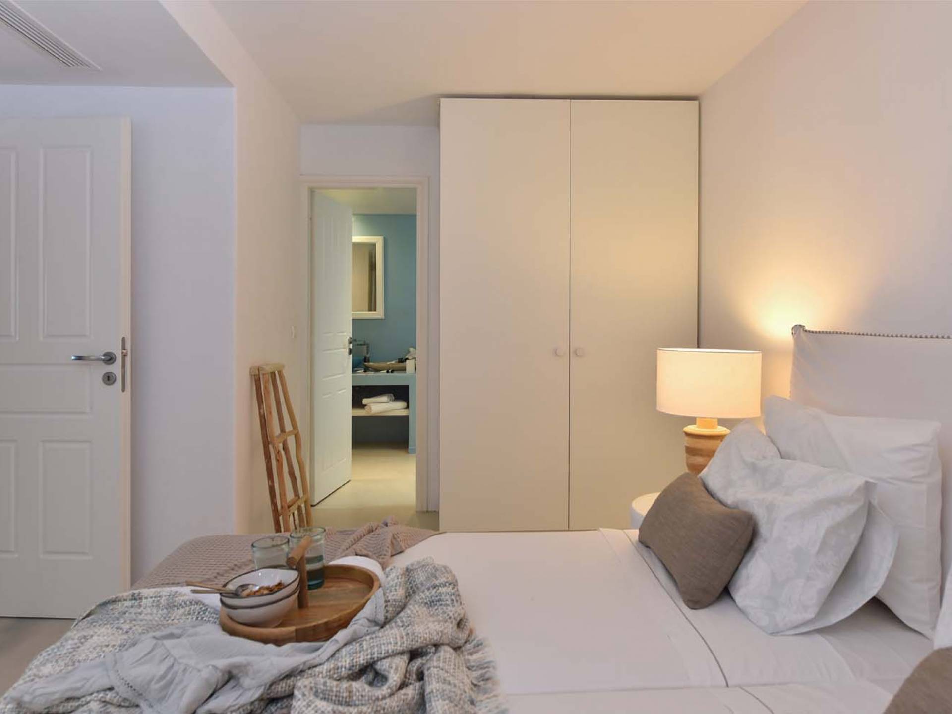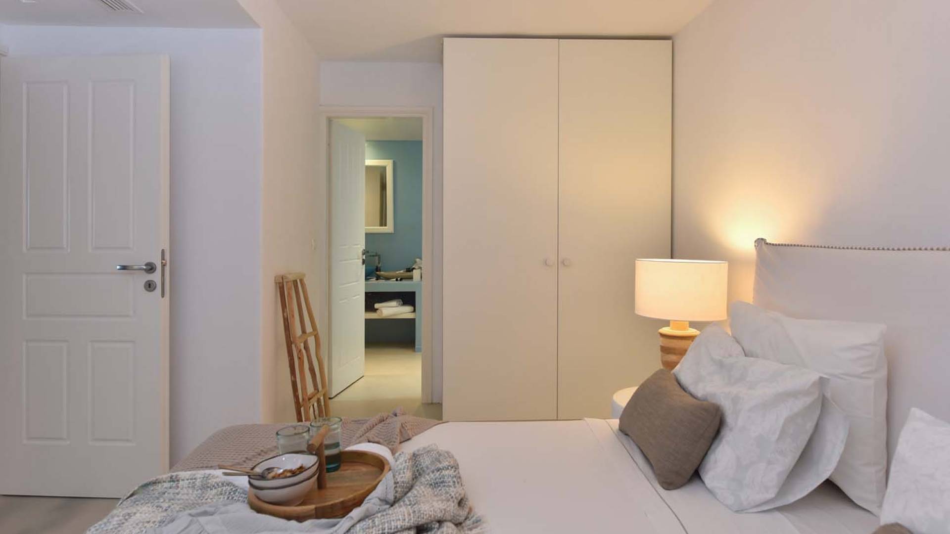 The 130 sq. meters Ambassador Superior Villa is a 3 bedrooms villa carefully crafted for families or big parties. Sit back and enjoy the views of the sea and Santa Maria area from the first-floor balcony or the well-equipped veranda at the bottom of the villa with direct access to the most wonderful pool of Paros. This category has the 2 bedrooms with en-suite bathrooms on the first floor and the 3rd bedrooms with en-suite bathroom too at the bottom. The bottom level features also a villa’s kitchen with a dining table. The living area promises summer moments of relaxation consisting of fluffy sofas.