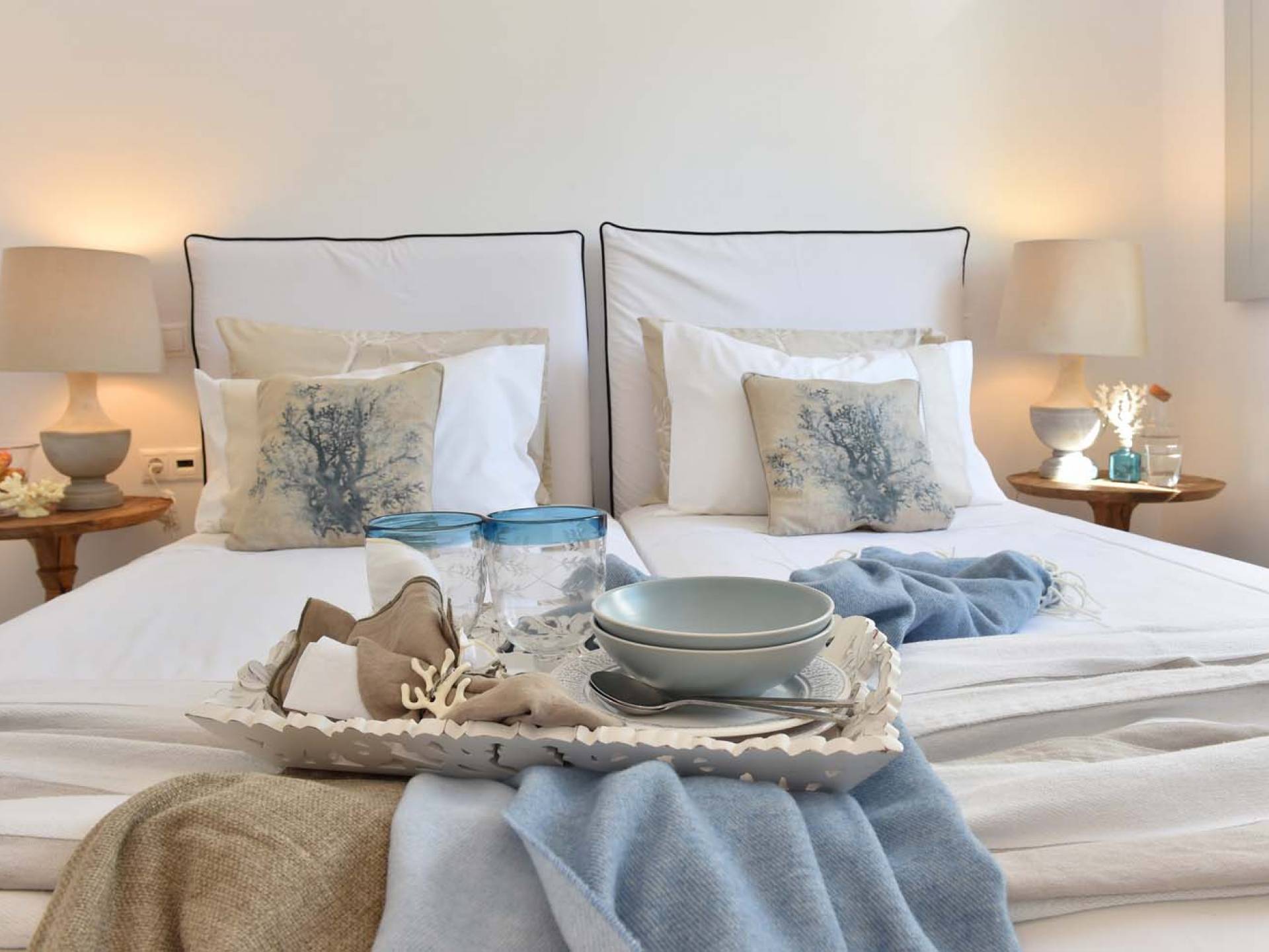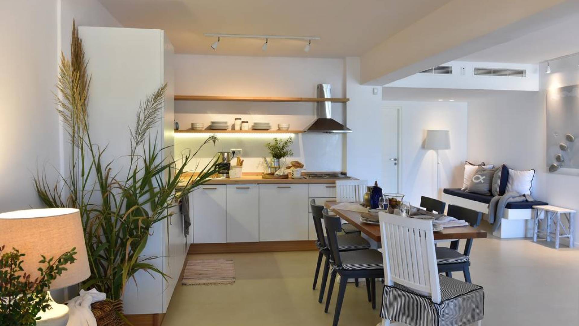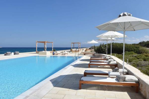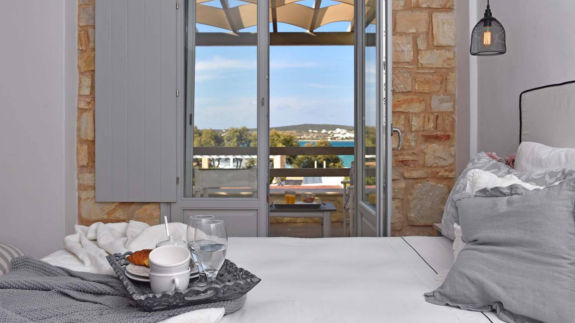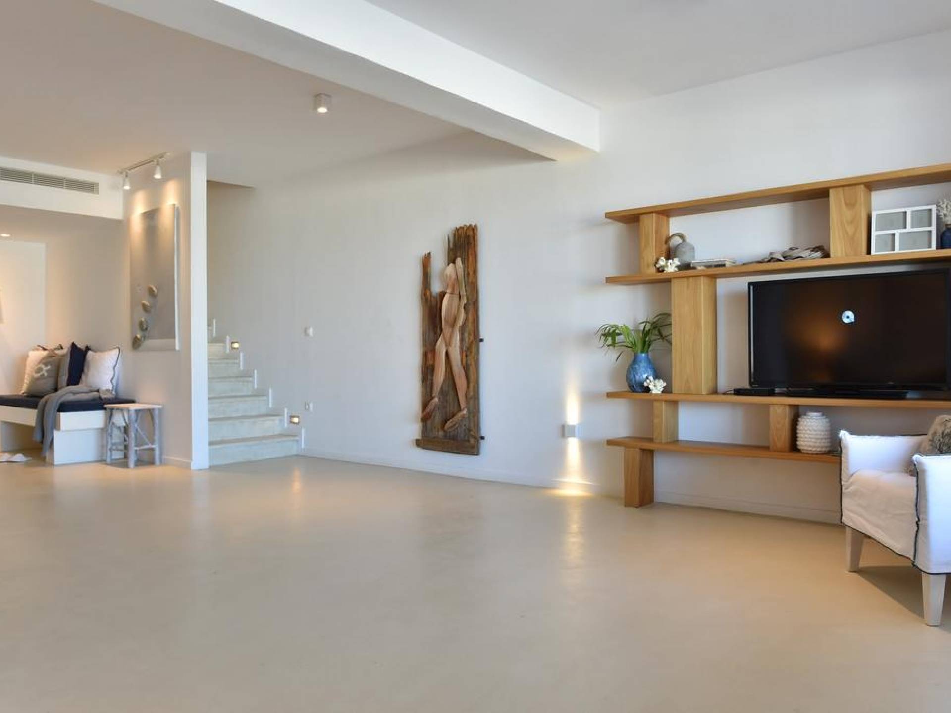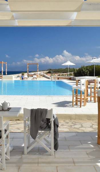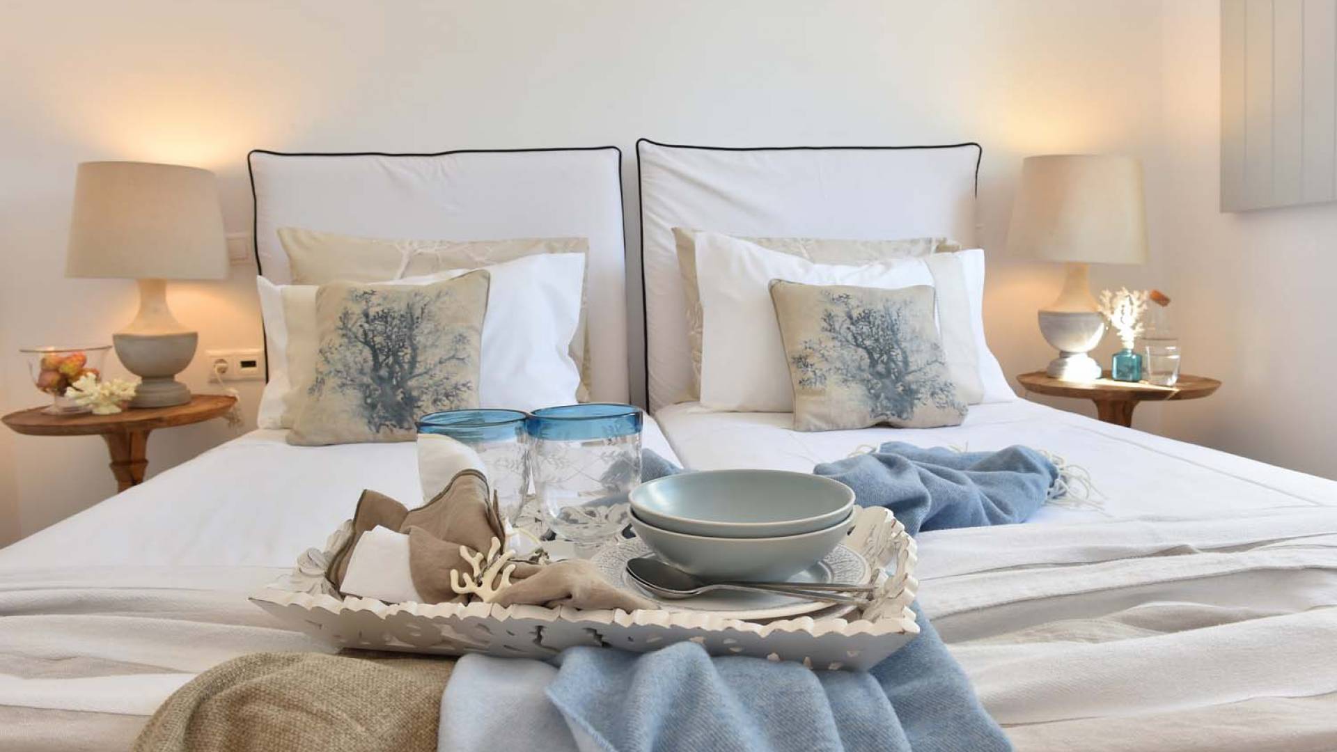 The 130 sq. meters Ambassador Superior Villa is a 3 bedrooms villa carefully crafted for families or big parties. Sit back and enjoy the views of the sea and Santa Maria area from the first-floor balcony or the well-equipped veranda at the bottom of the villa with direct access to the most wonderful pool of Paros. This category has the 2 bedrooms with en-suite bathrooms on the first floor and the 3rd bedrooms with en-suite bathroom too at the bottom. The bottom level features also a villa’s kitchen with a dining table. The living area promises summer moments of relaxation consisting of fluffy sofas.