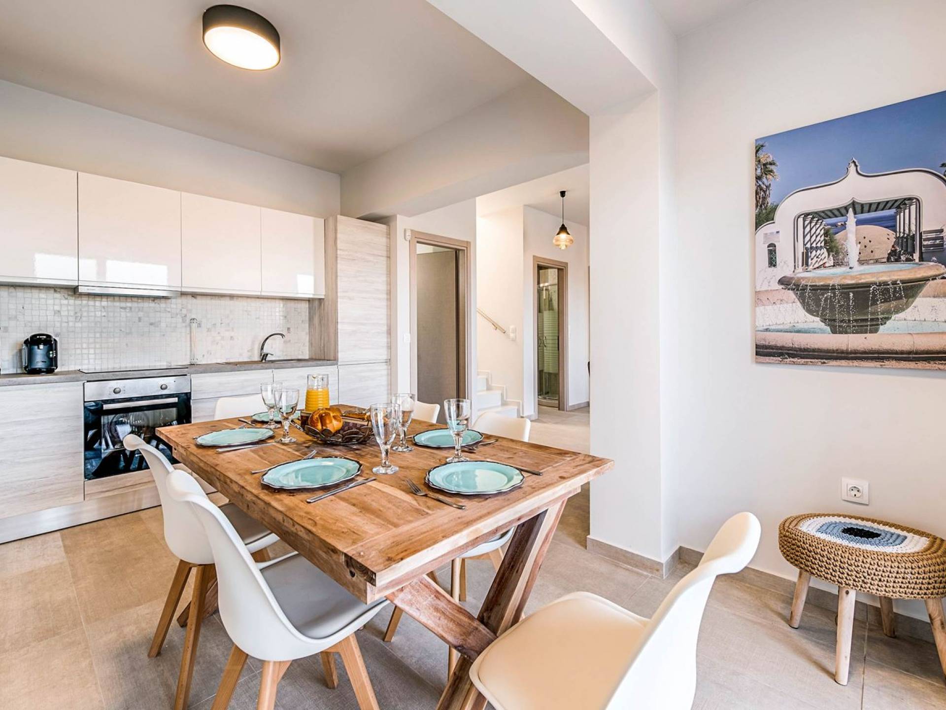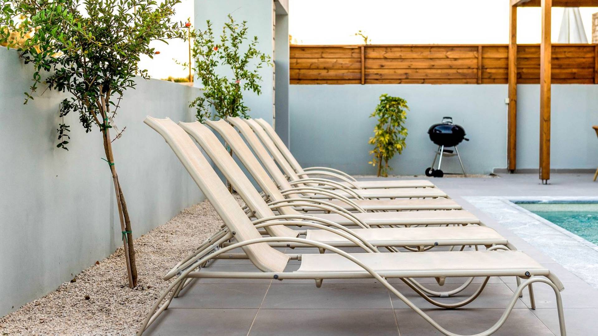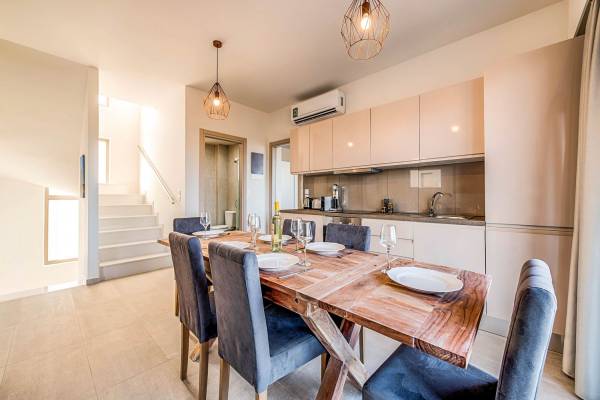 The complex is surrounded by a Mediterranean garden with a large swimming pool, parasols, sunbeds and BBQ. Each villa has 4 bedrooms with large double beds. They feature a large open plan living room with comfortable sofas and a flat-screen TV with satellite channels. There is a fully equipped kitchen designed for the needs of modern travelers, with dining table, large fridge, oven, microwave, water boiler, dishwasher and filter coffee maker. Each villa also has 3 bathrooms with a shower. The bathrooms are equipped with toiletries and hairdryers. There is also a utility room with a washing machine. Free Wi-Fi access is available throughout the property.