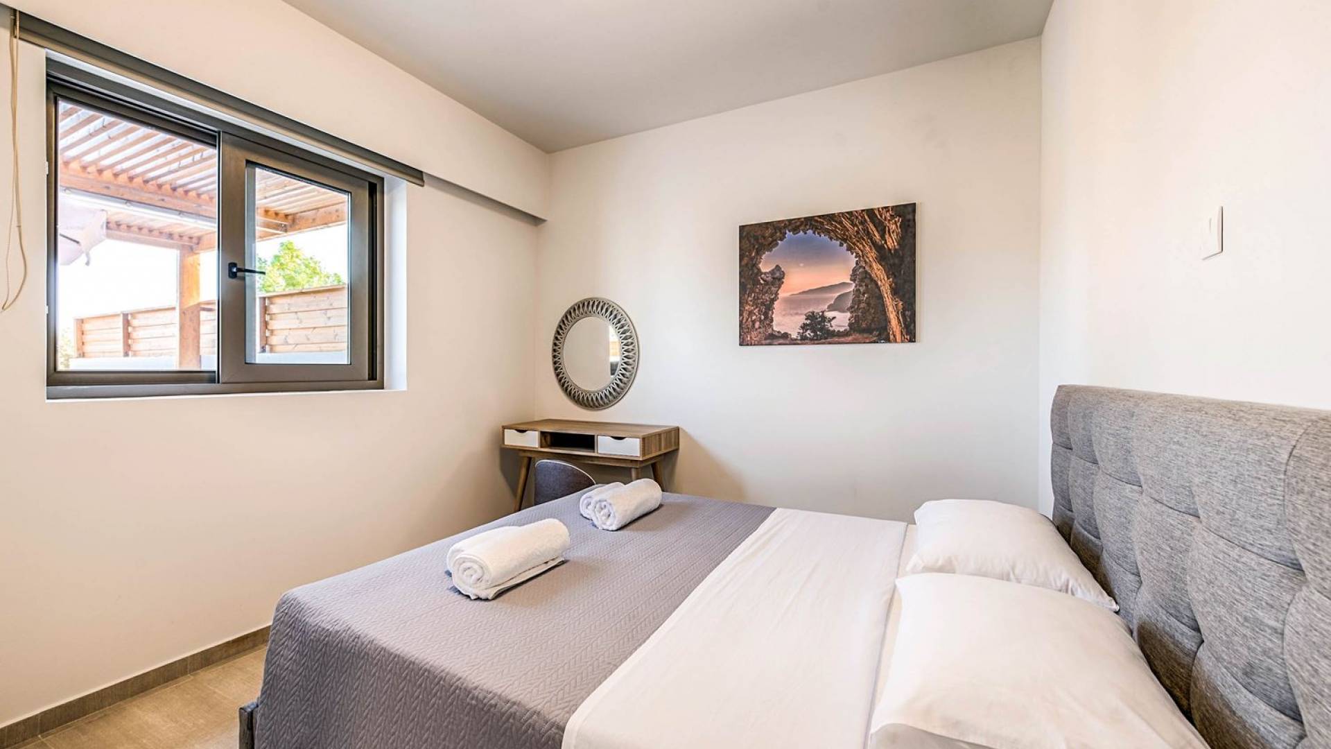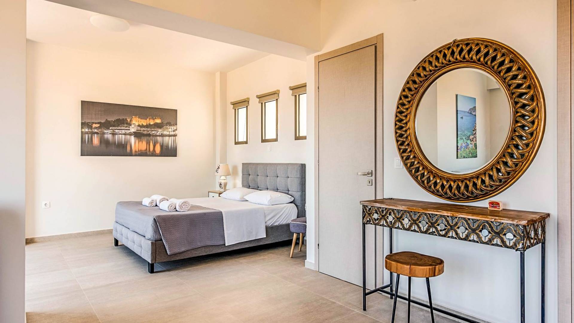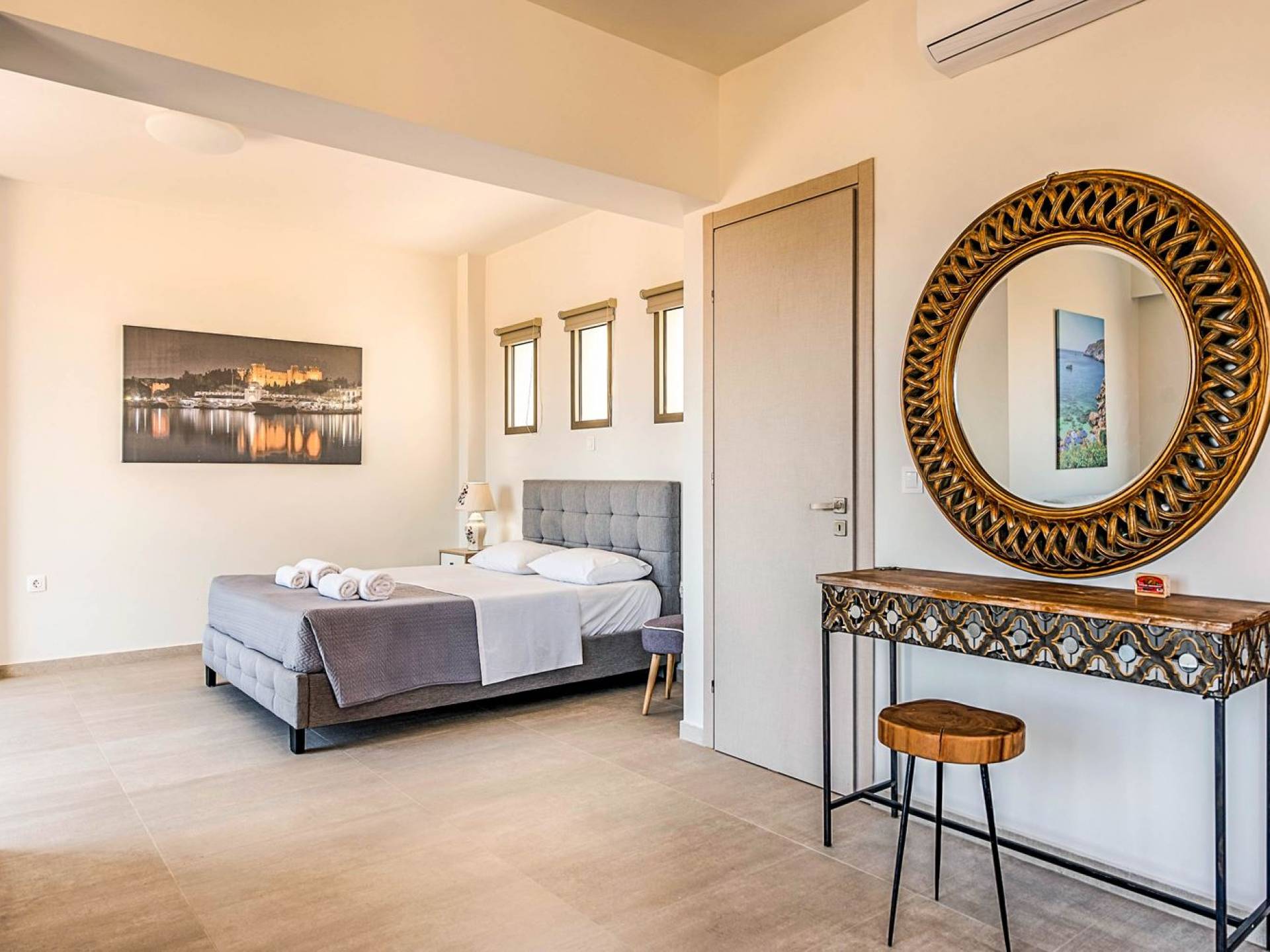 Villa Alina at Olive & Stone Villas Rhodes is a luxury villa rentals with 4 bedrooms and private pool. Welcome to our newly built luxury Olive & Stone Villa complex. Each villa has a private swimming pool overlooking the famous Gennadi beach, just a 5 minute-drive from Gennadi village. The location is an ideal gateway for those who seek relaxing holidays, and at the same time want to be near to all conveniences. Each villa has 3 floors which host up to 10 guests, it is decorated with unique style and high quality furniture.