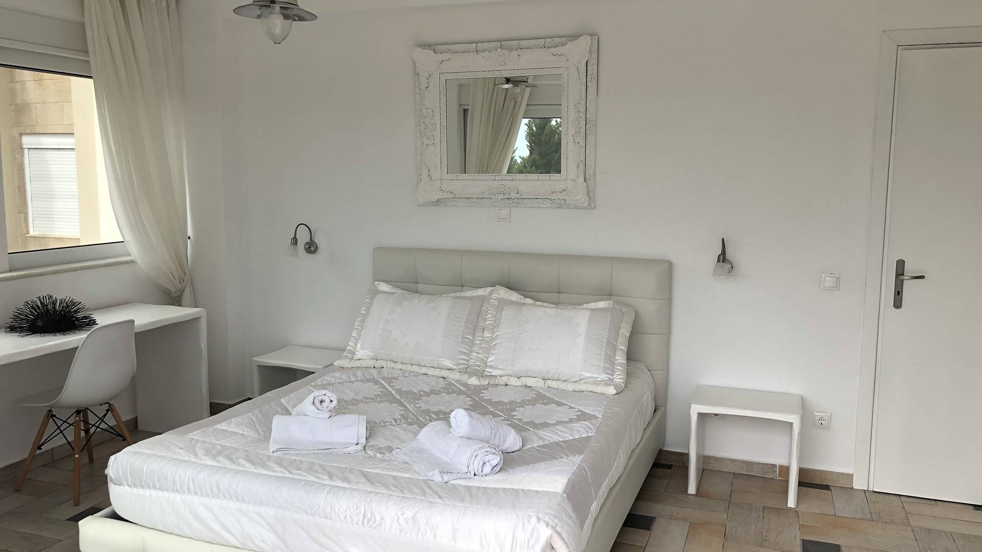 Villa Aqua Di Mare is uniquely designed to sleep ten people comfortably, with five bedrooms. Furnished with comfortable beds and elegant bedroom furniture. Watch the light dance across the waves of the Mediterranean as the sunsets from the comfort of your private balcony, a perfect place for a romantic evening. and breathtaking views of the sea. All bedrooms have unique features and decor that leave all guests with a unique and memorable experience, no matter which bedroom they stay in. There are three full bathrooms outfitted with the finest accommodations, along with a half bathroom near the living room area.