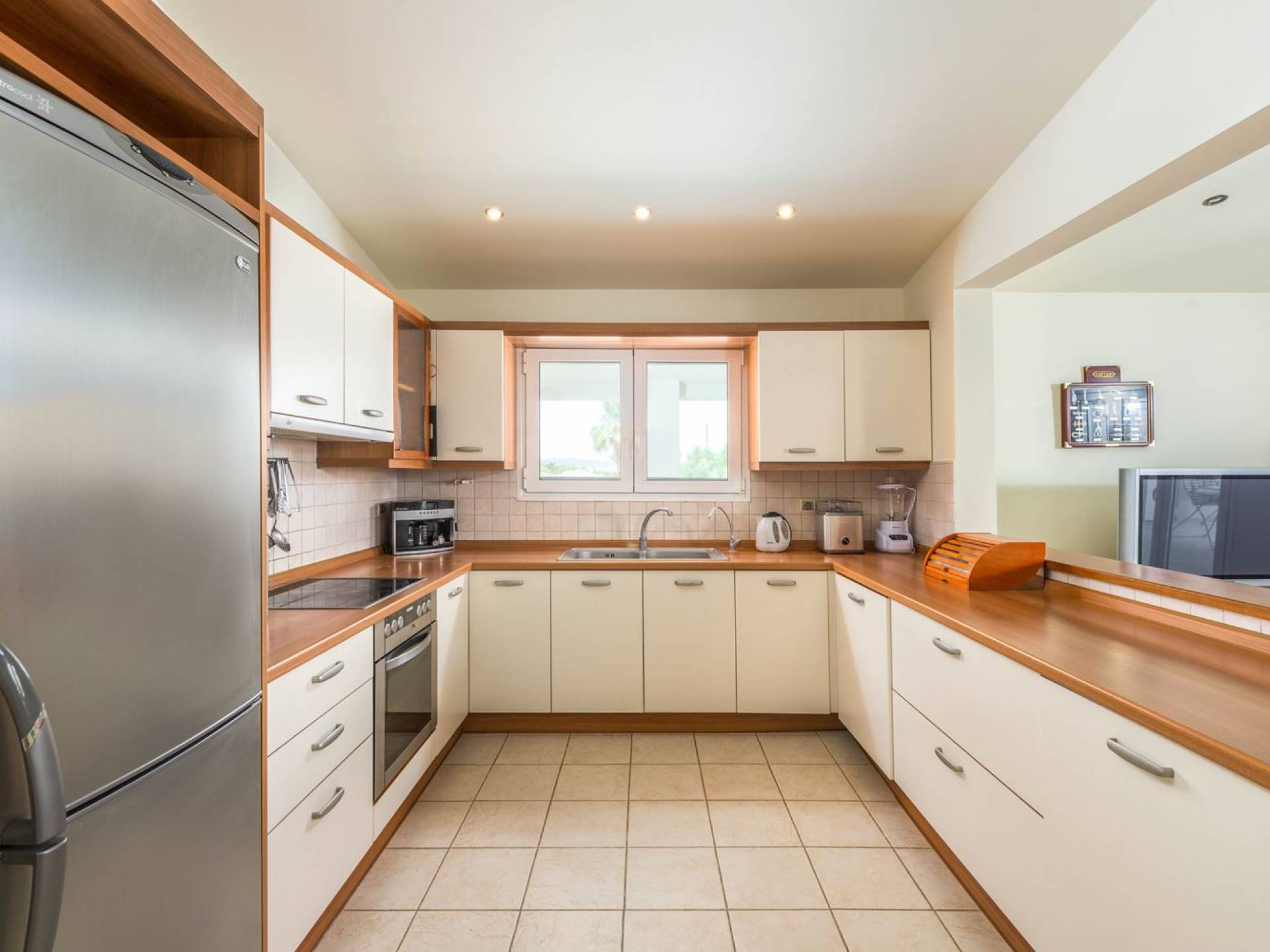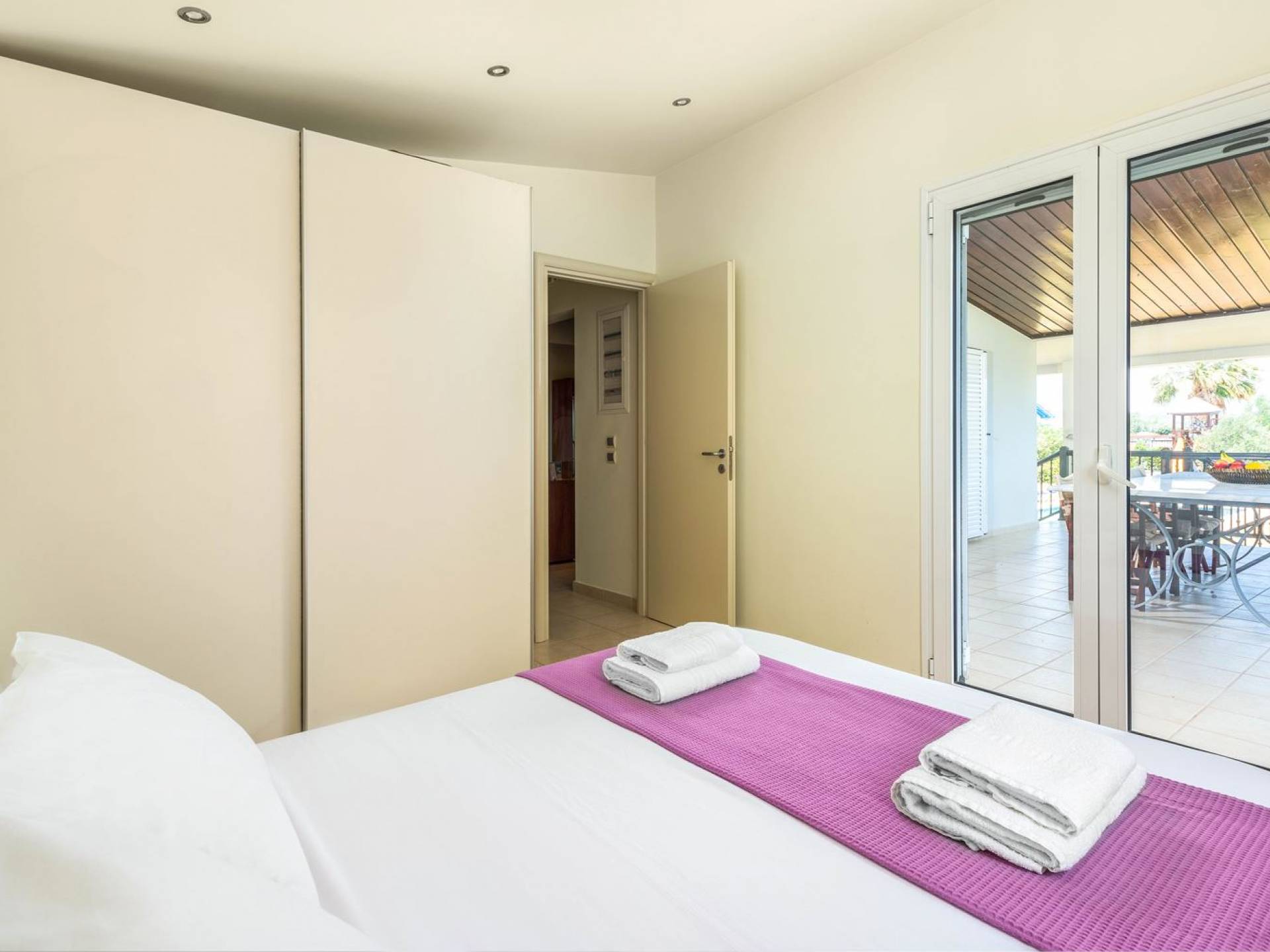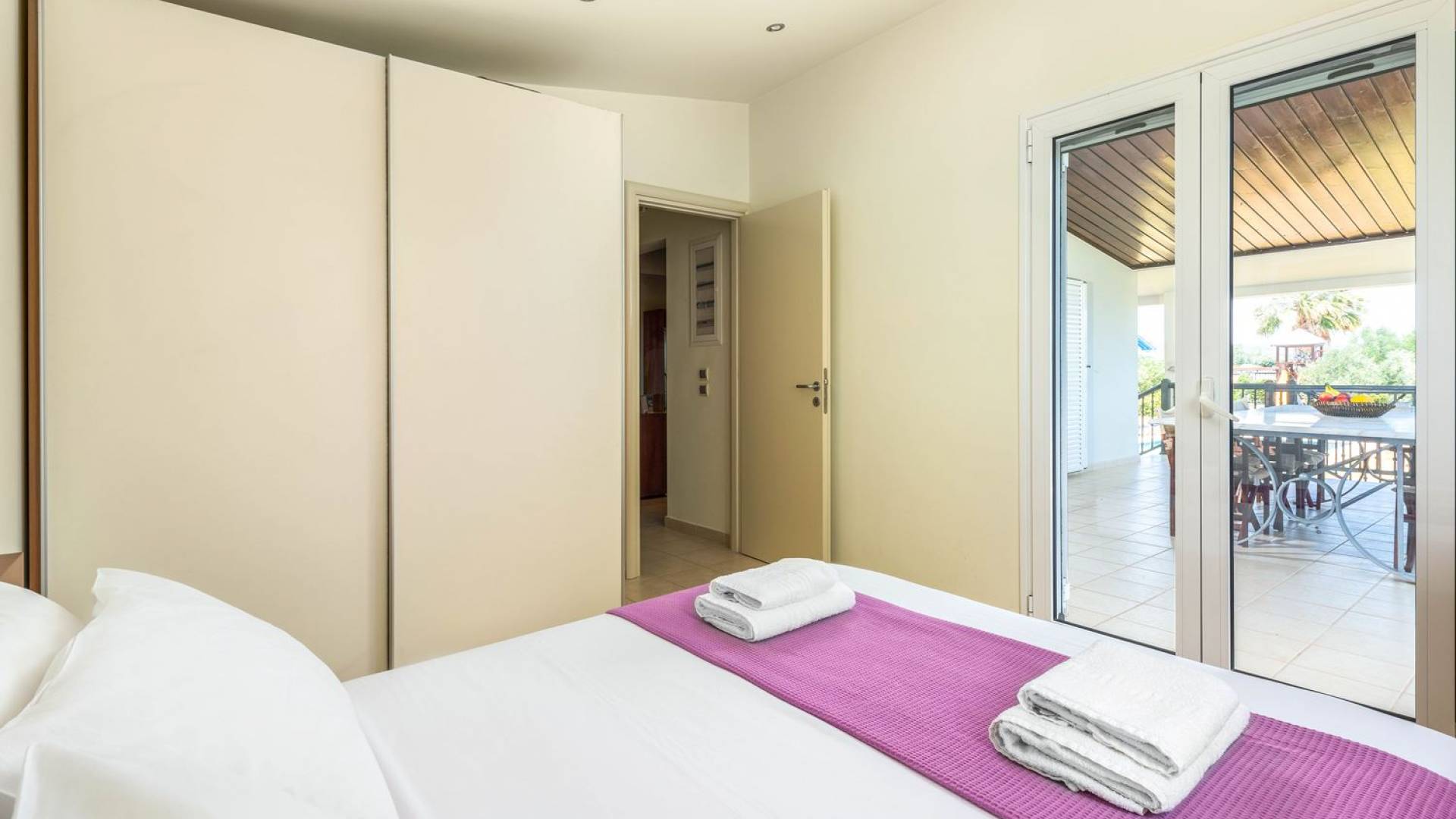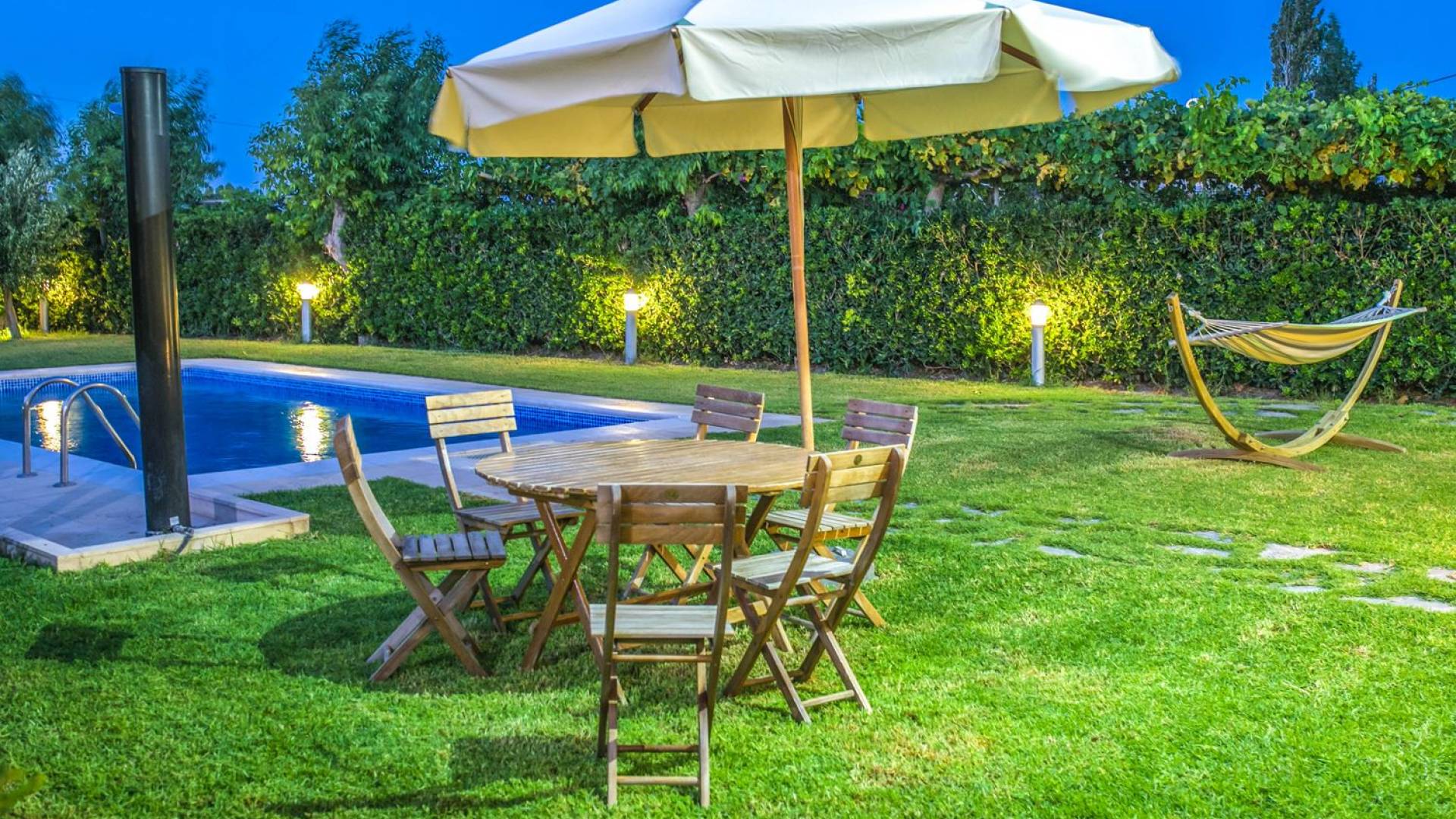 The property is set in the garden ground with native vegetation, large lawn areas, mature trees, a totally new swimming pool, a playground, and a built-in BBQ place. A modernly designed home offers guests the chance to relax inside watching tv or sitting on the veranda overlooking the Mediterranean Sea. The garden is ideal for children to play with and for adults to sunbathe. The extra mobile BBQ and the dining table in the garden is easy solution for lunch or dinner.