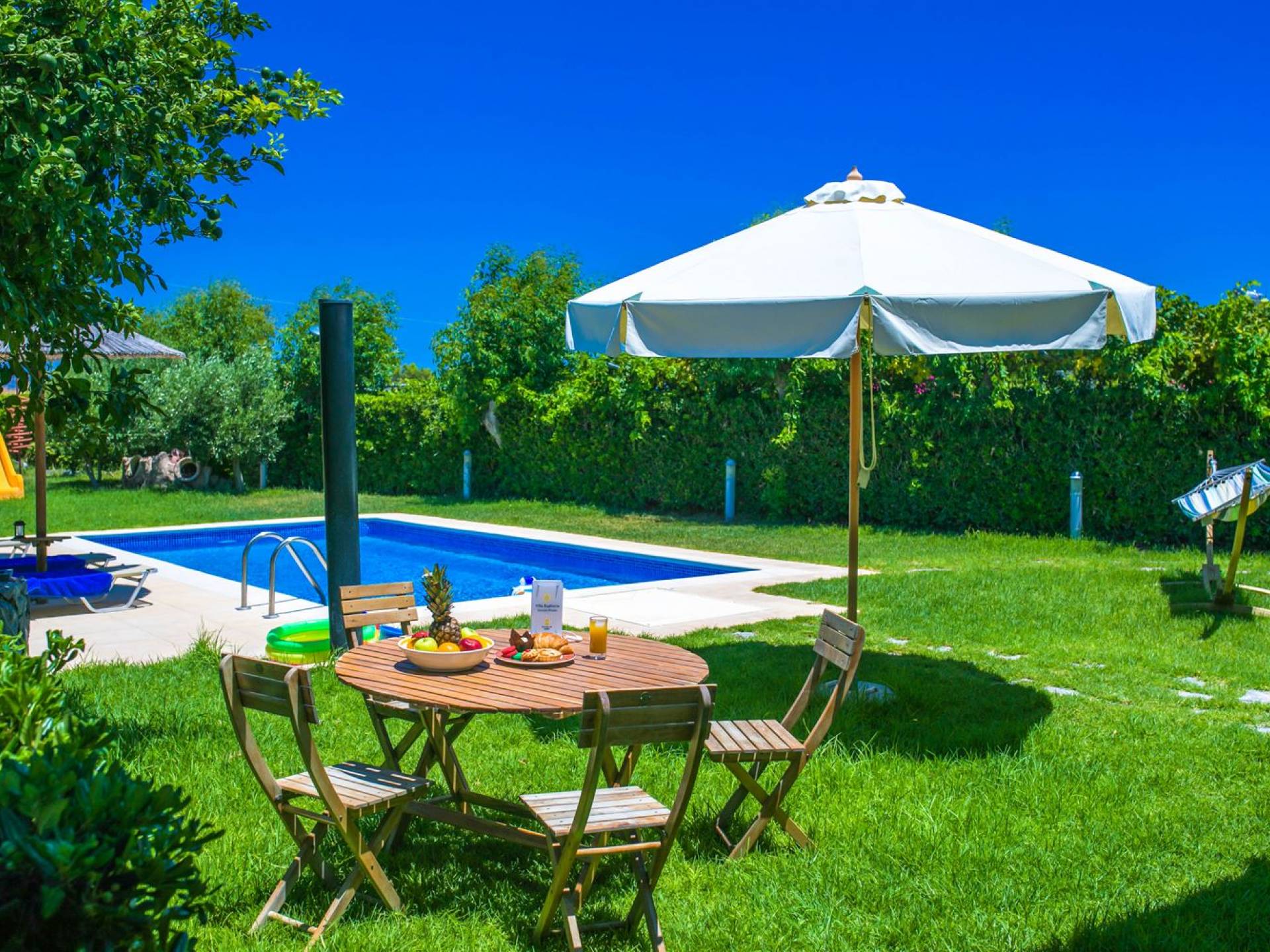Villa Euphoria Rhodes is ideal for families with young children, young and older couples who want to relax in a house with many comforts, a garden ideal for children, and those who love having their own fruit and vegetables growing in the garden.