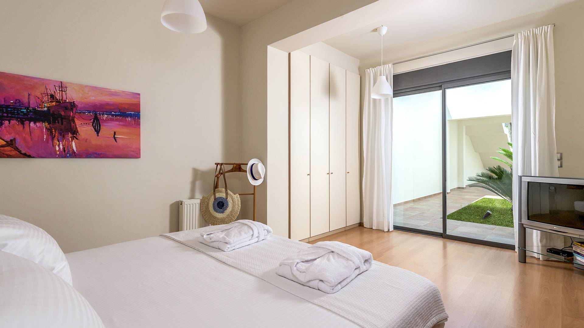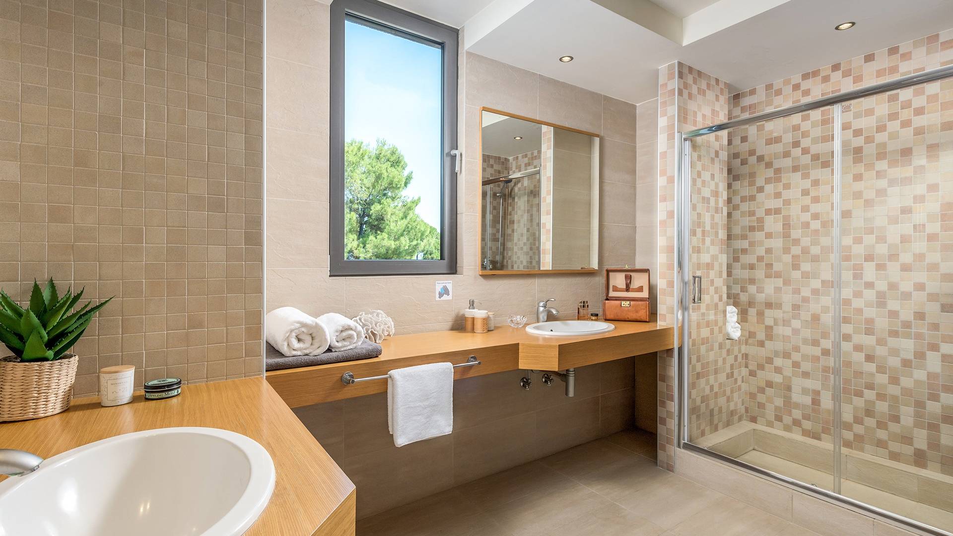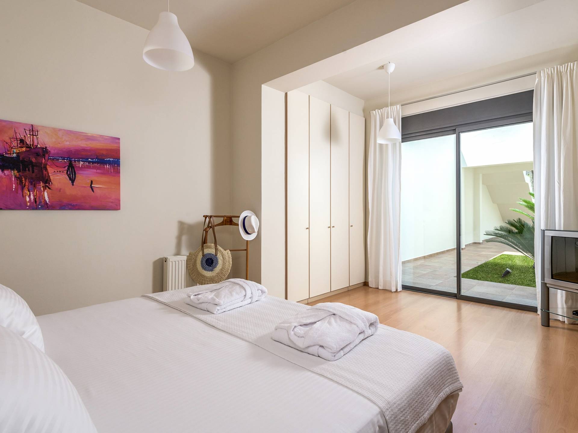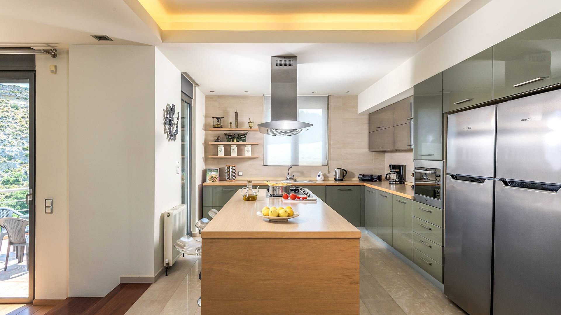 This beautifully crafted villa has 4 fully air-conditioned bedrooms, 3 double-bedded rooms, and 1 with twin beds. Also, there’s a comfy double sofa bed in the living room. Two of the bedrooms include ensuite bathrooms with showers. There’s another bathroom with a bathtub as well as a WC, all of great utility and comfort. There’s a fully equipped open plan kitchen, suitable for any meal preparation. Guests will find a friendly sitting area along with the living room that has a screen TV. There’s free Wi-Fi access throughout the property. The decoration is absolutely relaxing and peaceful with the warm colors and the minimal style.