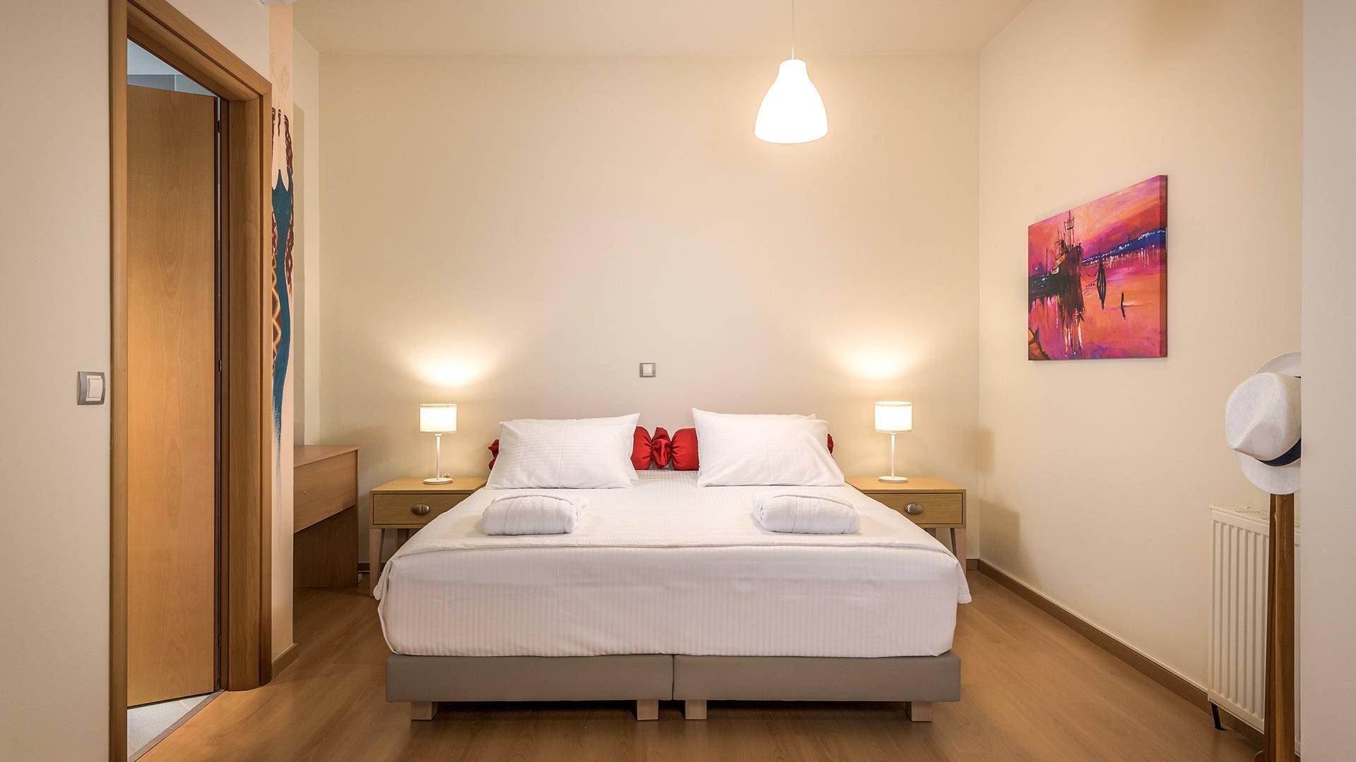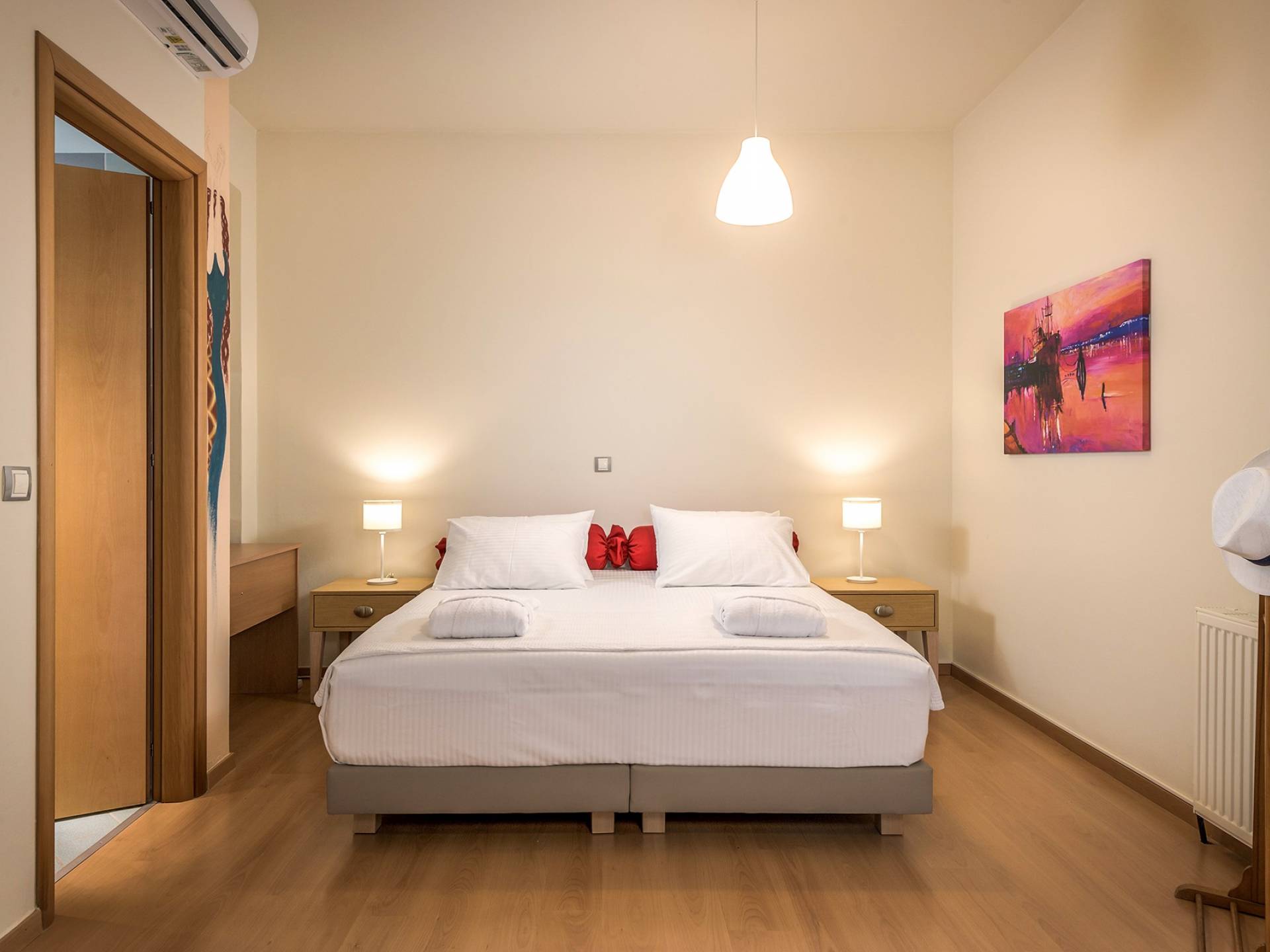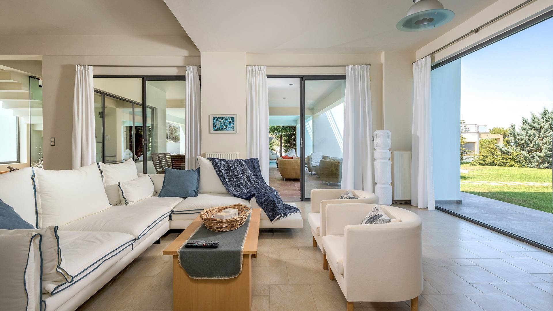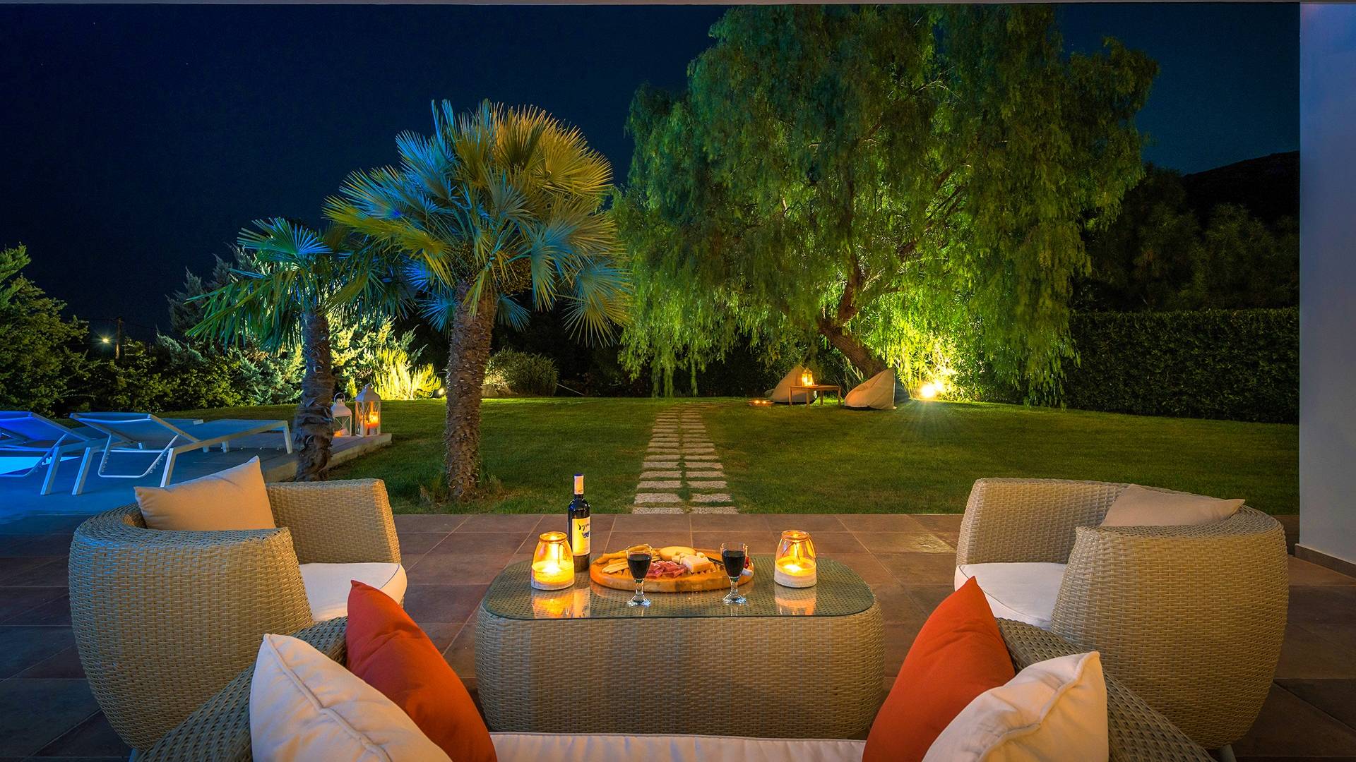 This beautifully crafted villa has 4 fully air-conditioned bedrooms, 3 double-bedded rooms, and 1 with twin beds. Also, there’s a comfy double sofa bed in the living room. Two of the bedrooms include ensuite bathrooms with showers. There’s another bathroom with a bathtub as well as a WC, all of great utility and comfort. There’s a fully equipped open plan kitchen, suitable for any meal preparation. Guests will find a friendly sitting area along with the living room that has a screen TV. There’s free Wi-Fi access throughout the property. The decoration is absolutely relaxing and peaceful with the warm colors and the minimal style.