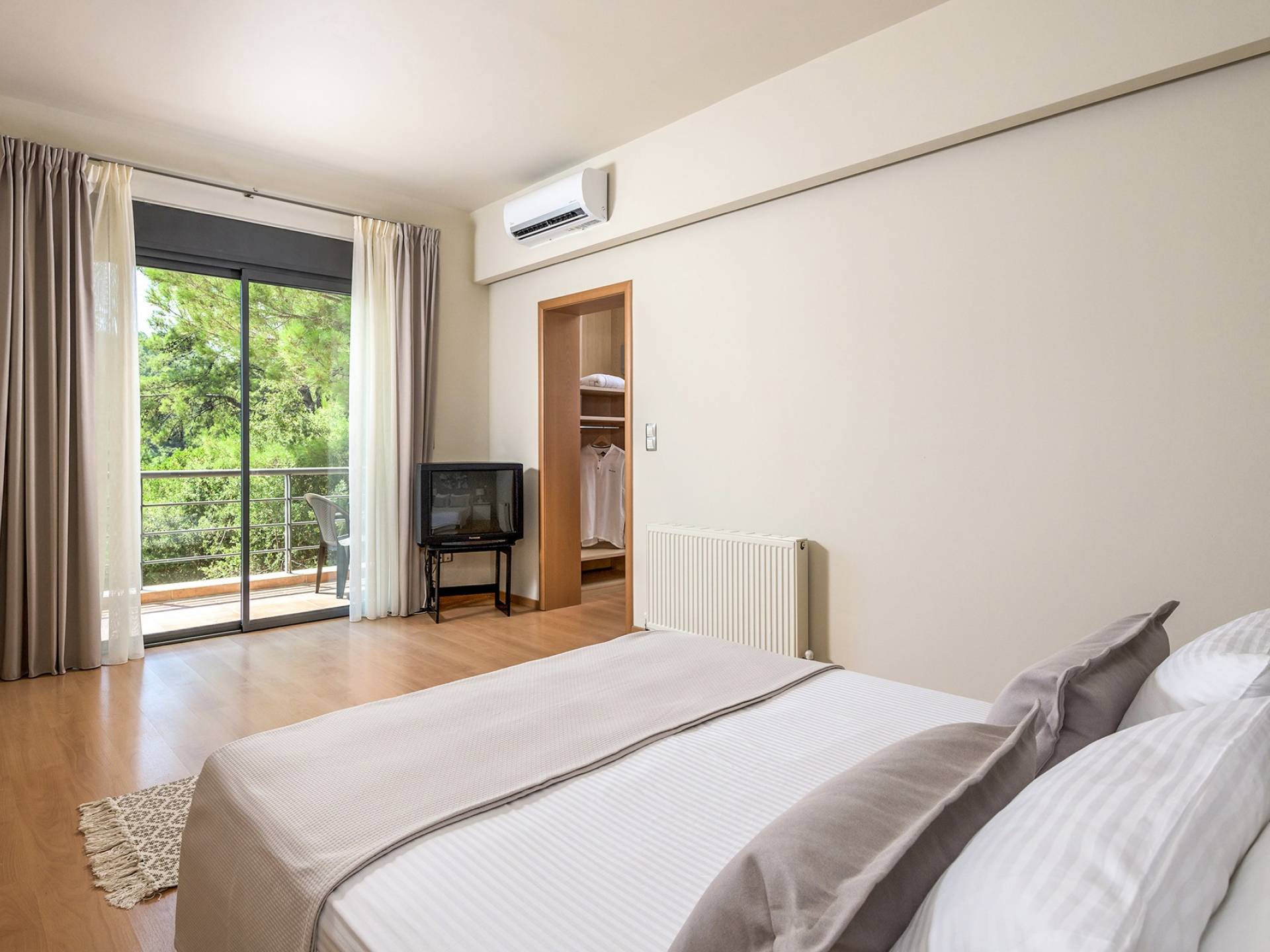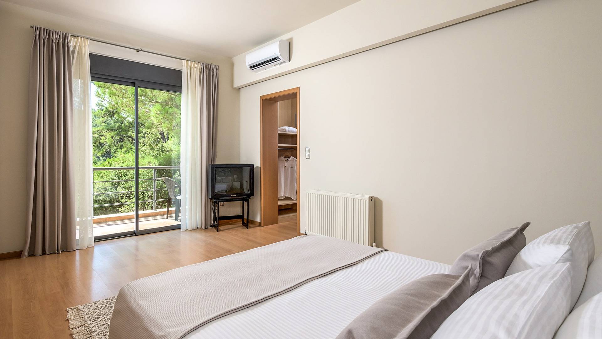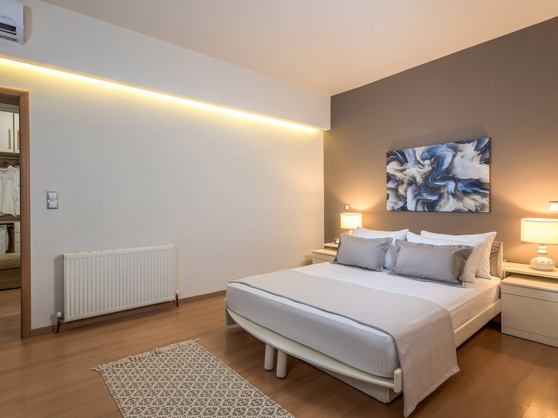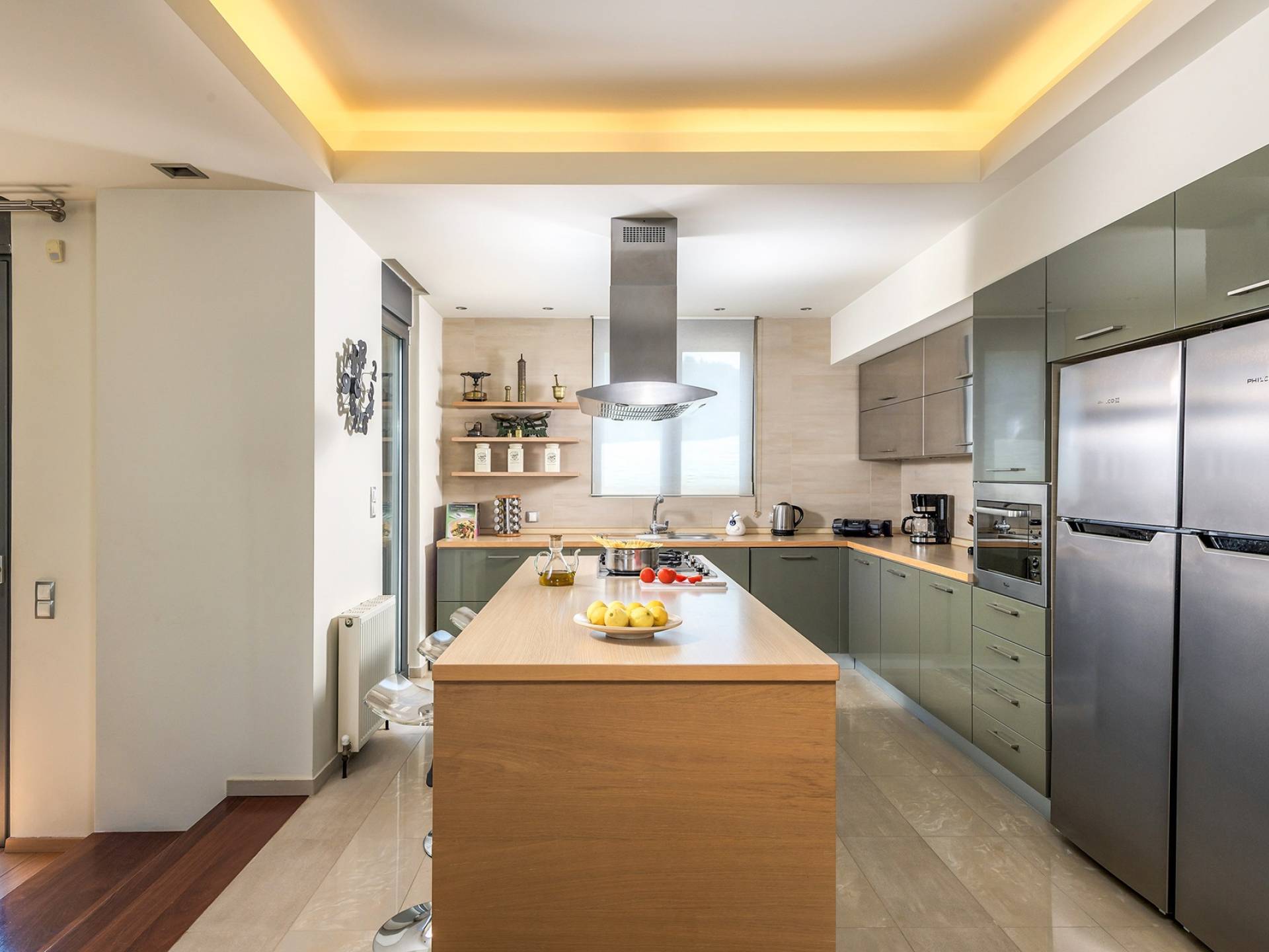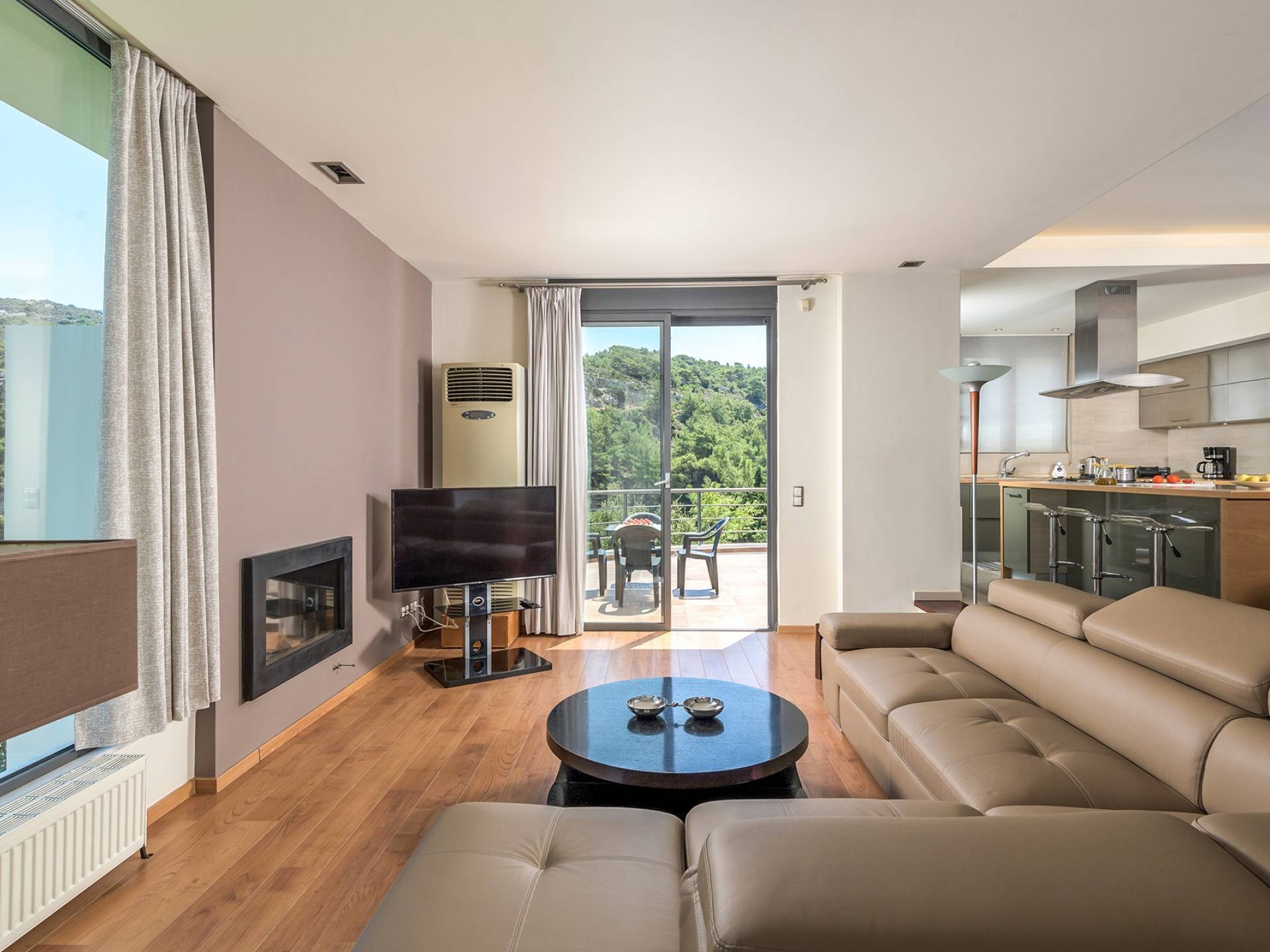 The broad balcony makes the ideal spot for enjoying the sea view and the magnificent sunset in the evening hours. Outdoors, there’s the private swimming pool with its sunbeds for your ultimate relaxation under the Aegean sun. Also, there’s a BBQ installation and a sitting area to enjoy a gathering with your loved ones. With its amazing views, this exclusive property offers an optimum position to enjoy the sunlight and the utmost privacy. Ixian Hilltop Villa is a modernly designed home offering to its guests a wide range of indoor and outdoor amenities that give the opportunity for relaxing and enjoyable holidays.