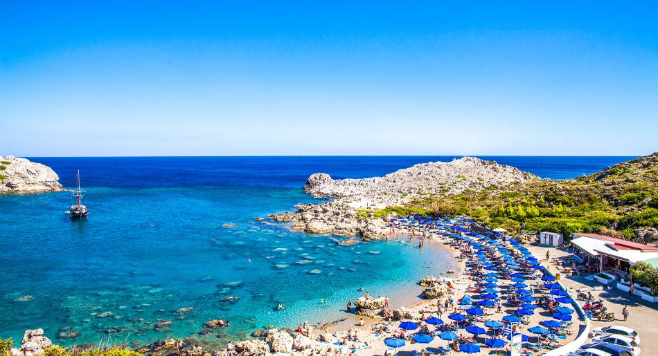 Rhodes is the largest and most popular island of the Dodecanese. Also known for having 300 days of sunshine per year, Rhodes Island is mostly famous for the romantic Old Town and the amazing beach resorts. The Old Town is among the best-preserved Medieval Towns of Europe, with strong walls, a mythical castle, paved paths and elegant stone mansions. Rhodes Island is geographically located between Karpathos and Kos and it is, along Santorini and Mykonos, among the most popular Greek islands.
