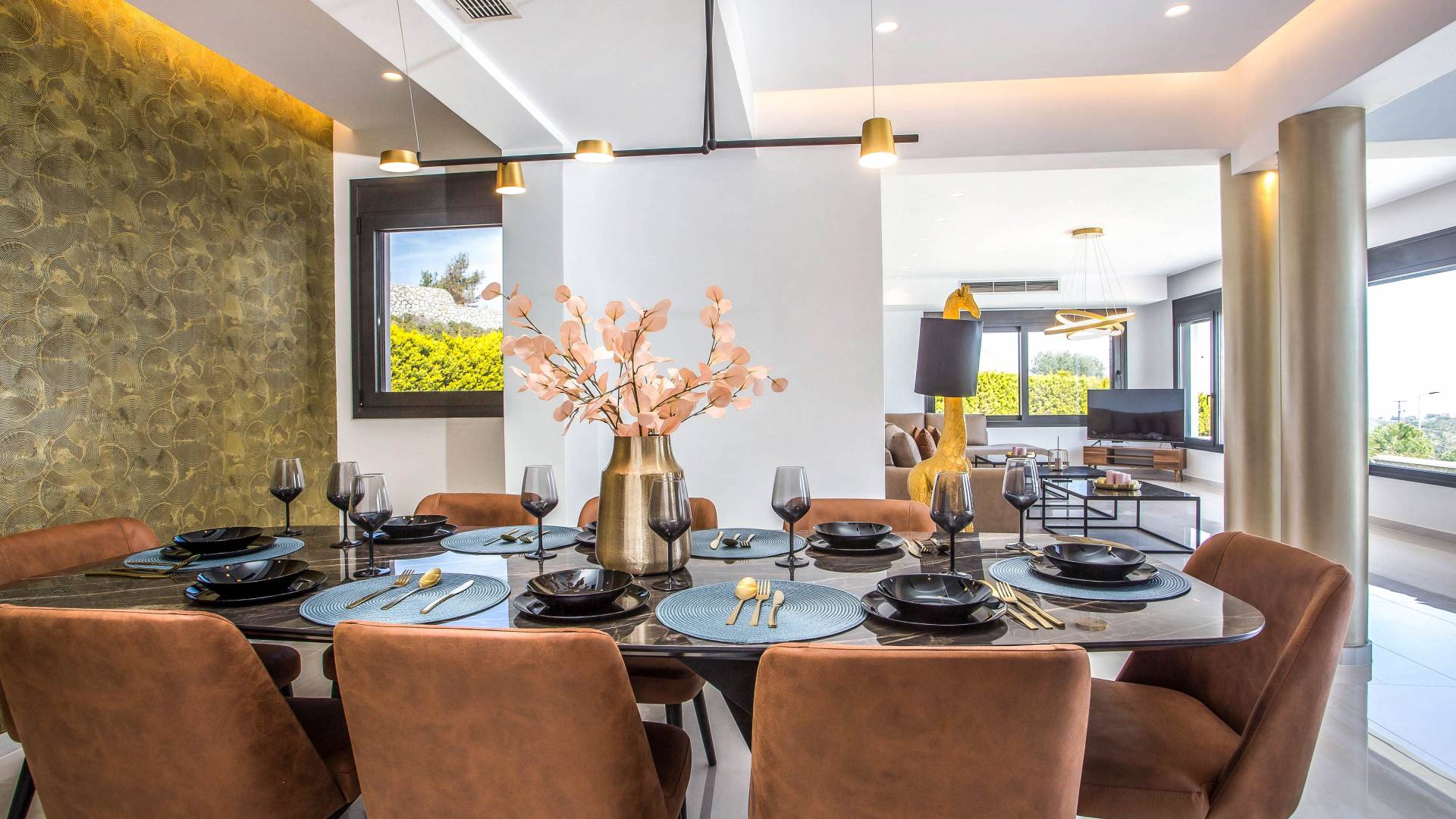 Villa Indira is a breathtaking brand-new villa for rent located in Kalythies. It offers a magnificent private swimming pool as well as a beautiful view of the sea. The modern interior design and all the useful amenities of the house will provide you with a memorable stay. The villa is quite close to the cleanest beach of the island, Traounou beach, in only a 10-minute drive It provides you with the perfect setting for a unique holiday and conveniently accommodates up to 12 guests.