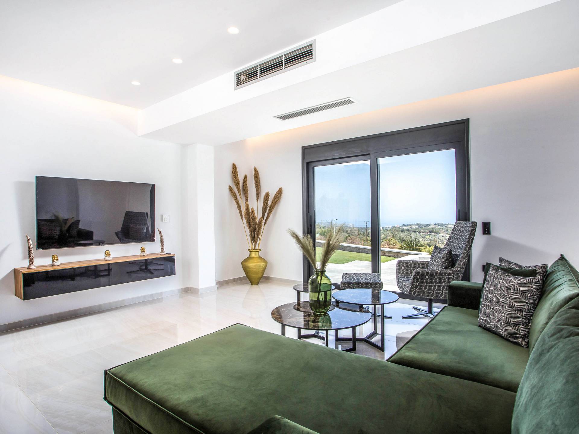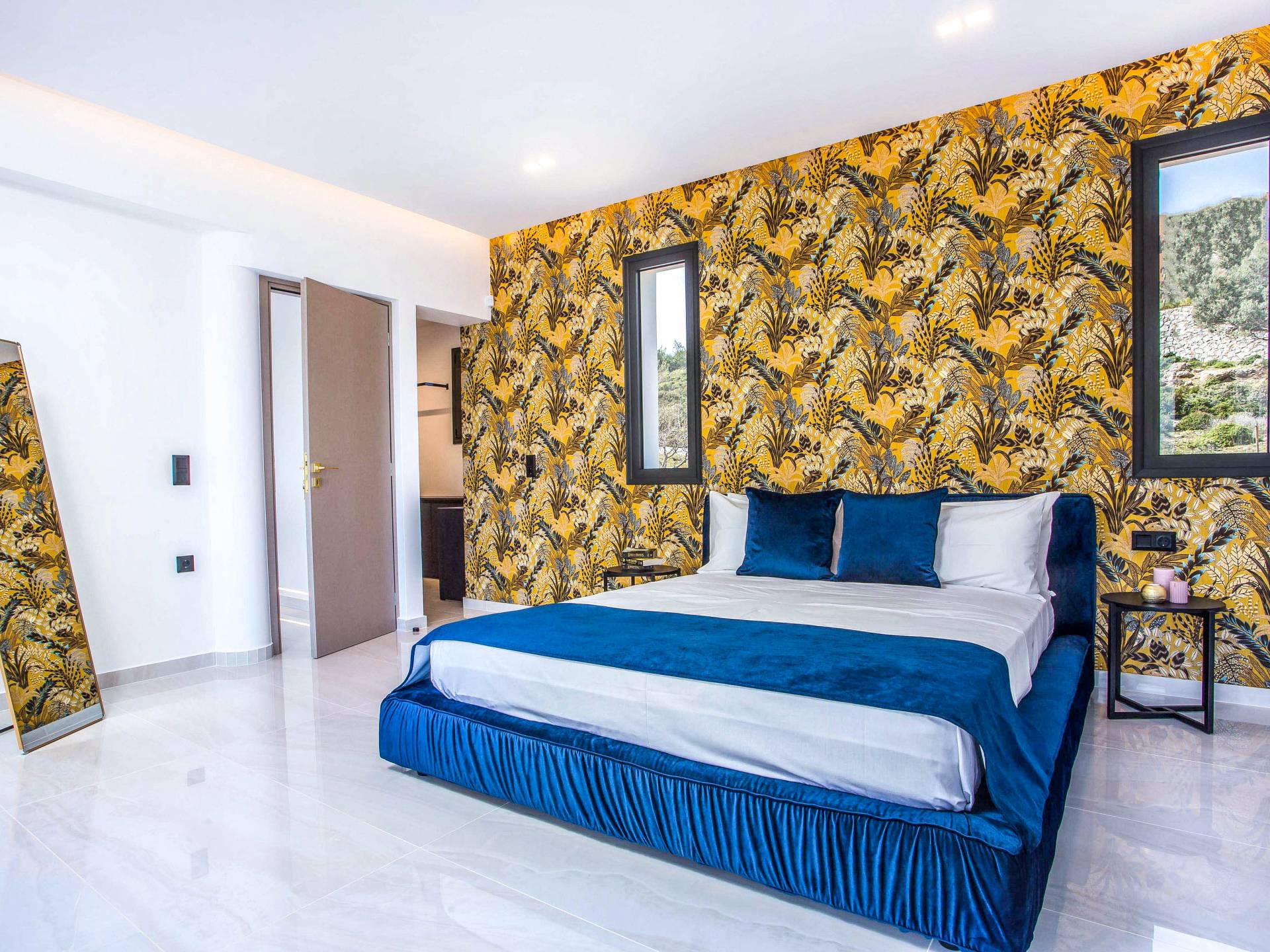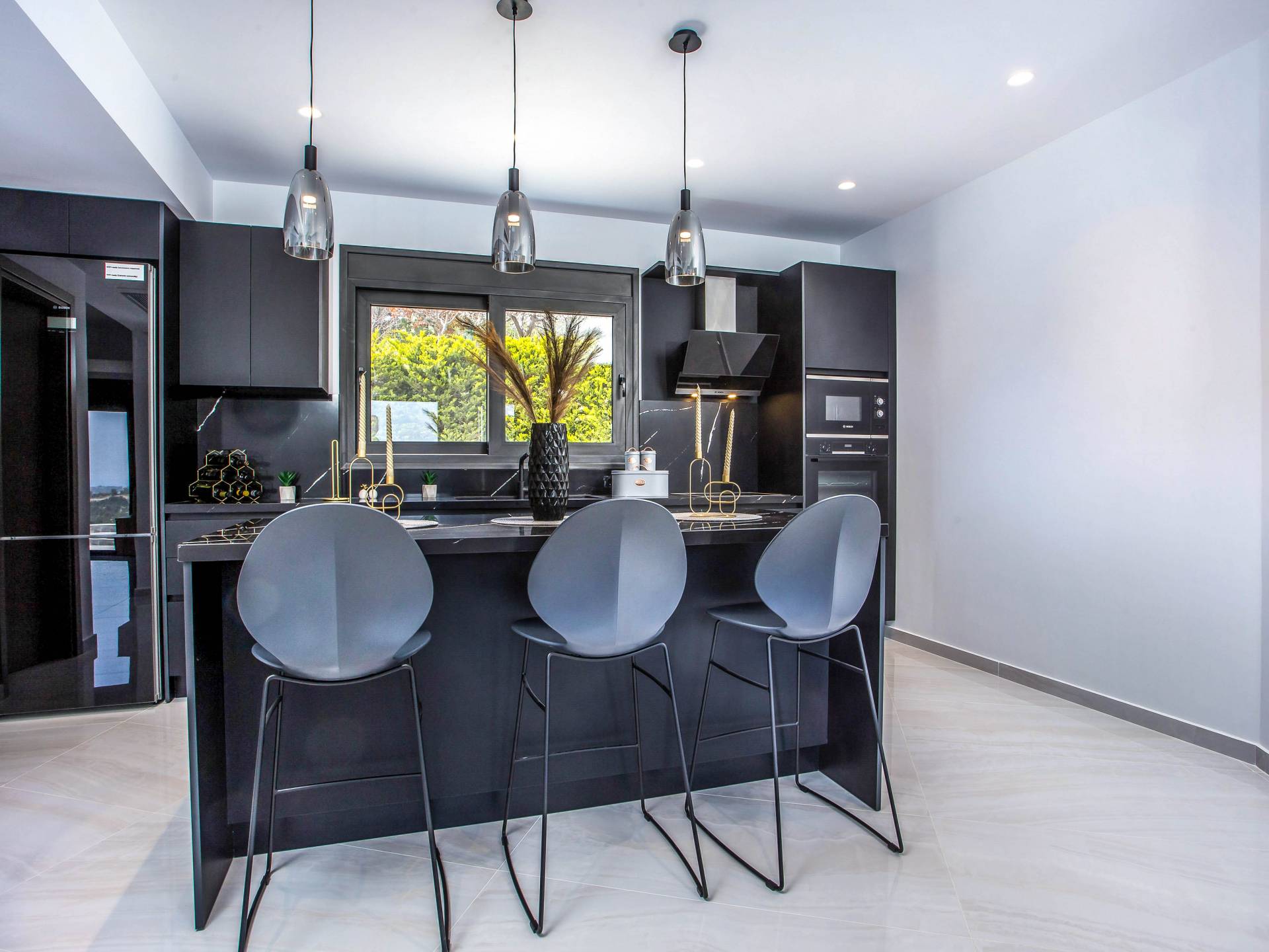 Villa Indira is a 4-bedroom villa. All bedrooms are fully airconditioned and have big double beds. All bedrooms are carefully decorated in a quite contemporary style with an artistic touch. One of the bedrooms has an ensuite bathroom with a bathtub for your ultimate relaxation. Also, there are another two bathrooms with stylish showers. Guests will find two beautiful kitchens, fully equipped for any meal preparation along with comfortable seating areas. In addition, there are two unique living areas in warm colors that will immediately give you peace. In the living areas, there are smart TVs. Villa Indira offers outdoor table tennis, so you can have enjoyable moments with your loved ones. There’s free Wi-Fi access throughout the property. Outdoors, you will find the enchanting private swimming pool and its sunbeds. The surrounding is quite peaceful with its incredible view to the sea and the beautiful garden. Guests will find the BBQ facility and the seating area to relax and enjoy a gathering.