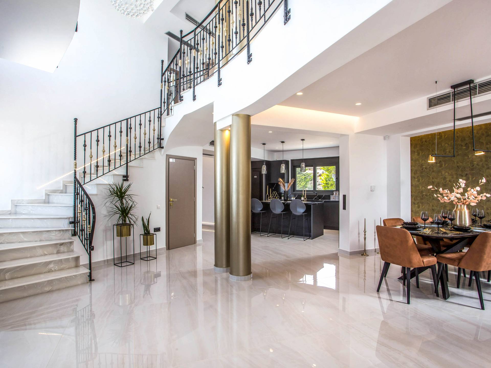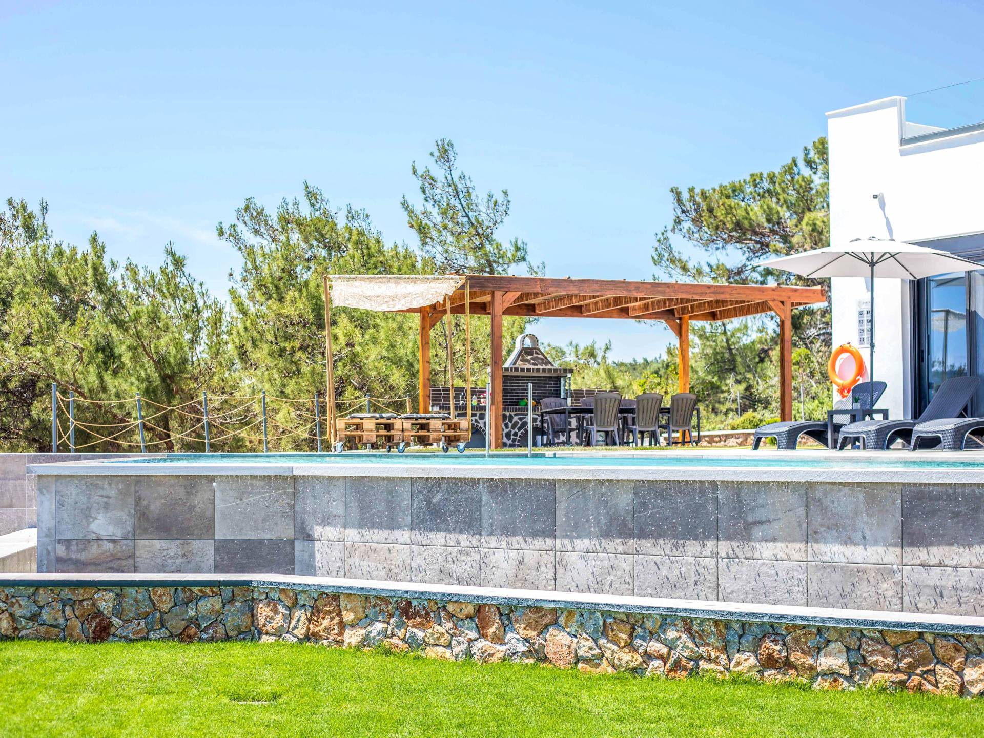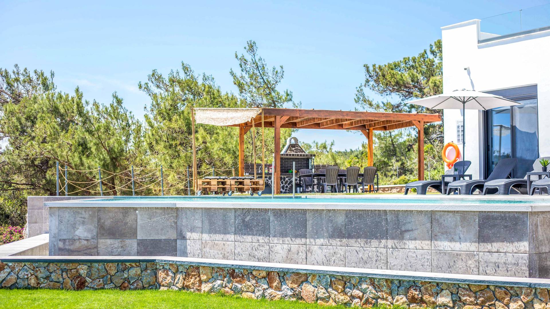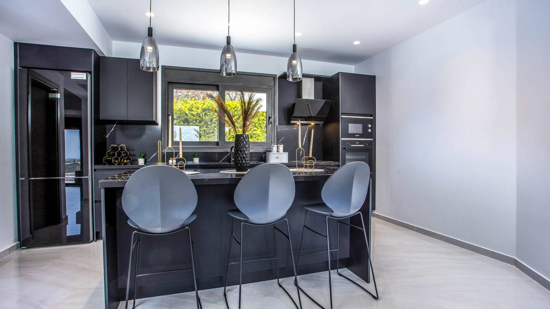 Villa Indira is a 4-bedroom villa. All bedrooms are fully airconditioned and have big double beds. All bedrooms are carefully decorated in a quite contemporary style with an artistic touch. One of the bedrooms has an ensuite bathroom with a bathtub for your ultimate relaxation. Also, there are another two bathrooms with stylish showers. Guests will find two beautiful kitchens, fully equipped for any meal preparation along with comfortable seating areas. In addition, there are two unique living areas in warm colors that will immediately give you peace. In the living areas, there are smart TVs. Villa Indira offers outdoor table tennis, so you can have enjoyable moments with your loved ones. There’s free Wi-Fi access throughout the property. Outdoors, you will find the enchanting private swimming pool and its sunbeds. The surrounding is quite peaceful with its incredible view to the sea and the beautiful garden. Guests will find the BBQ facility and the seating area to relax and enjoy a gathering.
