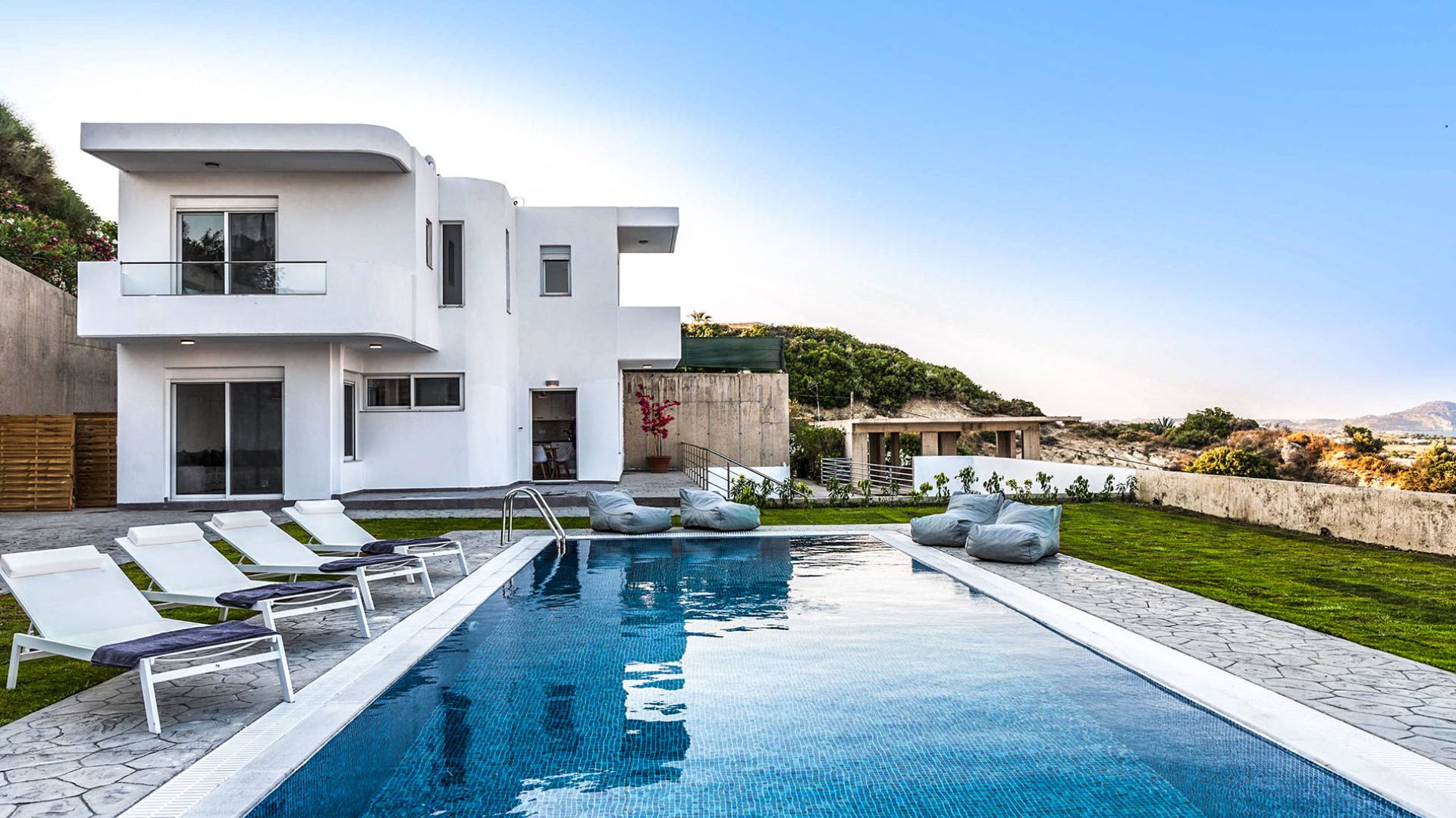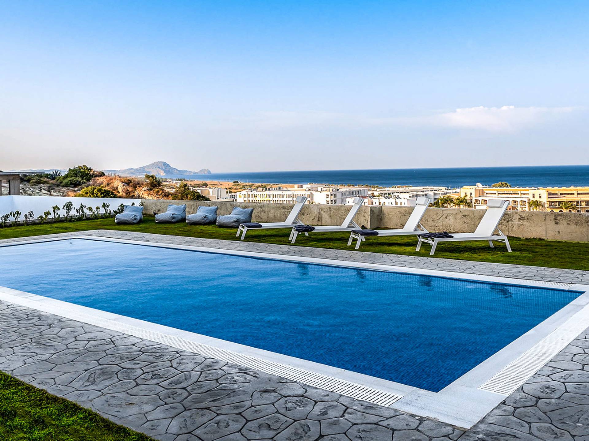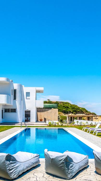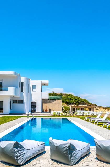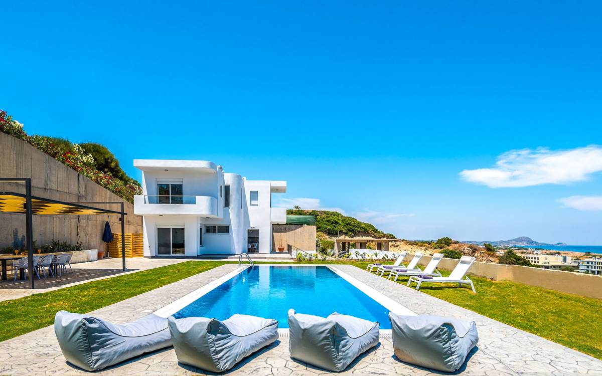 Hill & Sea View Villa 2 Rhodes is a luxury villa rental with 4 bedrooms and a private pool. This is a brand new Villa located on a hillside and accommodates up to 8 people, with a view to the sea! Located in Kolympia area, only 2 km from the sea, it offers fully equipped and tastefully decorated units, with a private pool.