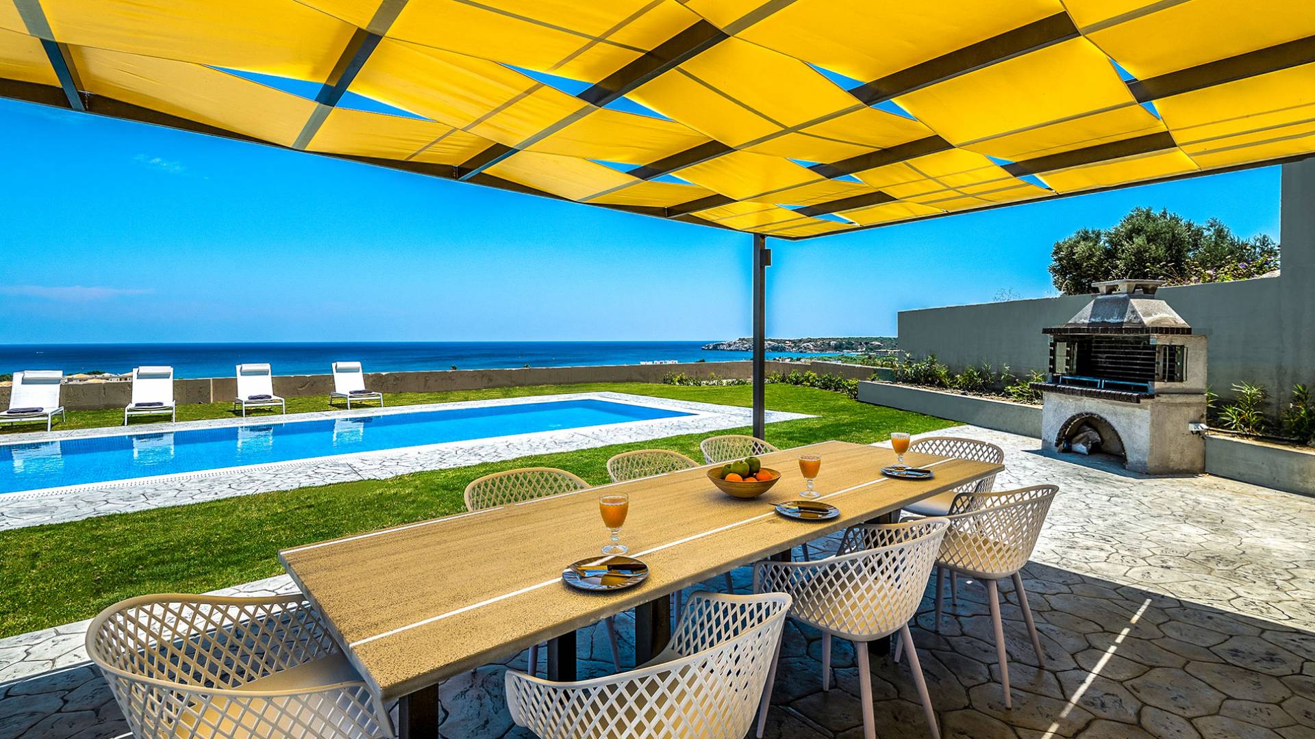 The outdoor area offers a BBQ installation with sitting & dining areas, a sun deck, and all outdoor amenities, including a shower for refreshing after your pool swim. while of course utterly secluded from the outside. Hill & Sea View Villa 2 Rhodes is the perfect getaway for families or groups of friends looking to enjoy a relaxing vacation in style. Discover the true meaning of vacation while staying at the beautiful Hill Sea View Villa.