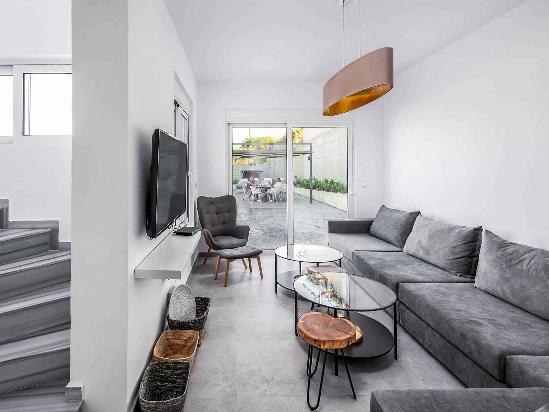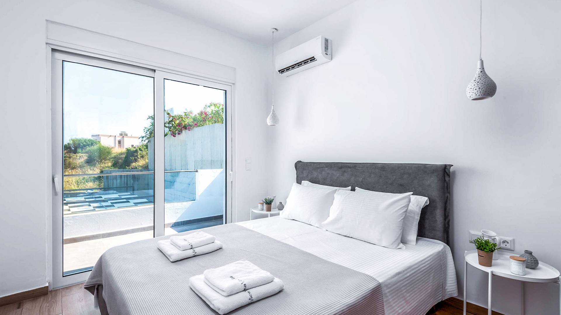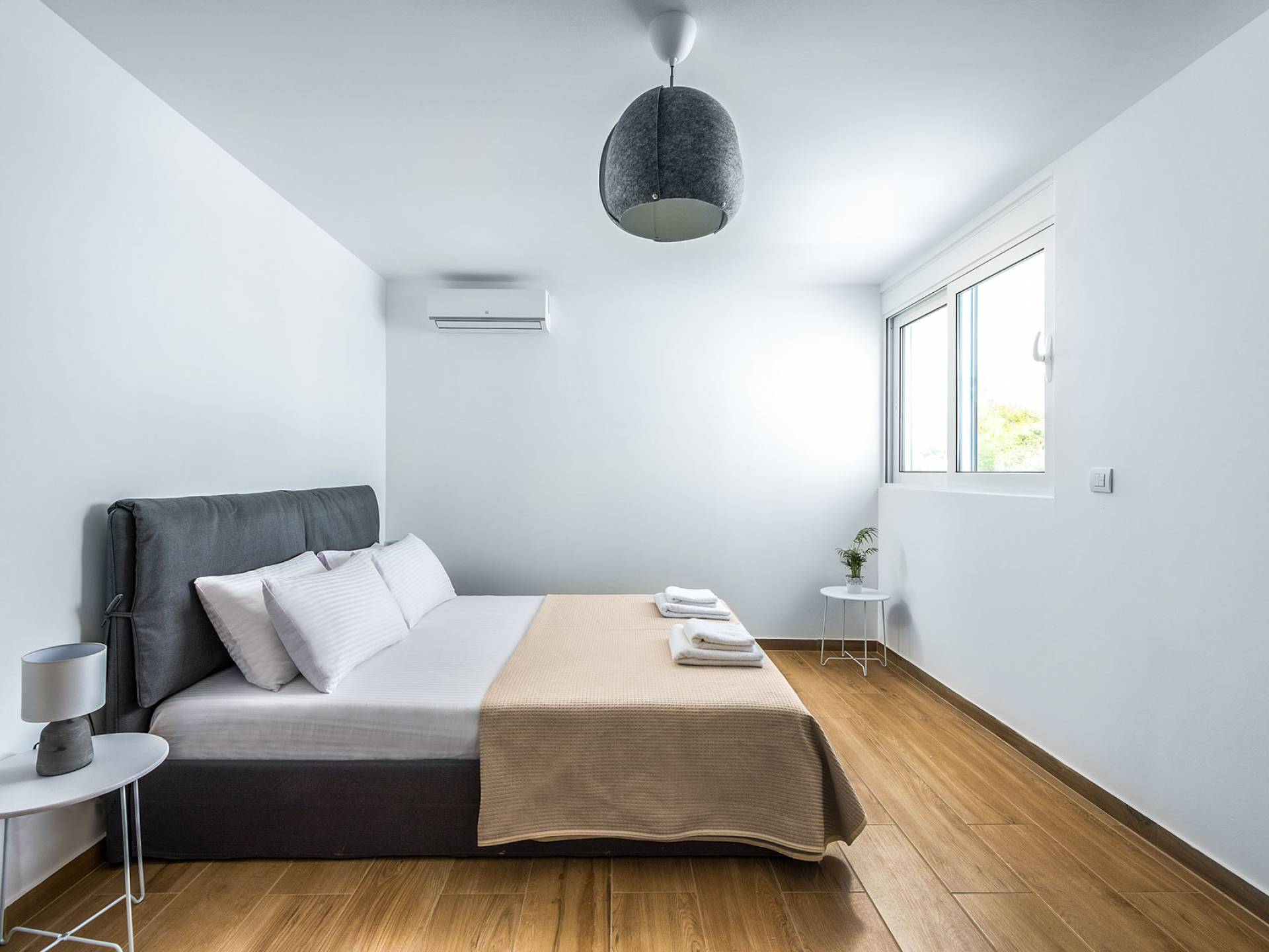 The other property is 250 qm2 with 5 bedrooms with double beds, 3 bathrooms and 1 wc, a separate spacious fully equipped kitchen, and an open plan living room and dining area. Each of the rooms throughout the villa leads to its’ own balcony with a garden view, pool view, and an amazing sea view. The garden is fenced all the way around the property and has a private entrance to the parking space. The entire villa is fully air-conditioned.