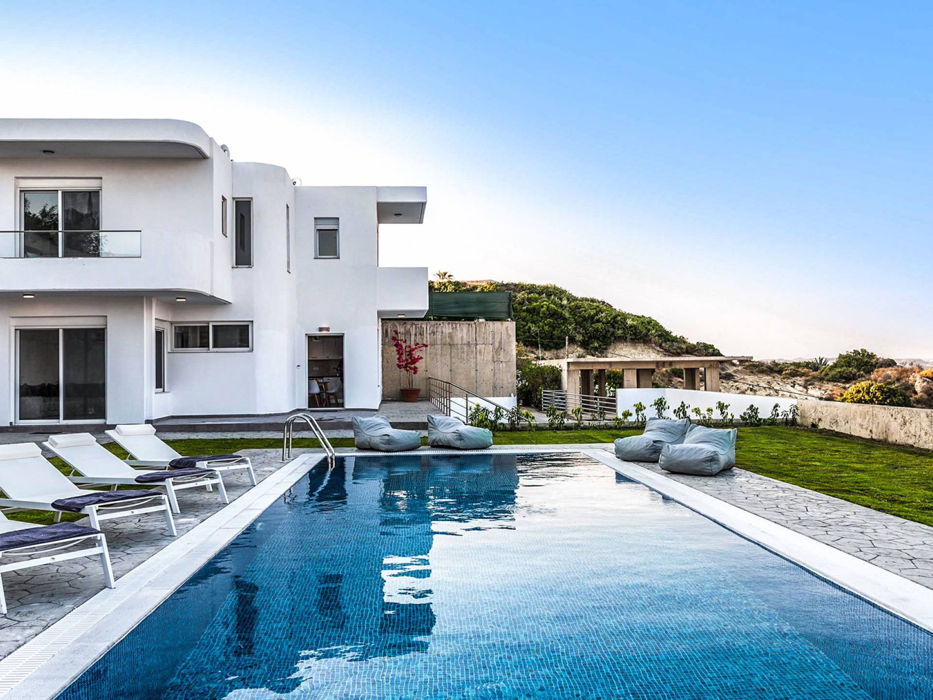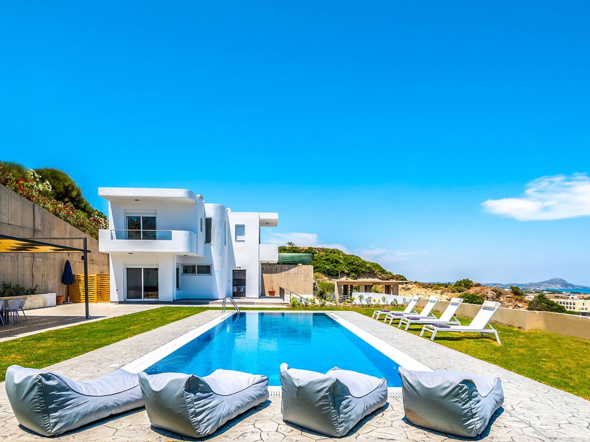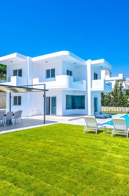 Hill & Sea View Villas Rhodes are two luxury villa rentals with 9 bedrooms and 2 private pools. Hill Sea View Villas consists of 2 villas, one with 4 bedrooms and one with 5 bedrooms each with a private pool.