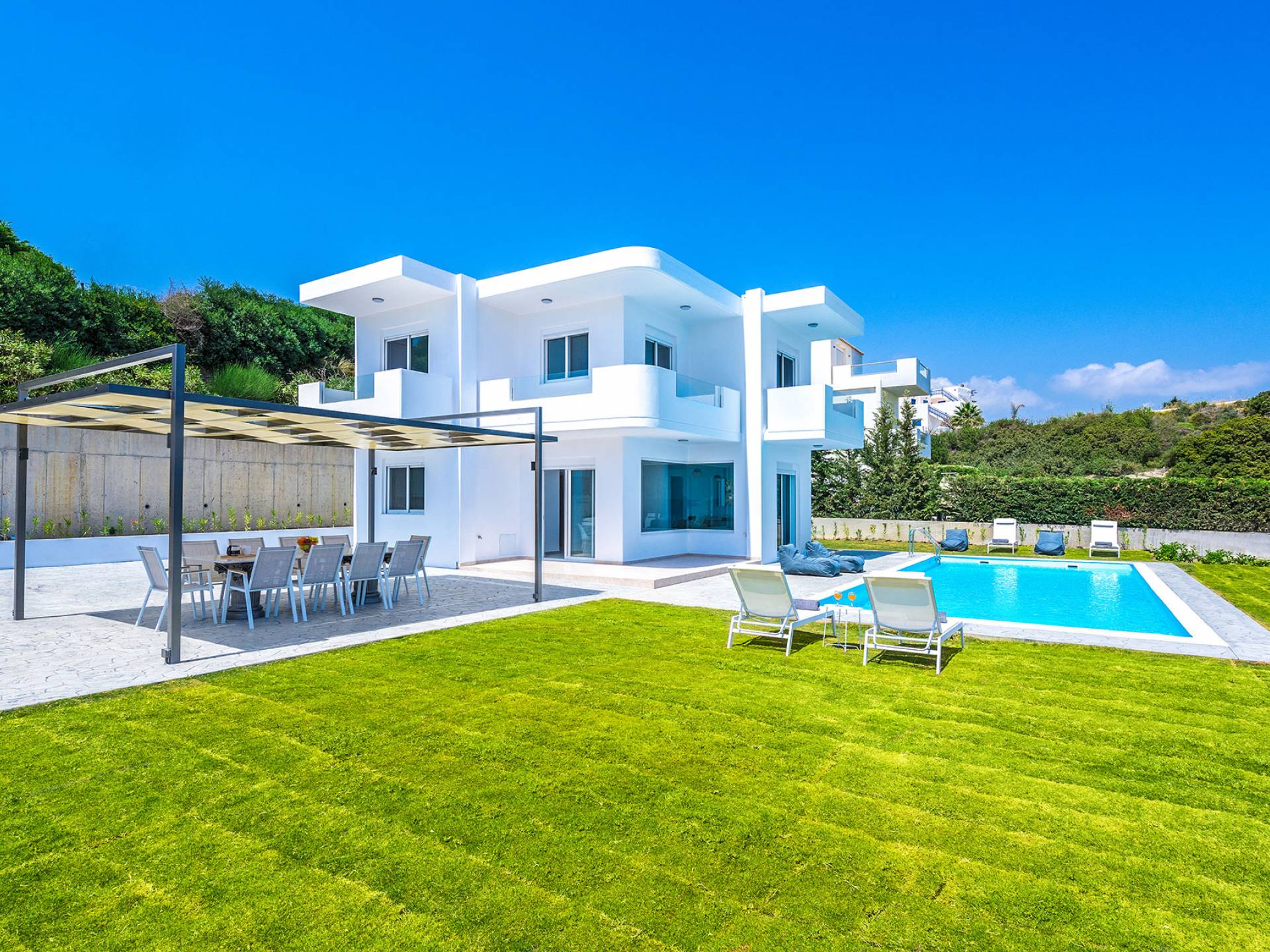 The Hill Sea View Villas have the perfect location for your dream holiday on the sunny island of Rhodes. These luxurious villas come equipped with everything you need to enjoy a relaxing holiday on this picturesque Greek island. Both villas have an outdoor area that offers a BBQ installation with sitting & dining areas, a sun deck and all outdoor amenities, including a shower for refreshing after your pool swim. while of course utterly secluded from the outside. Hill Sea View Villas are the perfect getaway for families or groups of friends looking to enjoy a relaxing vacation in style. Discover the true meaning of vacation while staying at the beautiful Hill Sea View Villa.