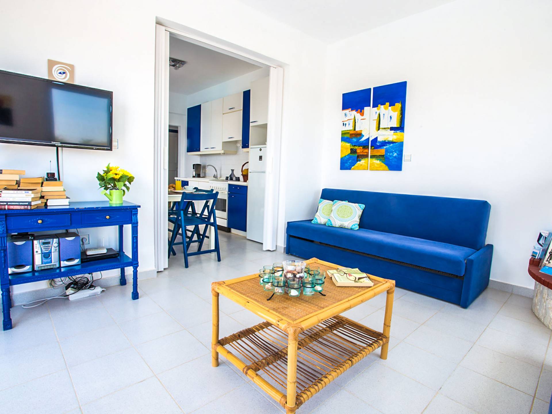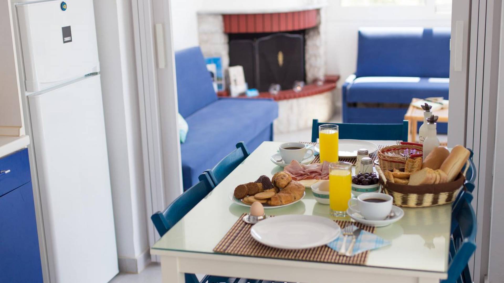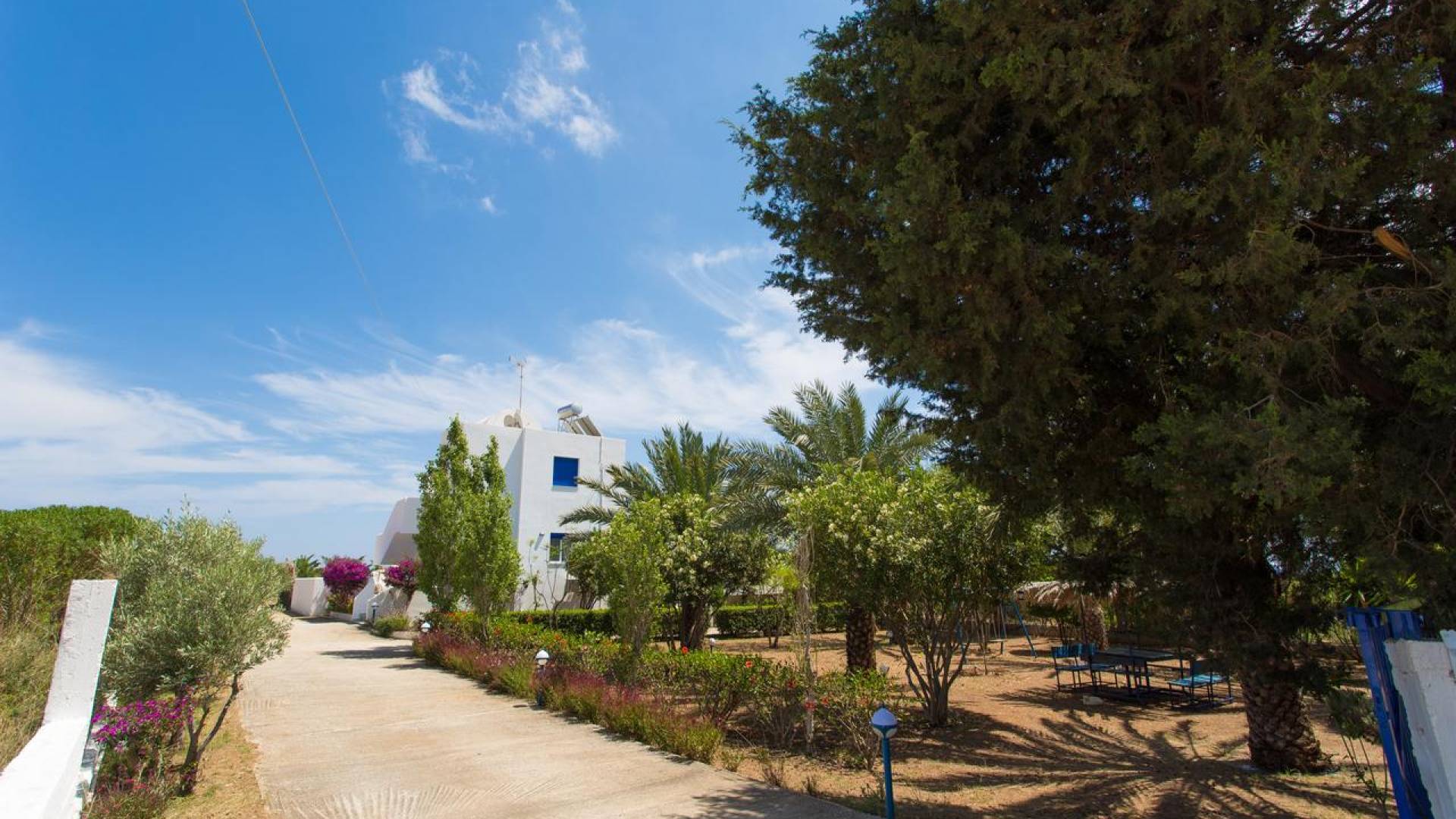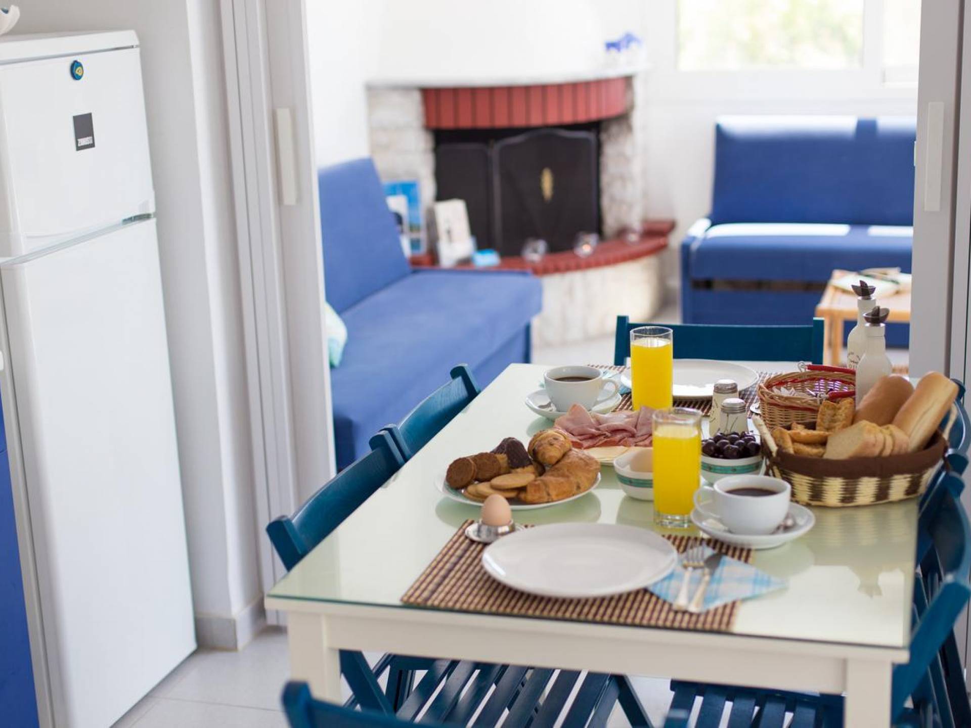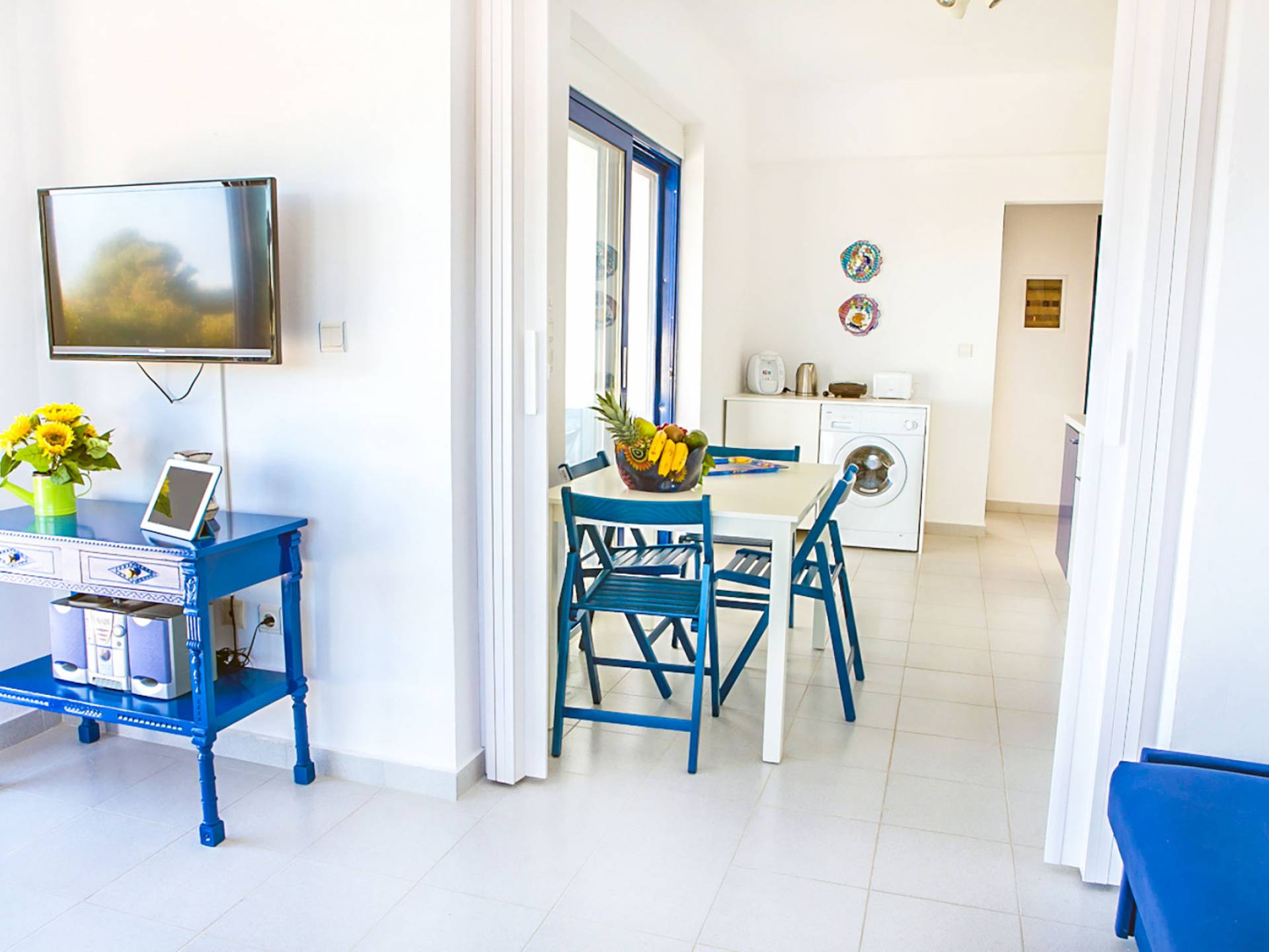 Directly in front of the kitchen lies a large covered patio with a pergola. There awaits a comfortable outdoor lounge area with two traditionally built seating benches and a dining room for eight people. Next to it, the amazing swimming pool area where you can spend most of the day facing the amazing beach and the crystal clear waters of the sea. Commode deck chairs and umbrellas are in the pool and help you to enjoy the warmth of the Sun of Rhodes.