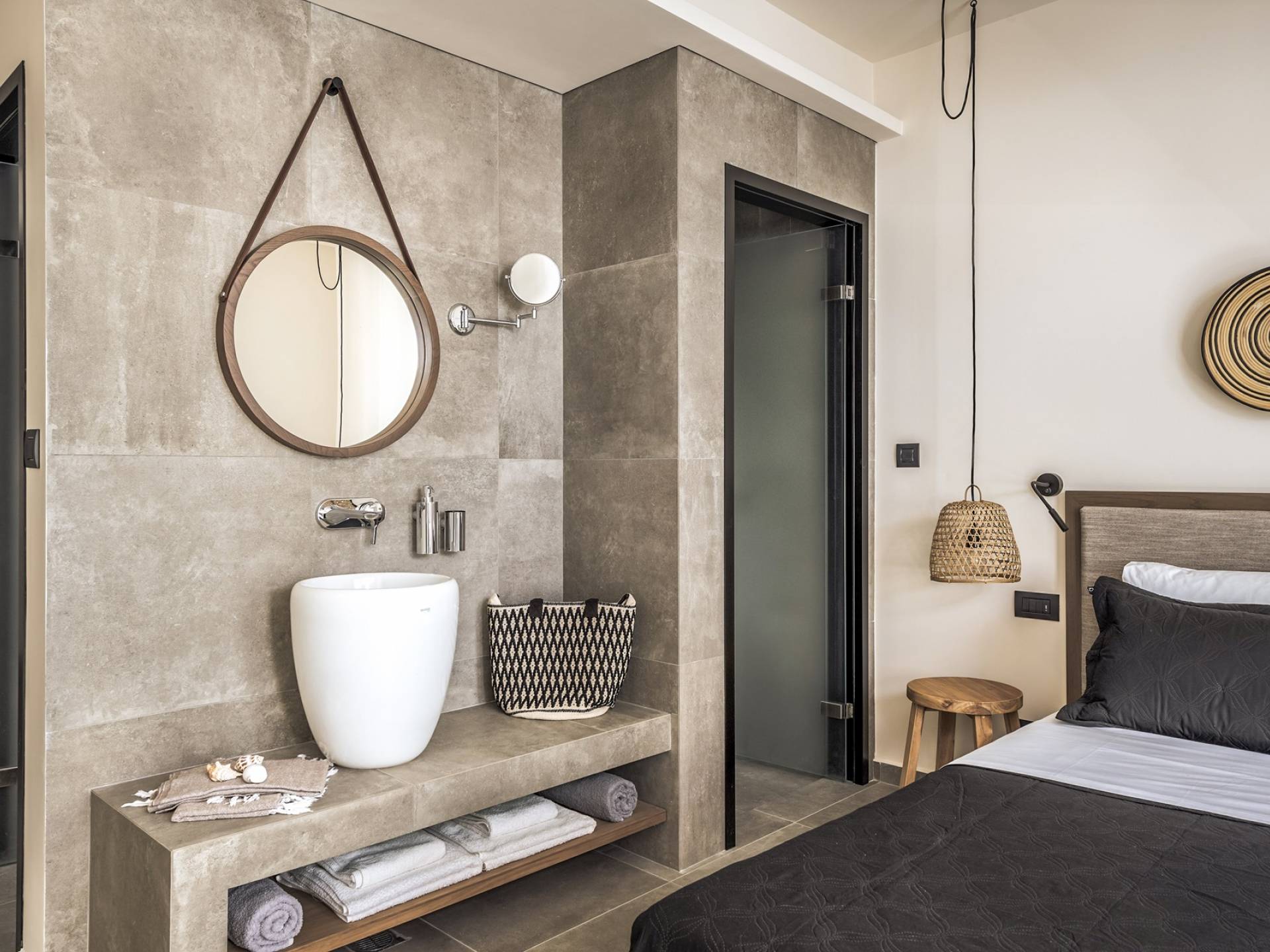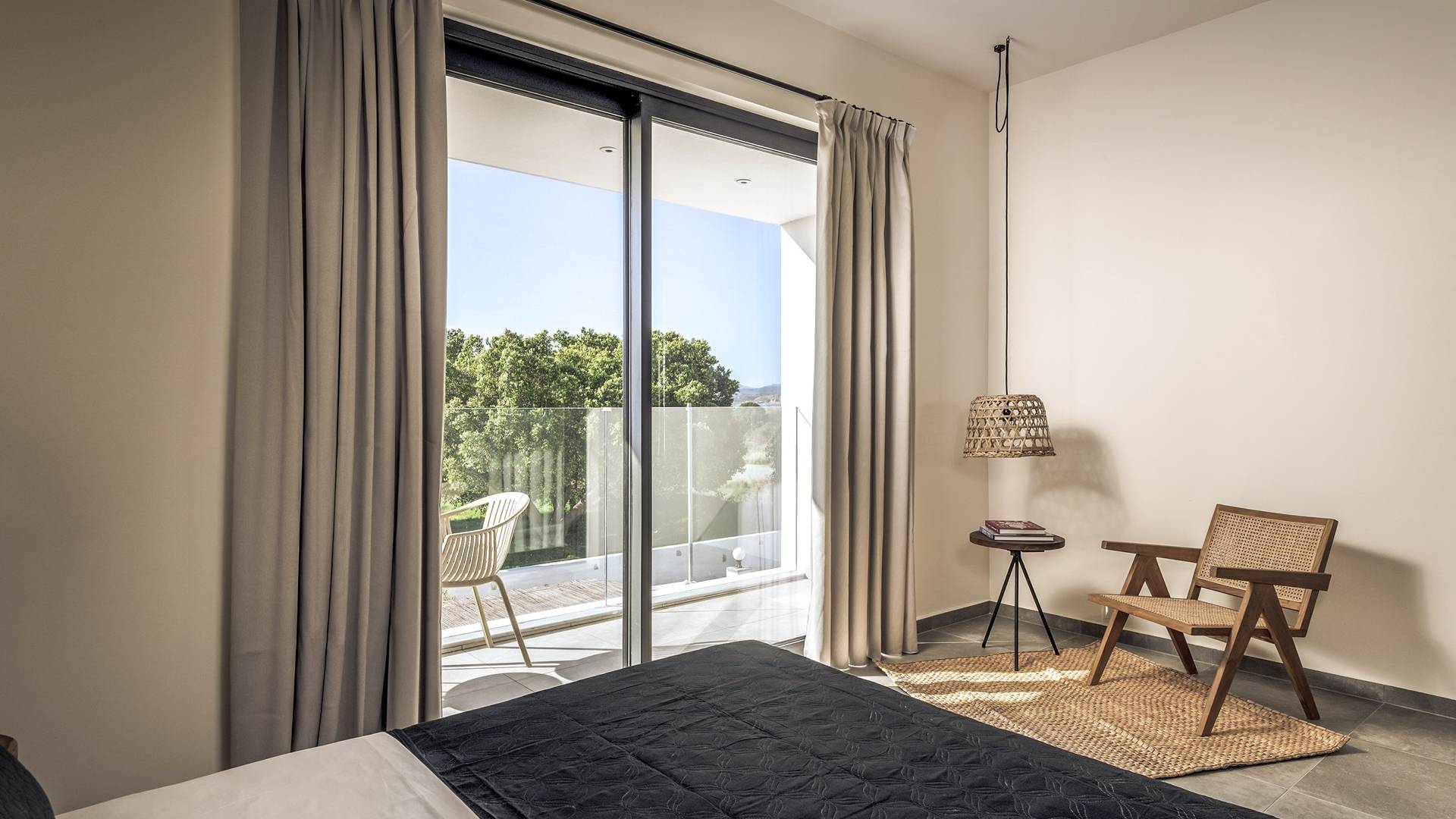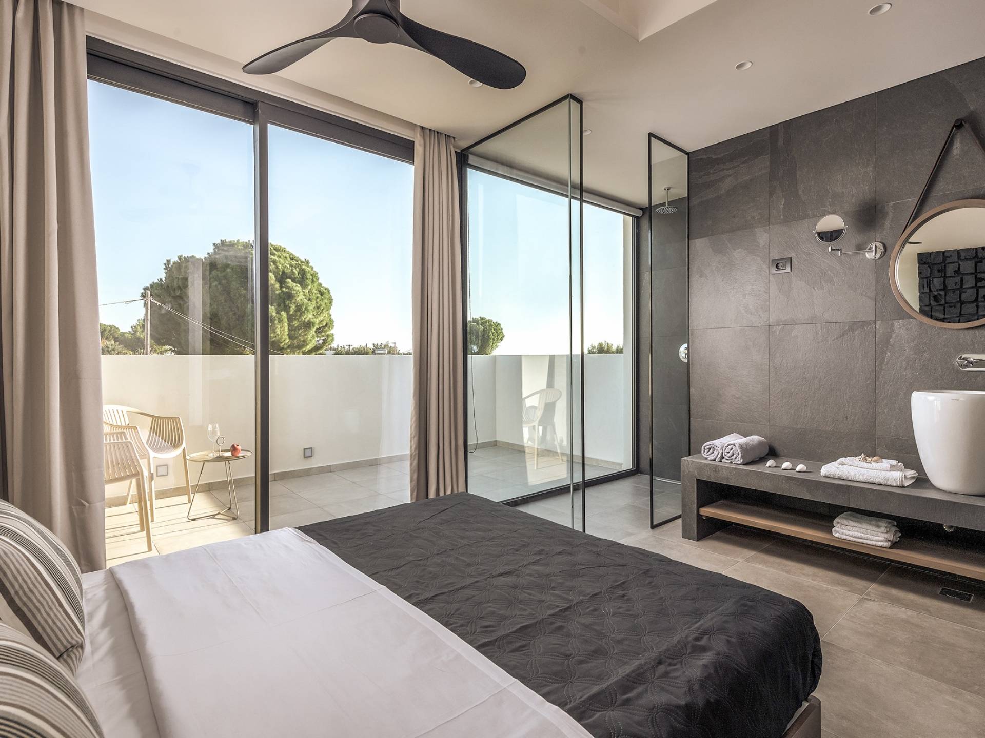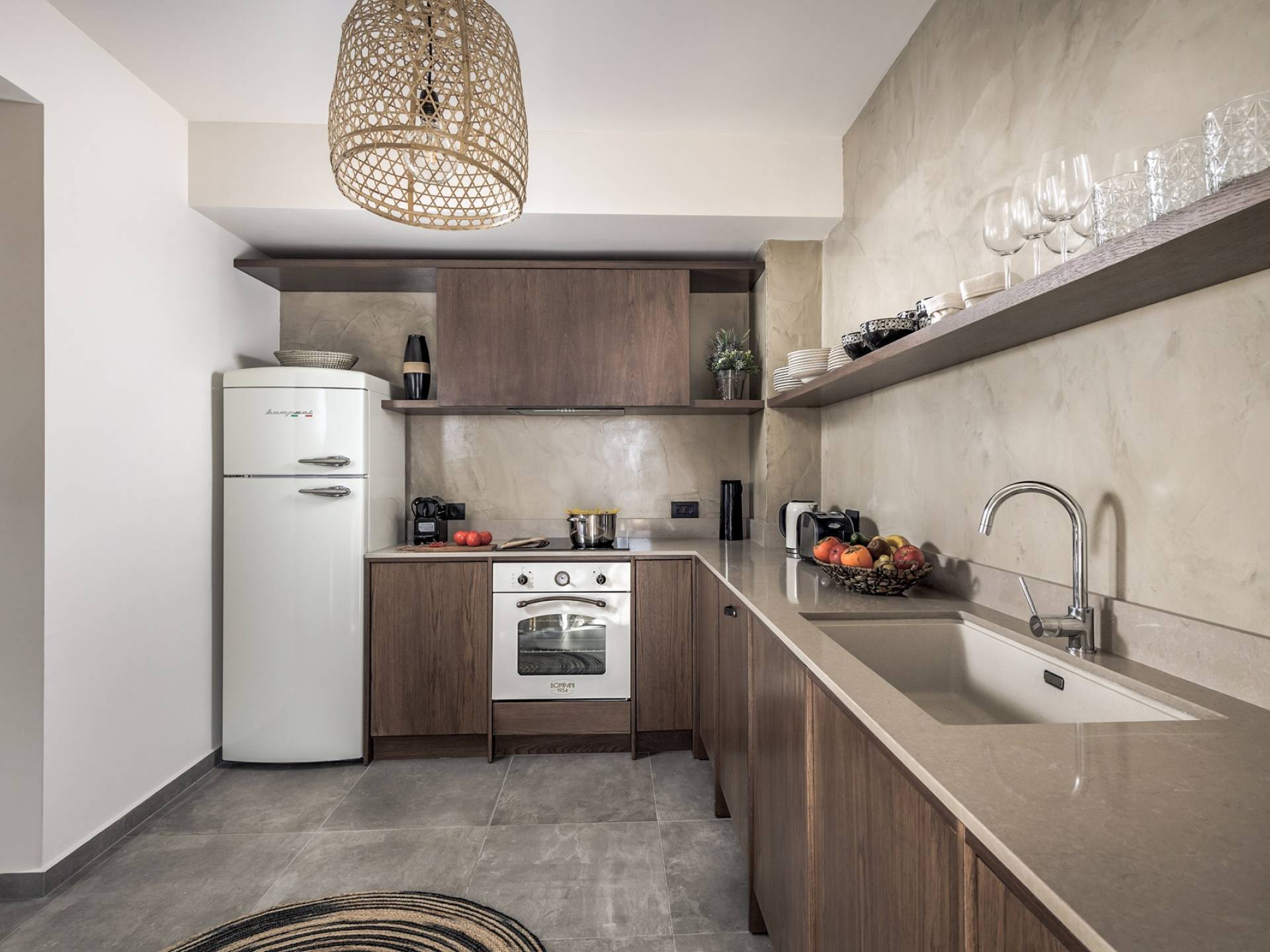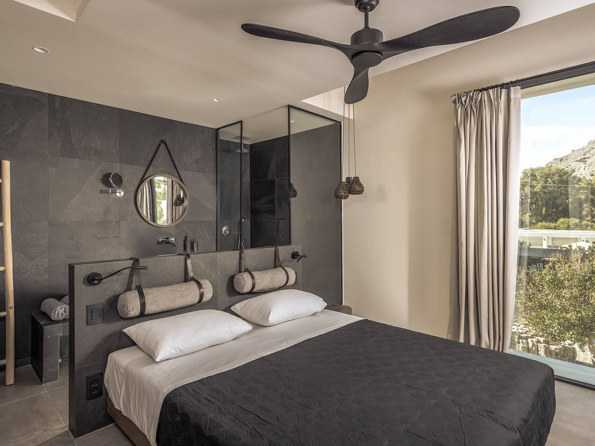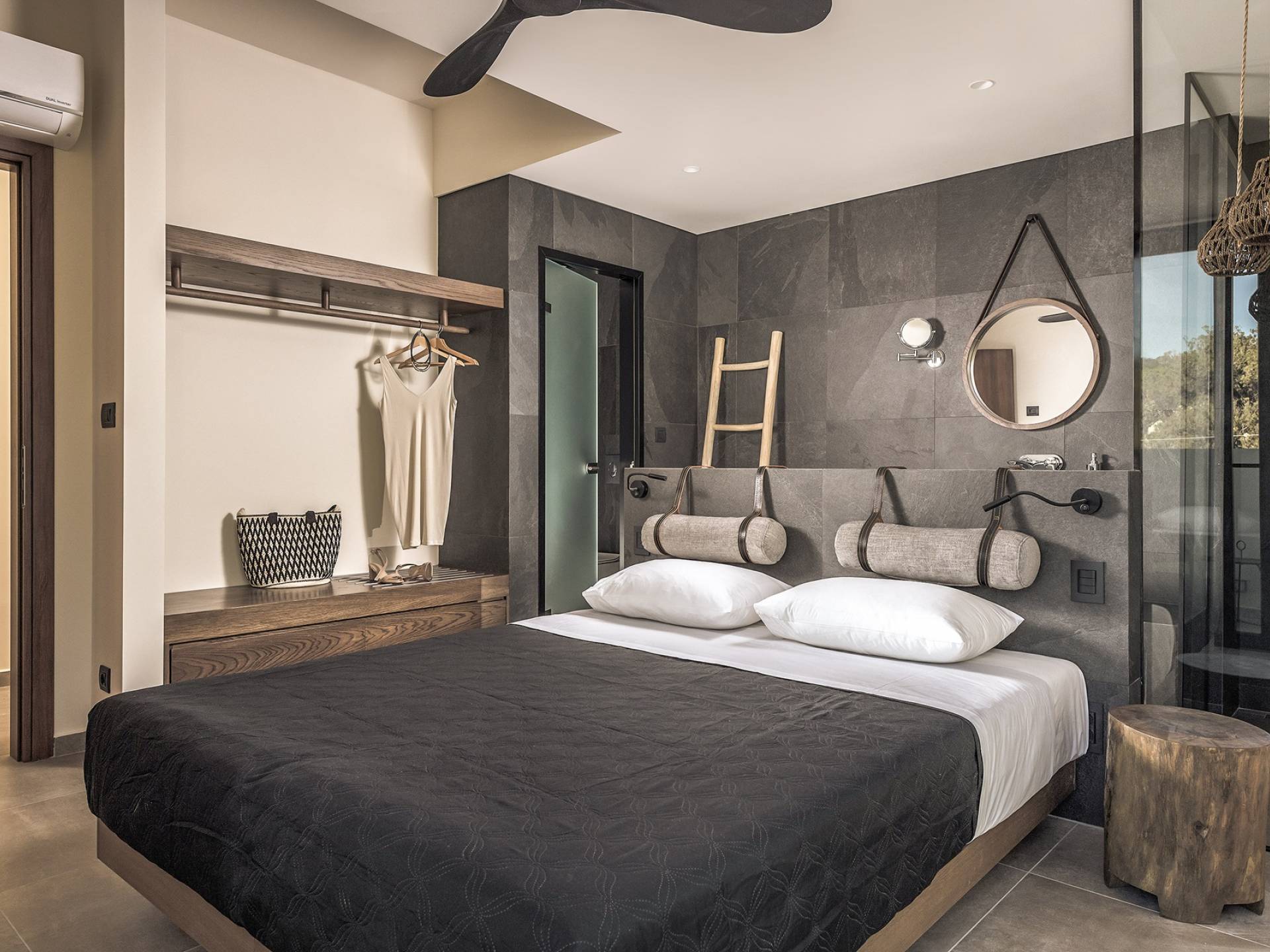 Both Villas feature 3 wonderful bedrooms with ensuite bathrooms and beautiful balconies, some of them offer a sea view. Four of the bedrooms have double beds and the other two have 2 single beds, all of them are fully air-conditioned. The modern living room combines luxurious comforts with a clear sense of home. The care that was put to the design of the property was meant to create a welcoming ambiance with a warm modern décor. The classy kitchen is fully equipped with every amenity you may need and is complemented by the BBQ facility outside, for you to indulge in culinary. Guests can enjoy free Wi-Fi access throughout the property. Outdoors, you will find the two amazing private swimming pools along with their stylish sunbeds. There, you can enjoy the summer sun; without a doubt, you’ll get the island feeling. The surrounding of the tastefully designed pool is quite pleasant, with a sitting area allowing you to enjoy any meal with your loved ones.