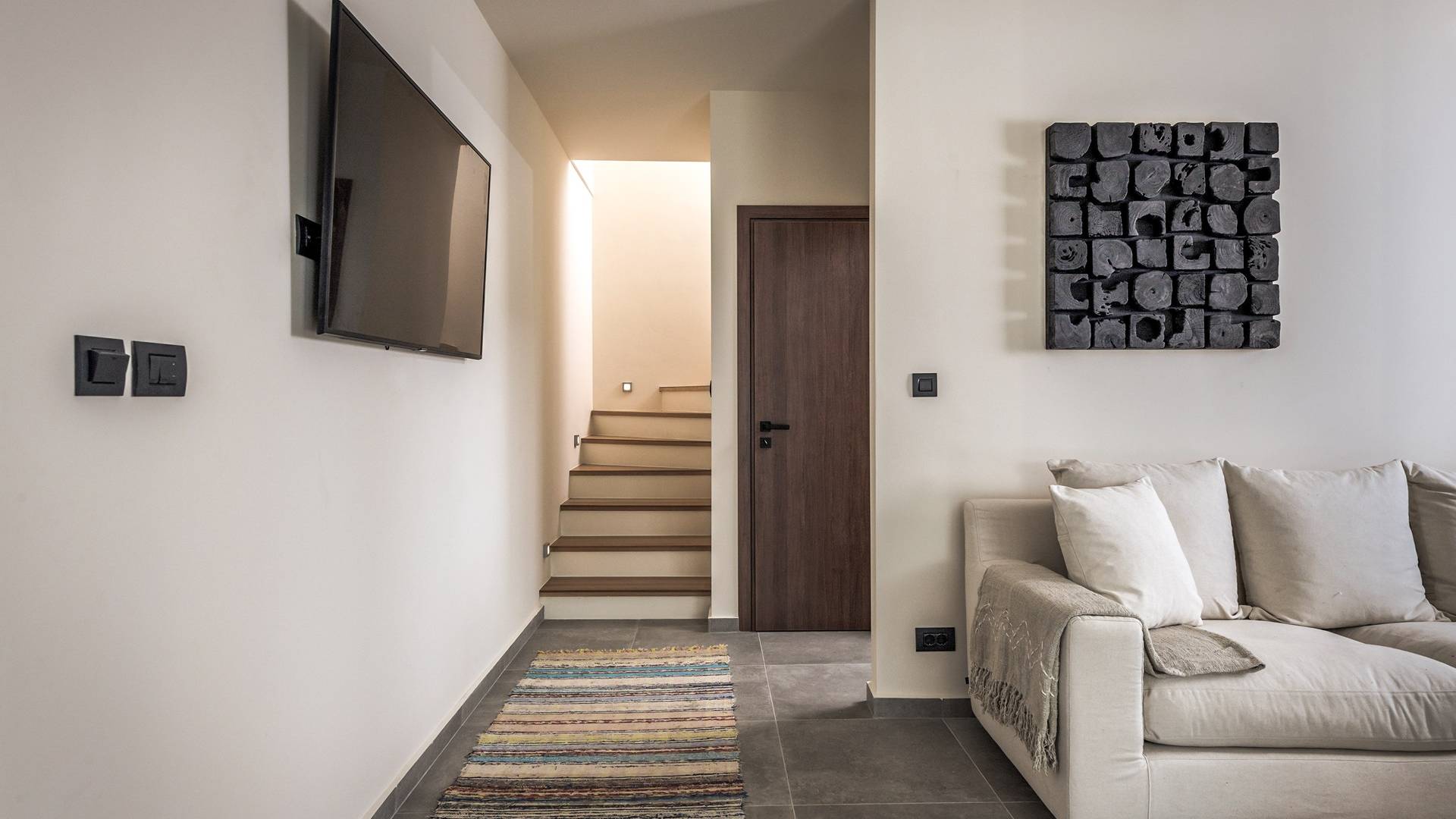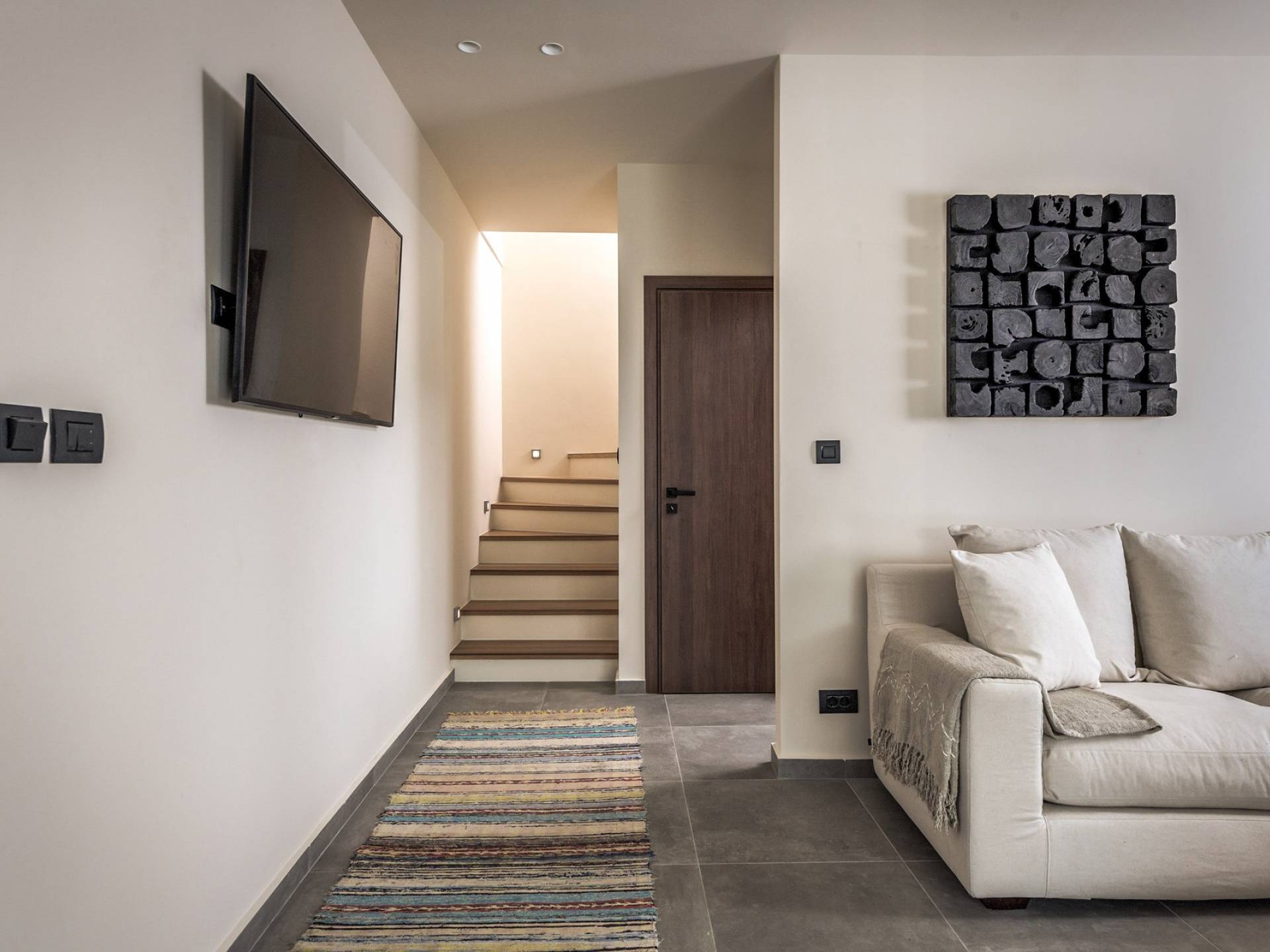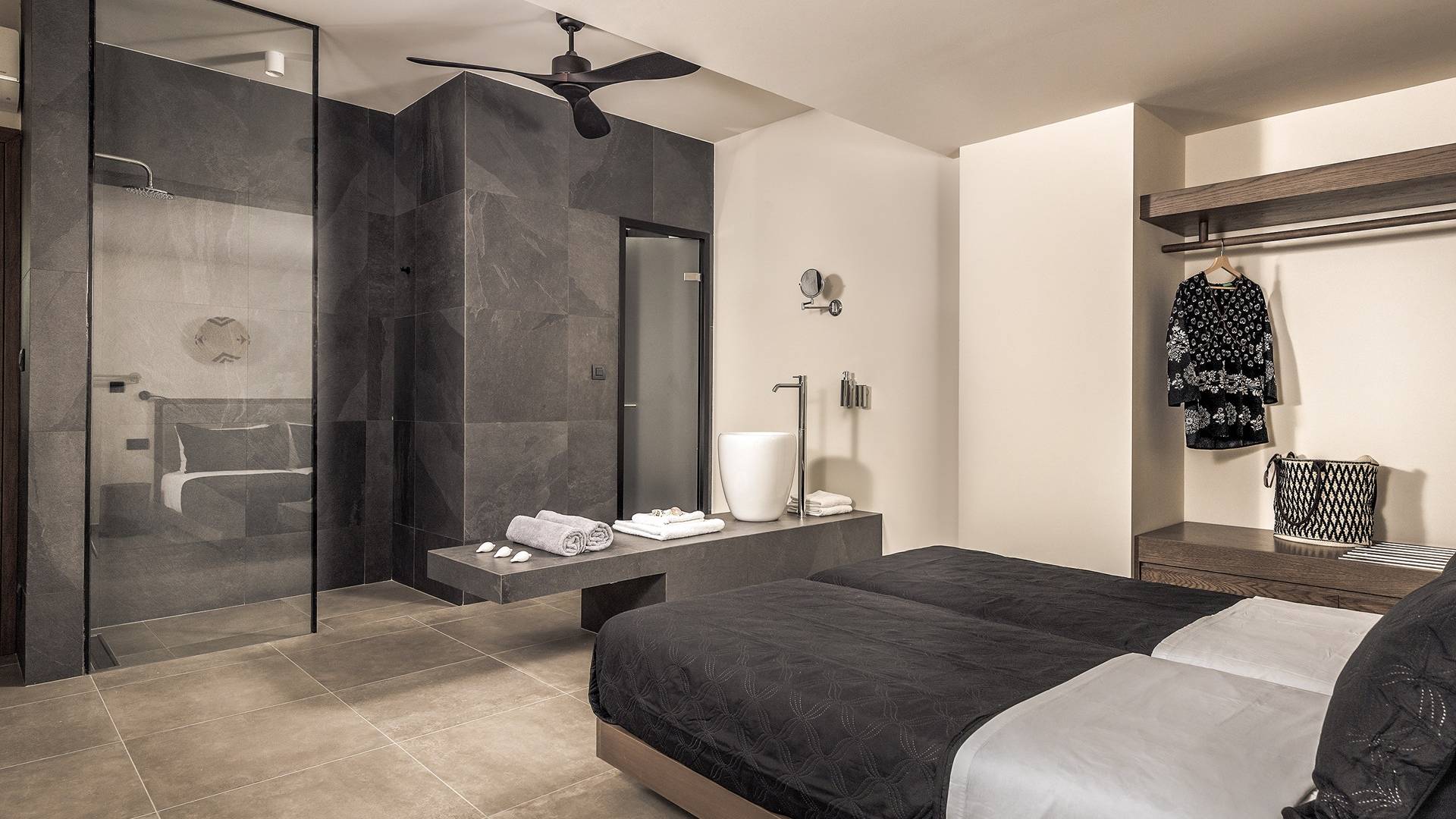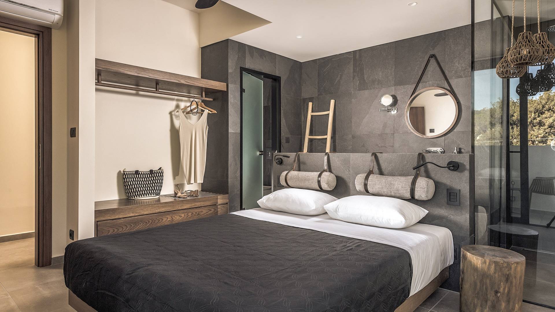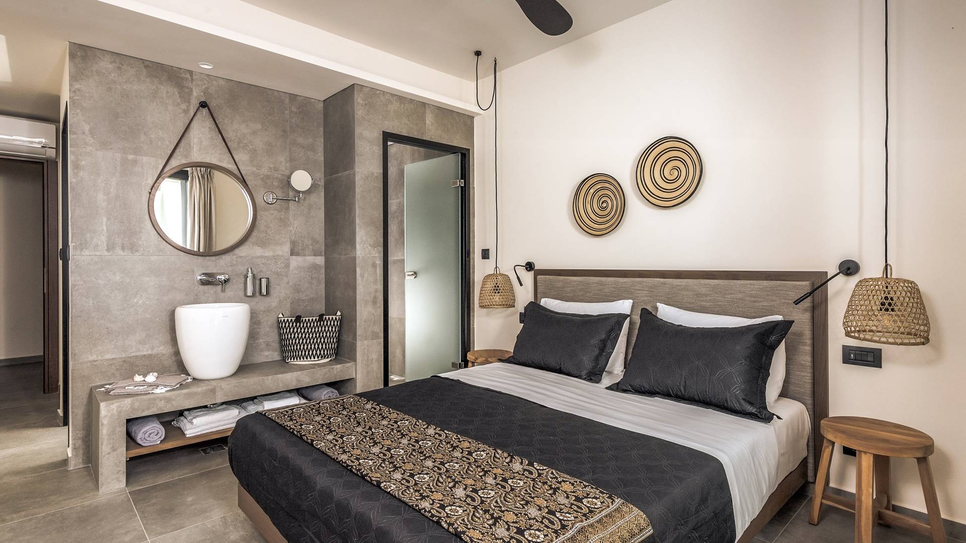 Both Villas feature 3 wonderful bedrooms with ensuite bathrooms and beautiful balconies, some of them offer a sea view. Four of the bedrooms have double beds and the other two have 2 single beds, all of them are fully air-conditioned. The modern living room combines luxurious comforts with a clear sense of home. The care that was put to the design of the property was meant to create a welcoming ambiance with a warm modern décor. The classy kitchen is fully equipped with every amenity you may need and is complemented by the BBQ facility outside, for you to indulge in culinary. Guests can enjoy free Wi-Fi access throughout the property. Outdoors, you will find the two amazing private swimming pools along with their stylish sunbeds. There, you can enjoy the summer sun; without a doubt, you’ll get the island feeling. The surrounding of the tastefully designed pool is quite pleasant, with a sitting area allowing you to enjoy any meal with your loved ones.