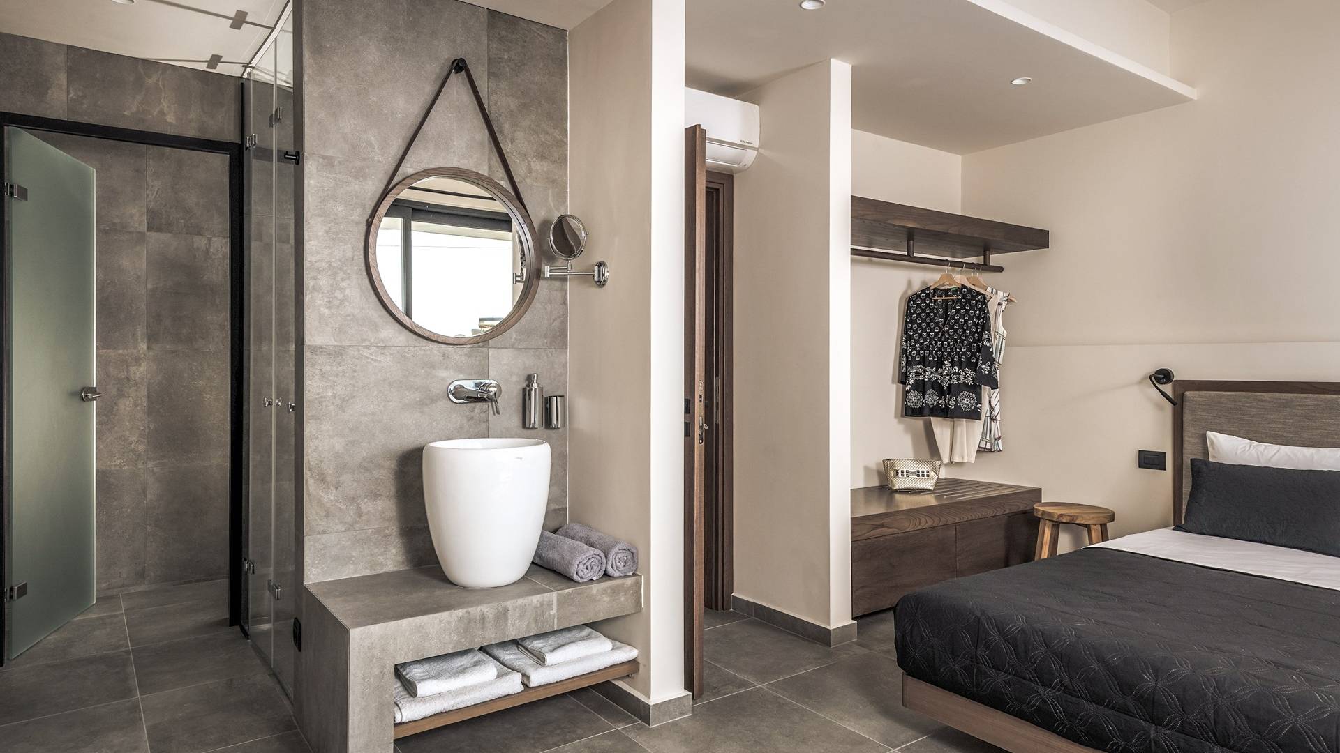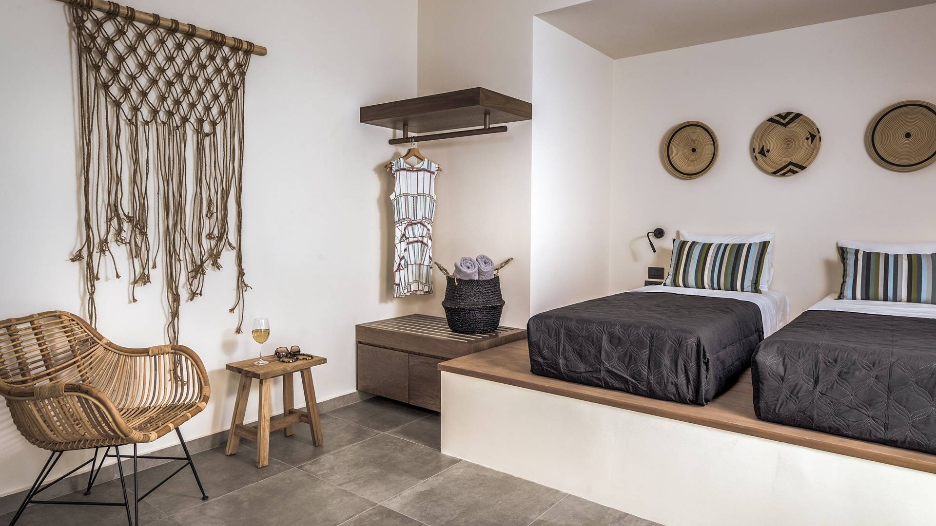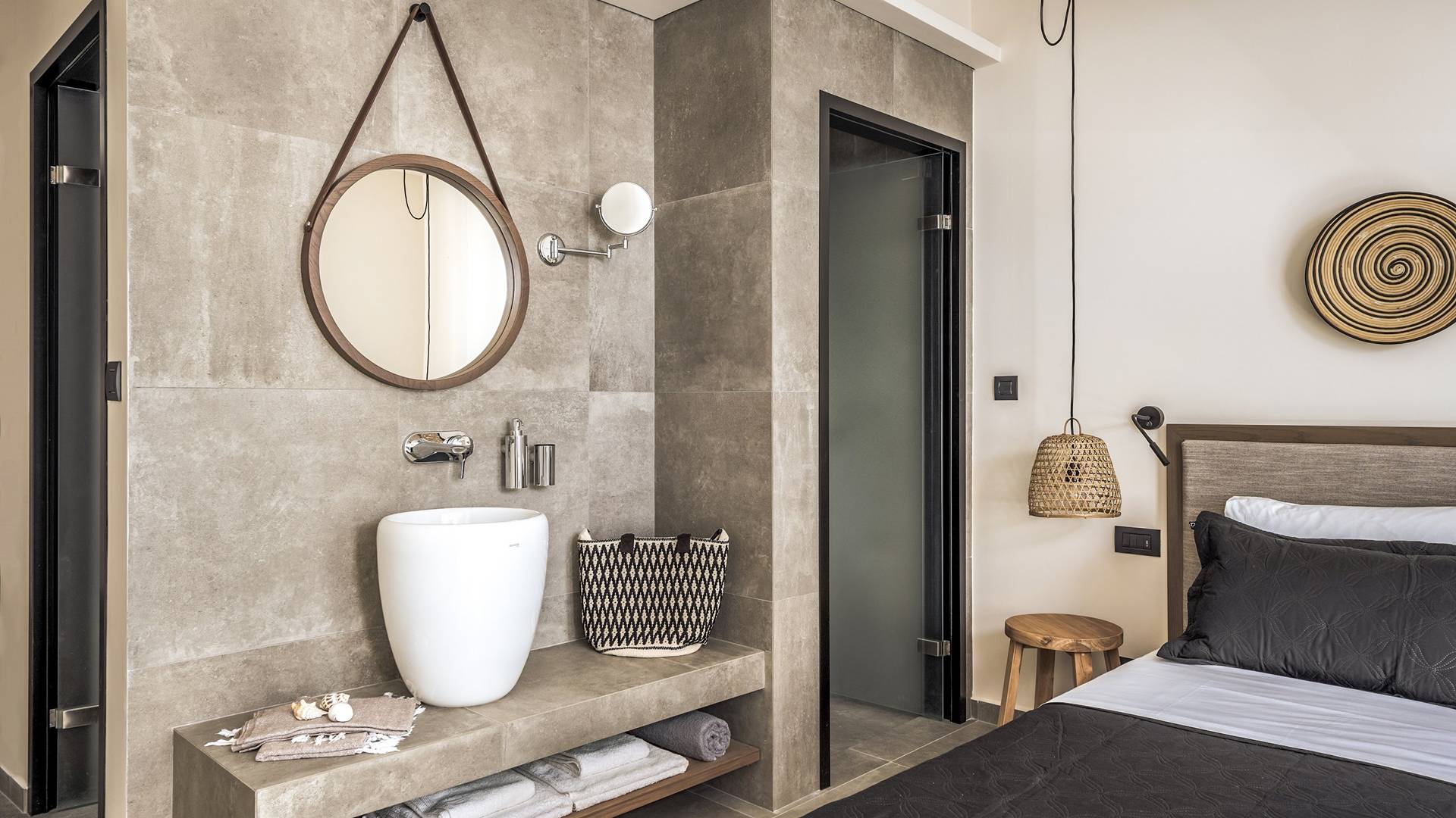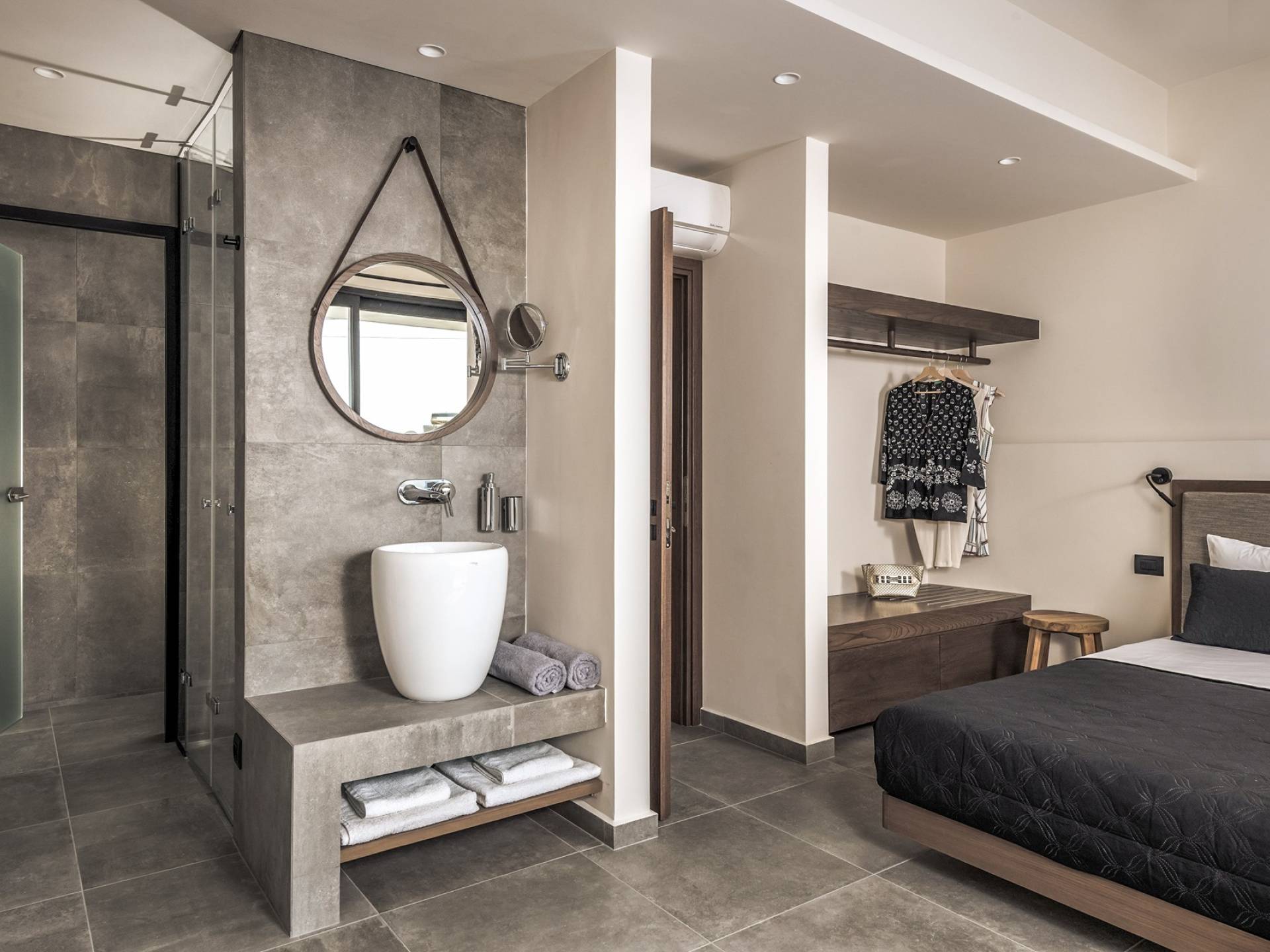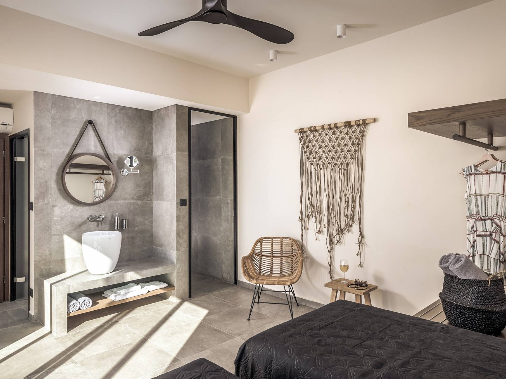 Both Villas feature 3 wonderful bedrooms with ensuite bathrooms and beautiful balconies, some of them offer a sea view. Four of the bedrooms have double beds and the other two have 2 single beds, all of them are fully air-conditioned. The modern living room combines luxurious comforts with a clear sense of home. The care that was put to the design of the property was meant to create a welcoming ambiance with a warm modern décor. The classy kitchen is fully equipped with every amenity you may need and is complemented by the BBQ facility outside, for you to indulge in culinary. Guests can enjoy free Wi-Fi access throughout the property. Outdoors, you will find the two amazing private swimming pools along with their stylish sunbeds. There, you can enjoy the summer sun; without a doubt, you’ll get the island feeling. The surrounding of the tastefully designed pool is quite pleasant, with a sitting area allowing you to enjoy any meal with your loved ones.