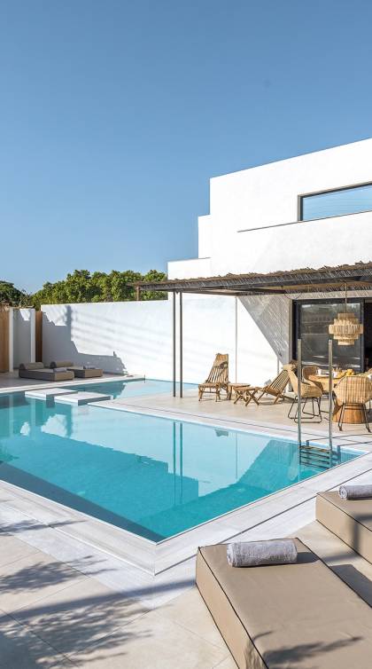 Bianco Villas are located in Peukos village, within a distance of a 2-minute walk from the idyllic Pefki beach. Each villa offers an amazing private swimming pool along with a tasteful decorating approach. Also, each one hosts up to 6 guests and presents you with a truly sophisticated option for a unique holiday experience and a memorable stay.