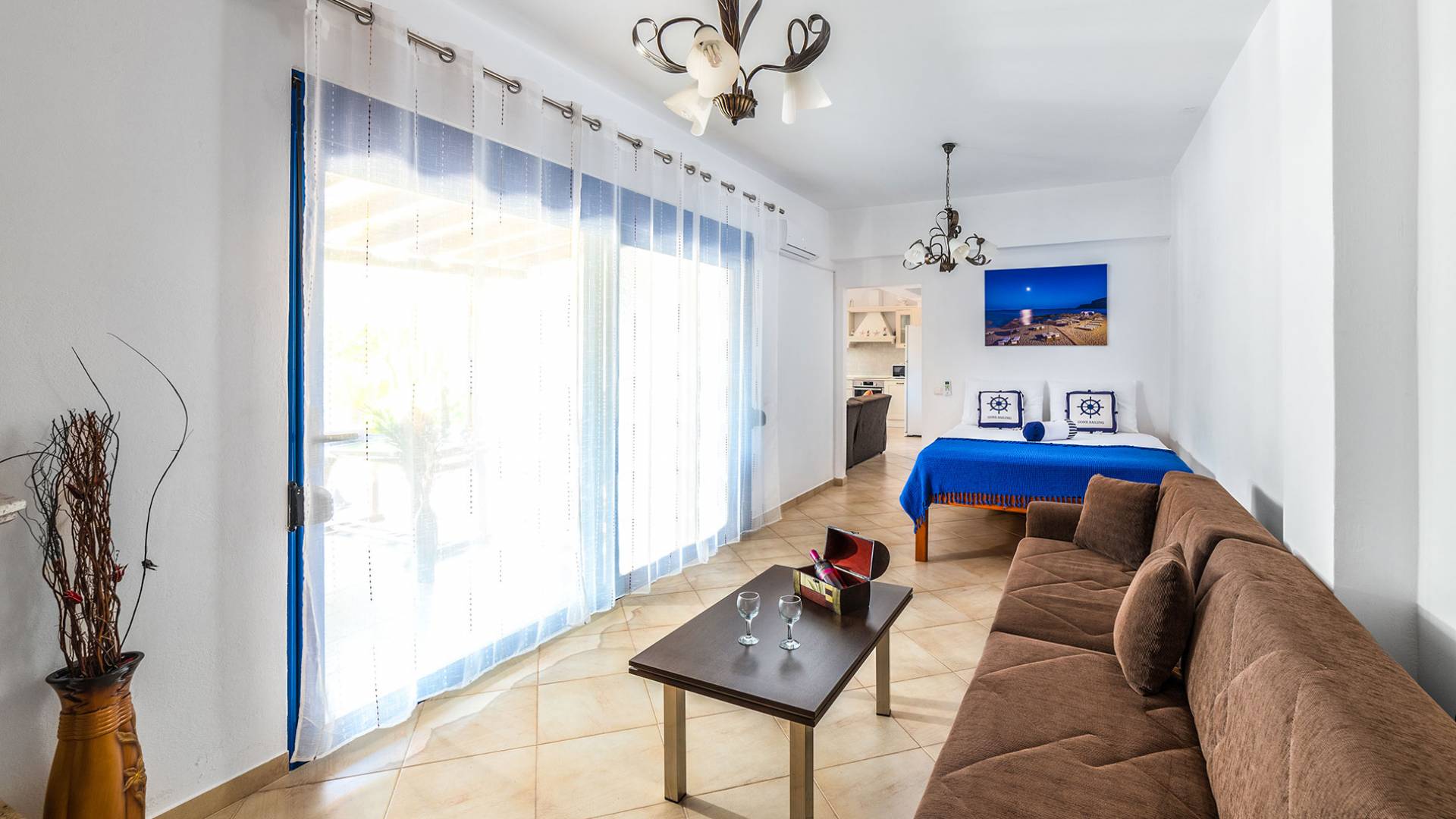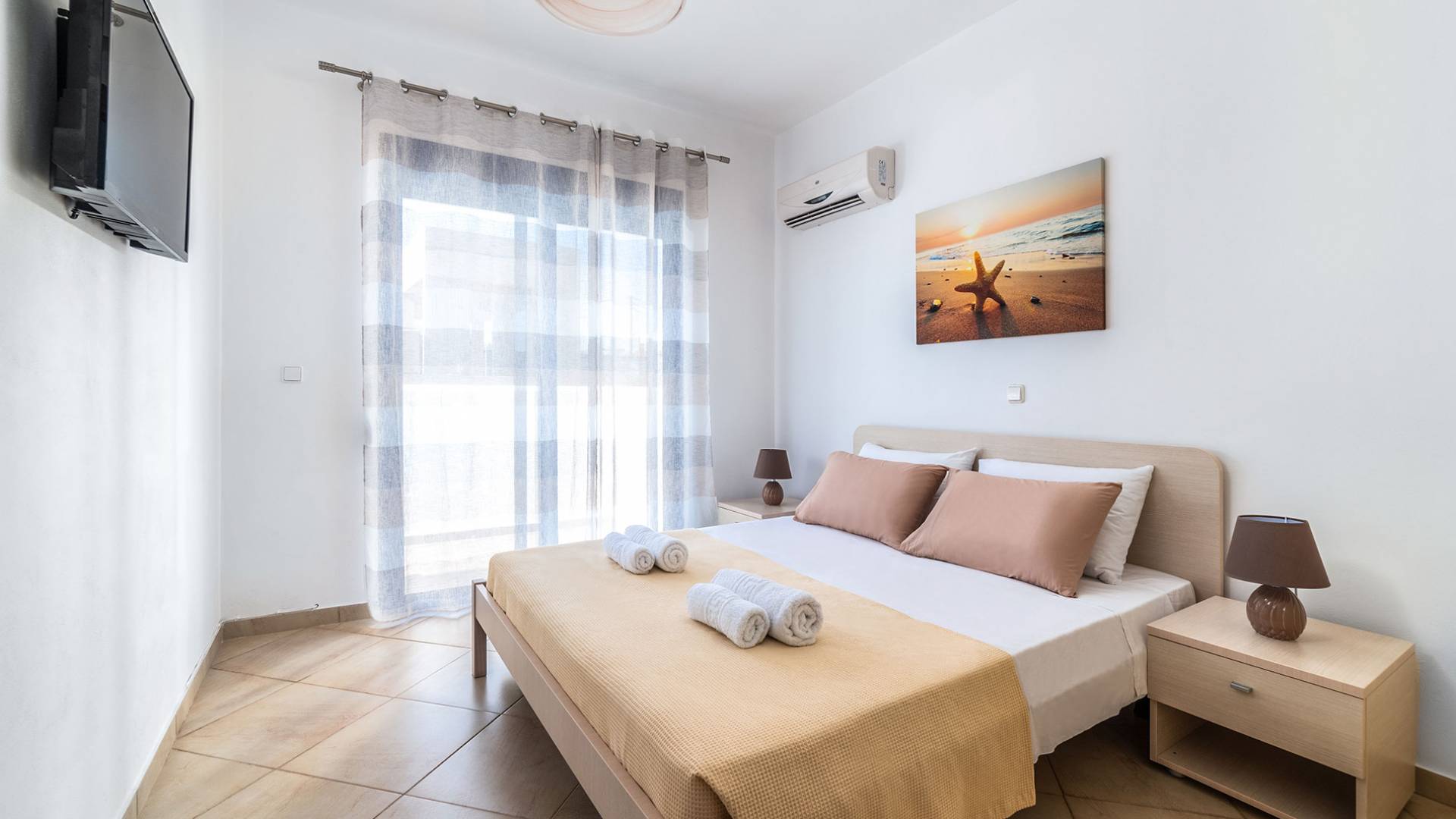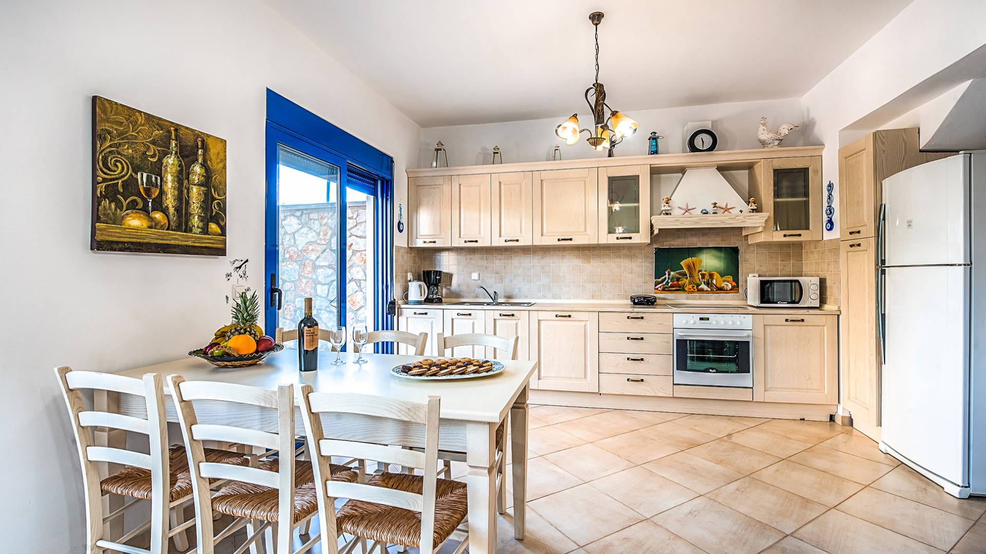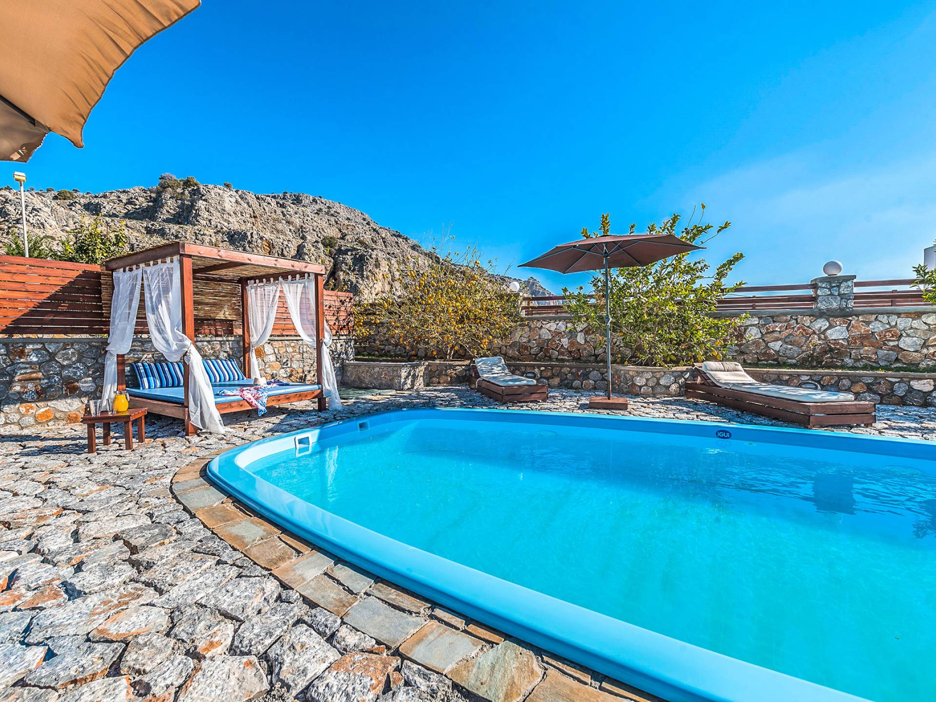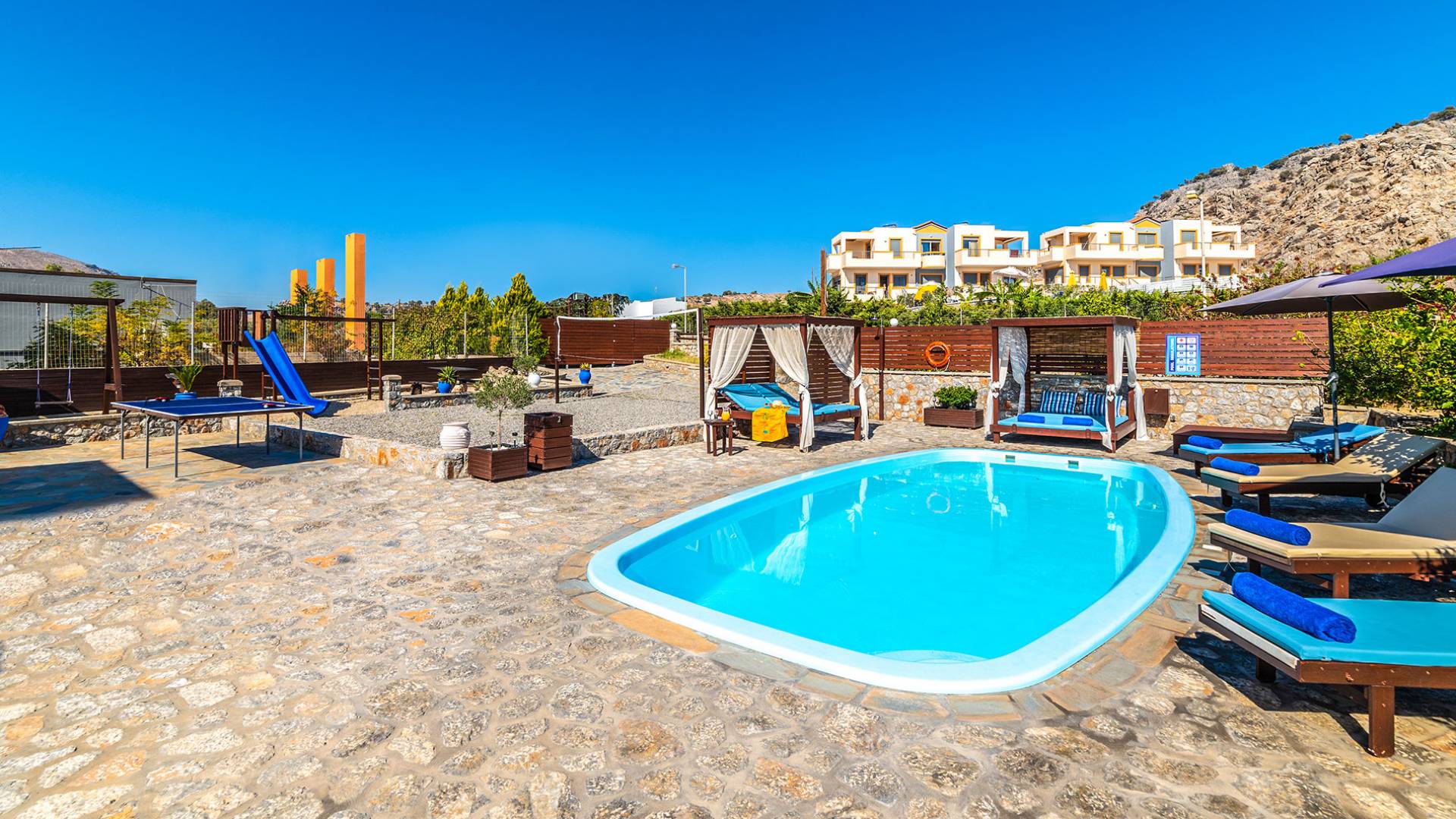 Villa Maripaul Rhodes is a luxury villa rental with 4 bedrooms and a private pool. Maripaul Villa is an ideal property for families and groups of friends of up to 8 members, seeking a relaxing holiday near the sea. The villa has 1 master bedroom with its’ private sitting area and access to a balcony, 3 more bedrooms with large double beds, a flat-screen TV in every bedroom, a comfortable living room with flat-screen TV and satellite channels, a large dining area, and a fully equipped kitchen with stove, fridge, oven, microwave, dishwasher, washing machine, water boiler, coffee maker, toaster, etc. There are two bathrooms, one with a bathtub and one with a shower.