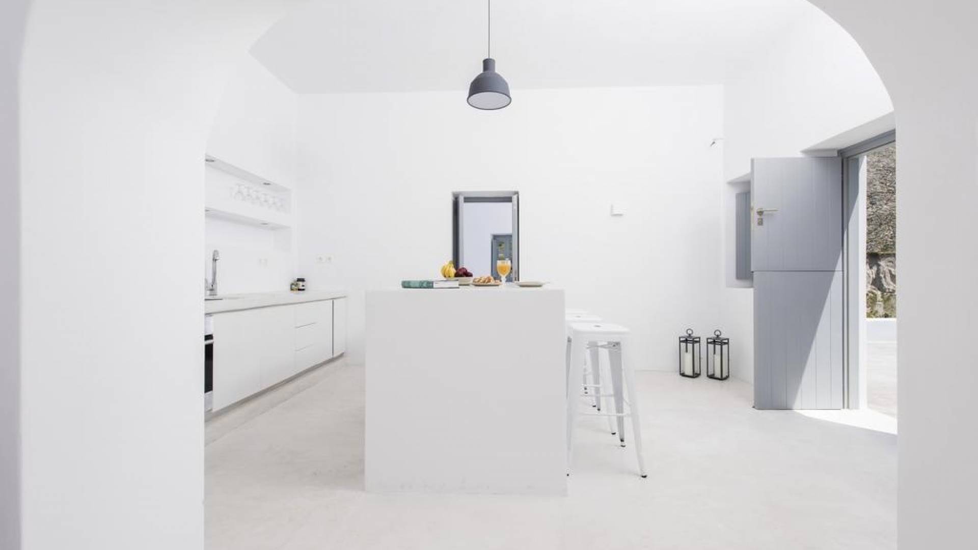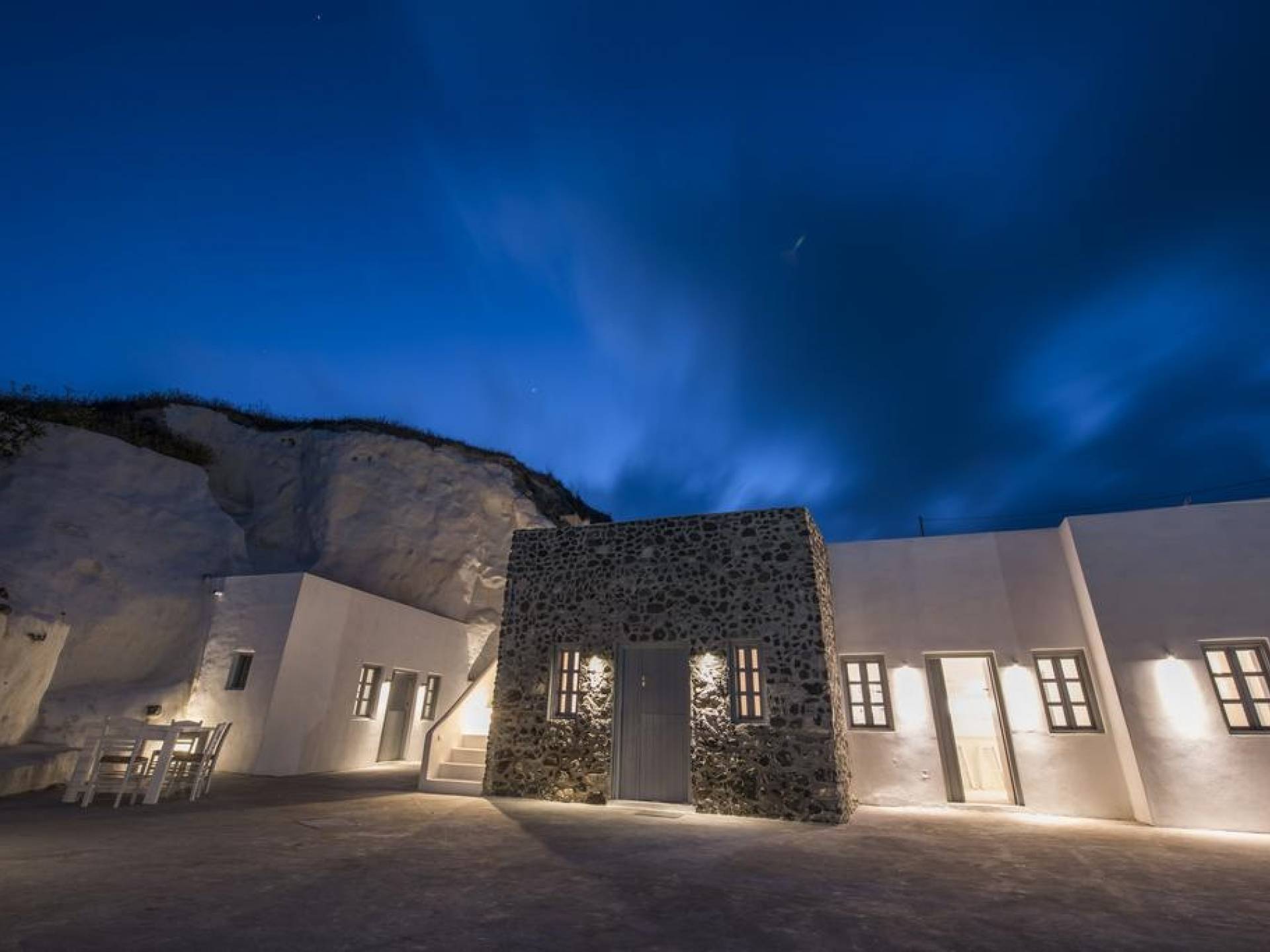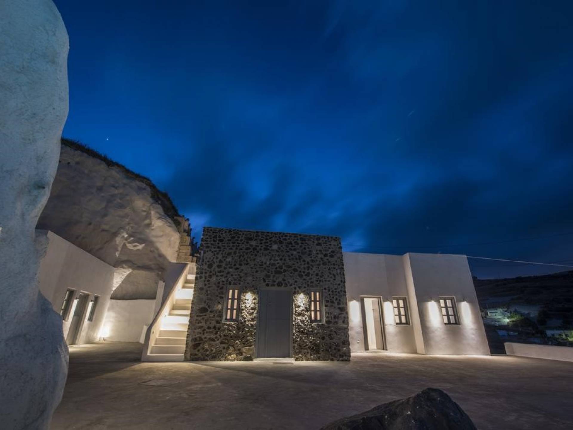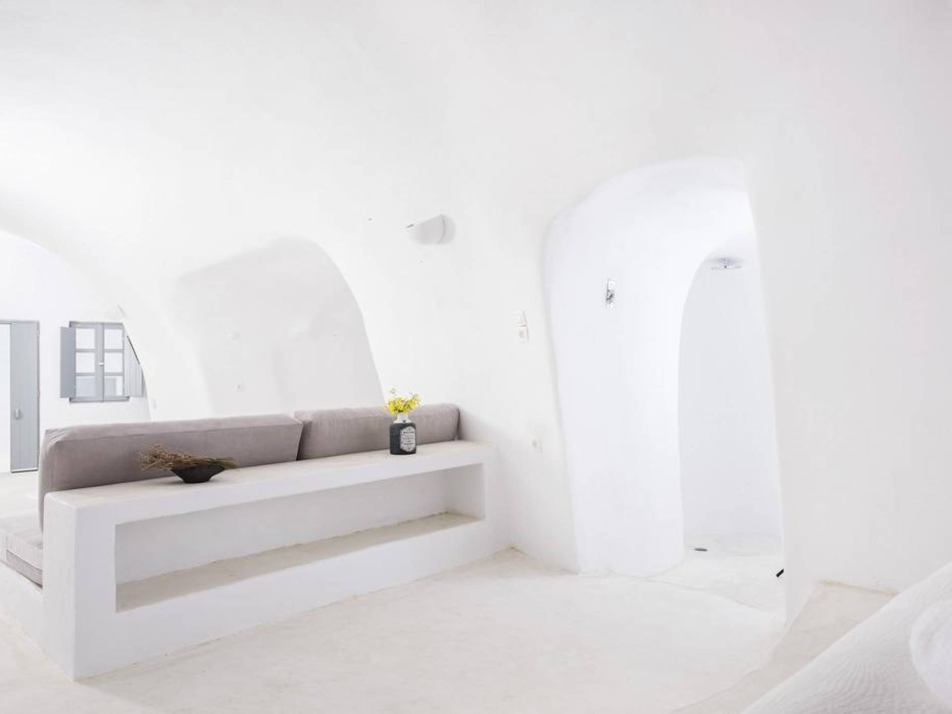 Dating from the early 20th century, the property was originally a small house of two rooms with a wine production and storage area attached. The cave, with its year-round constant temperatures, was used to store produce. Following a complete architectural redesign, the property today takes full advantage of Santorini’s unique land formations to create a contemporary space that preserves and enhances the island’s original architecture.