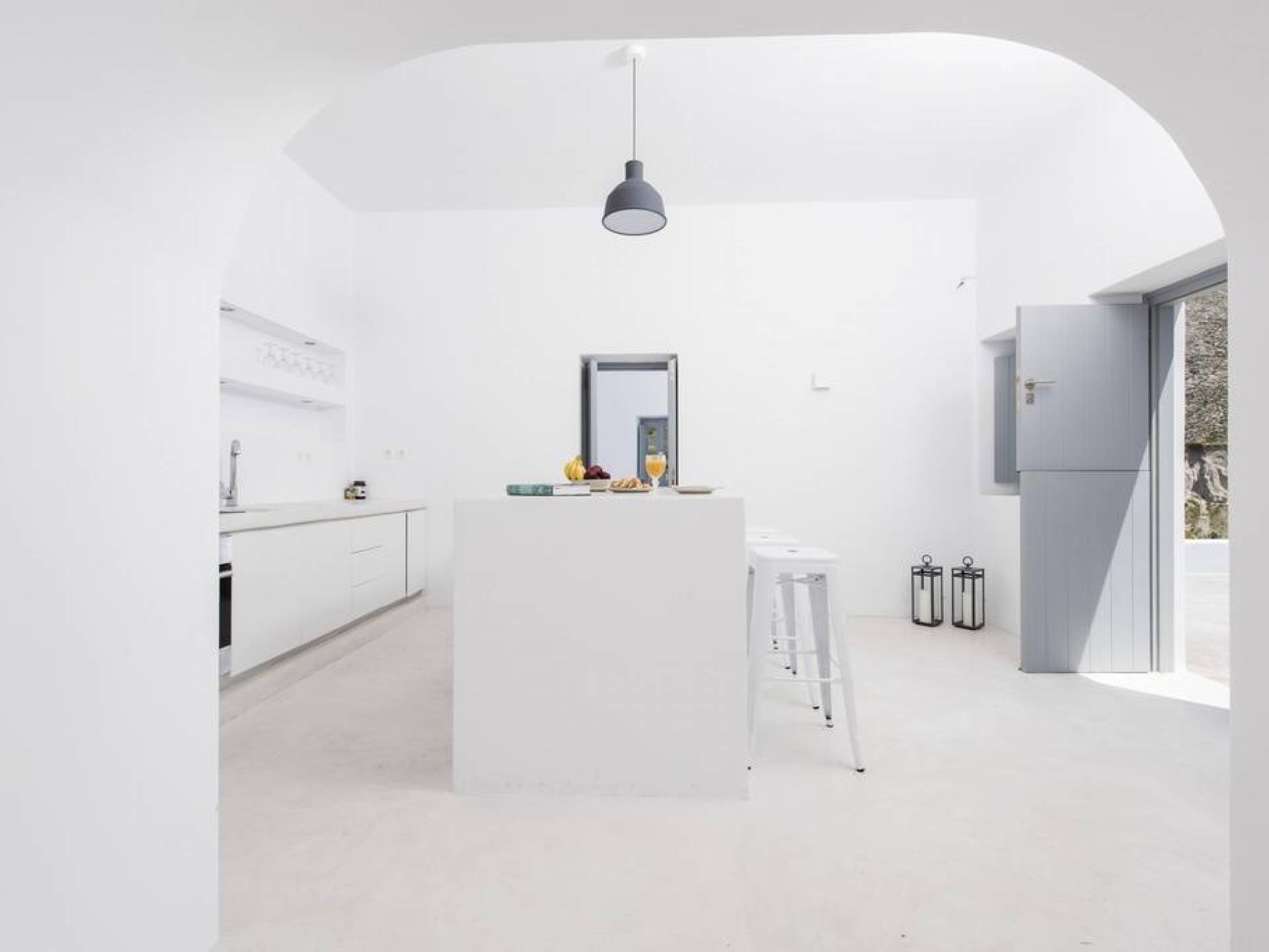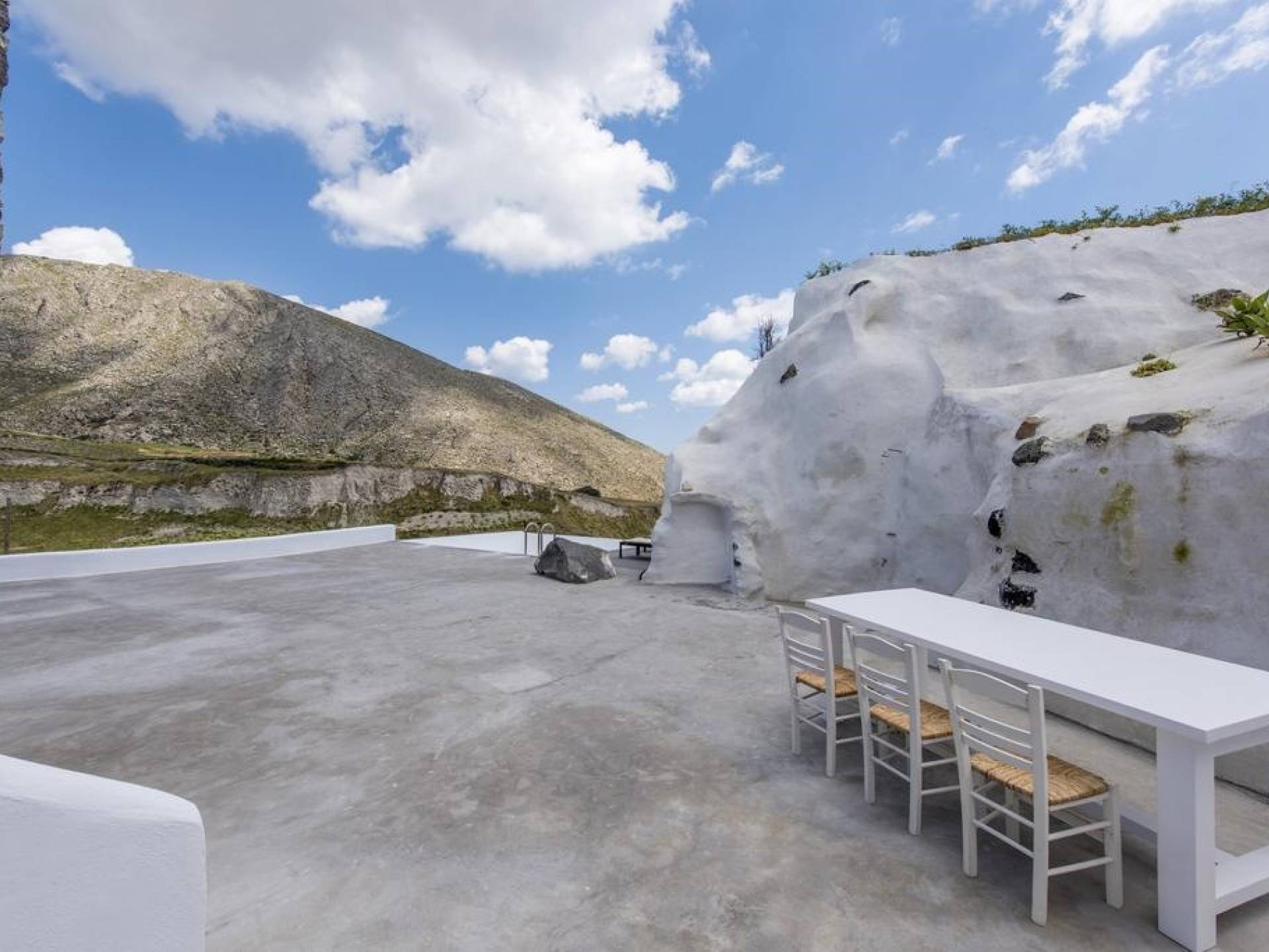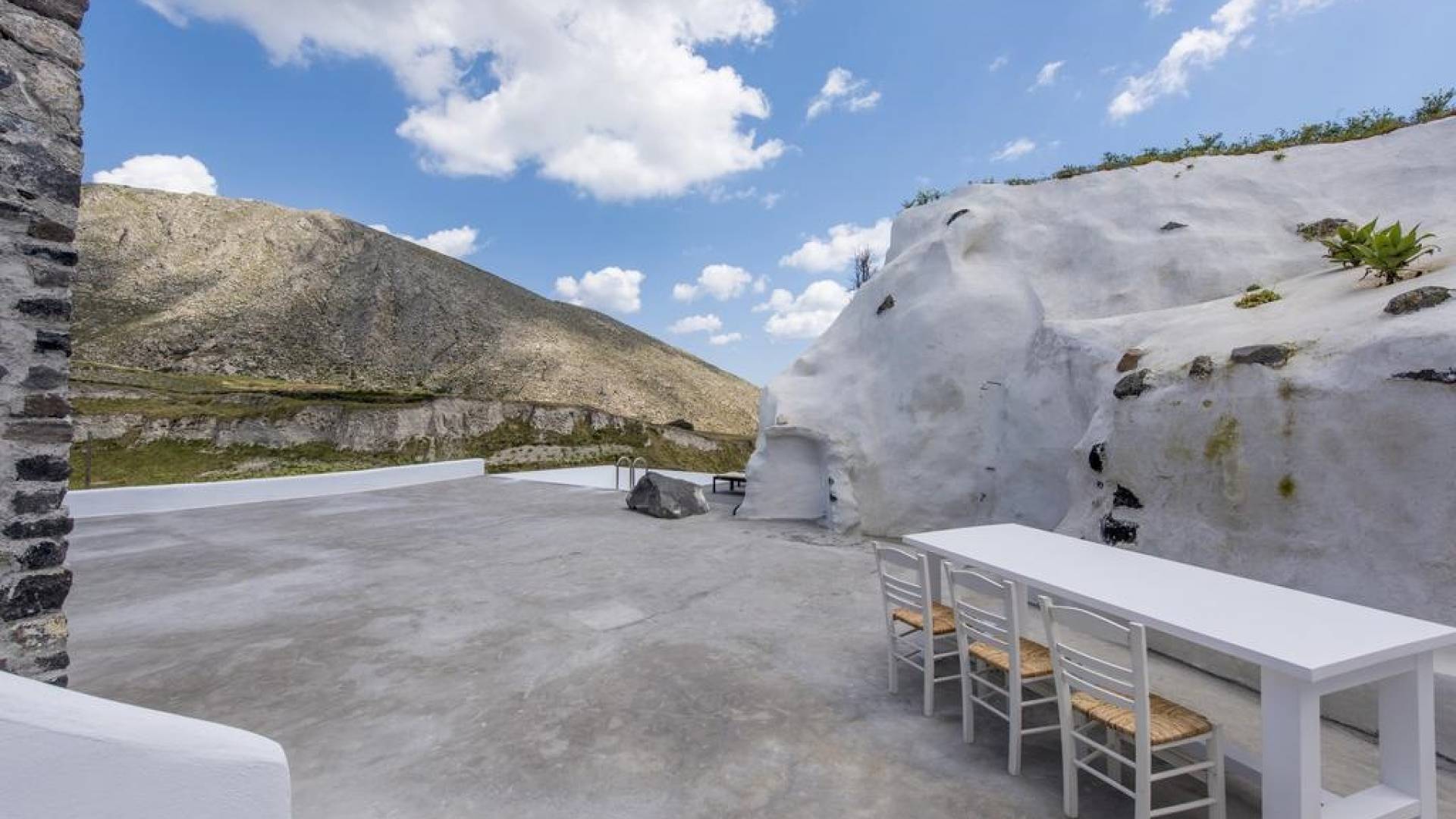 Dating from the early 20th century, the property was originally a small house of two rooms with a wine production and storage area attached. The cave, with its year-round constant temperatures, was used to store produce. Following a complete architectural redesign, the property today takes full advantage of Santorini’s unique land formations to create a contemporary space that preserves and enhances the island’s original architecture.