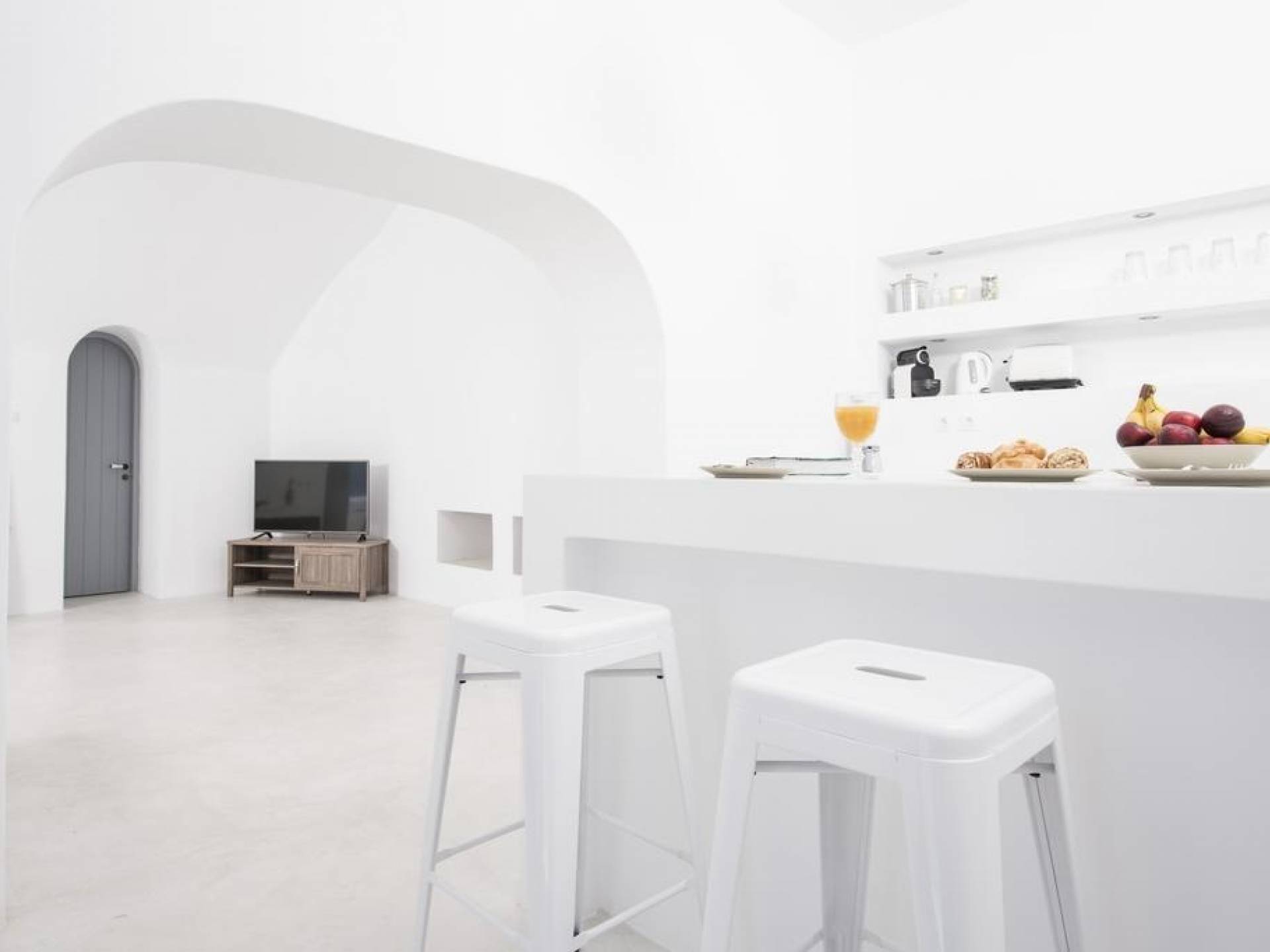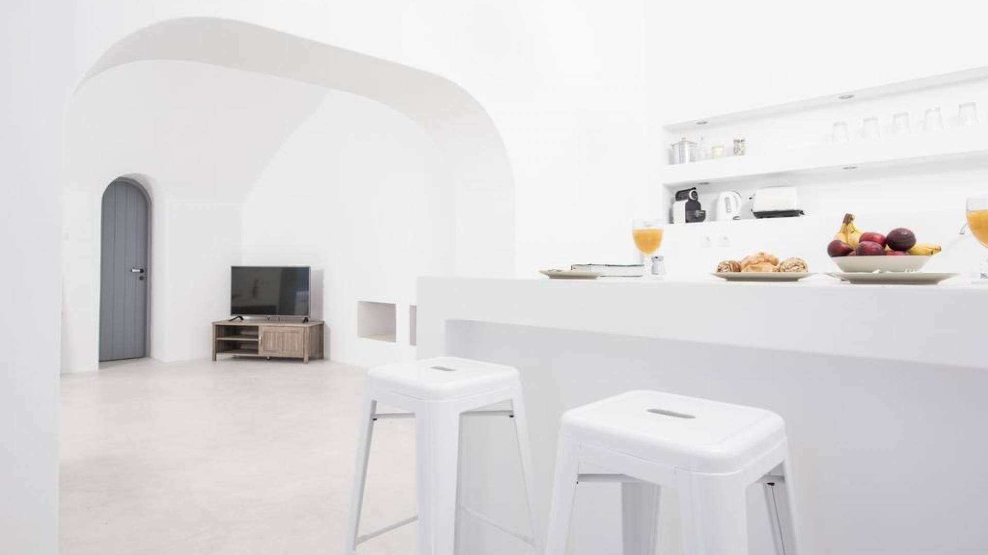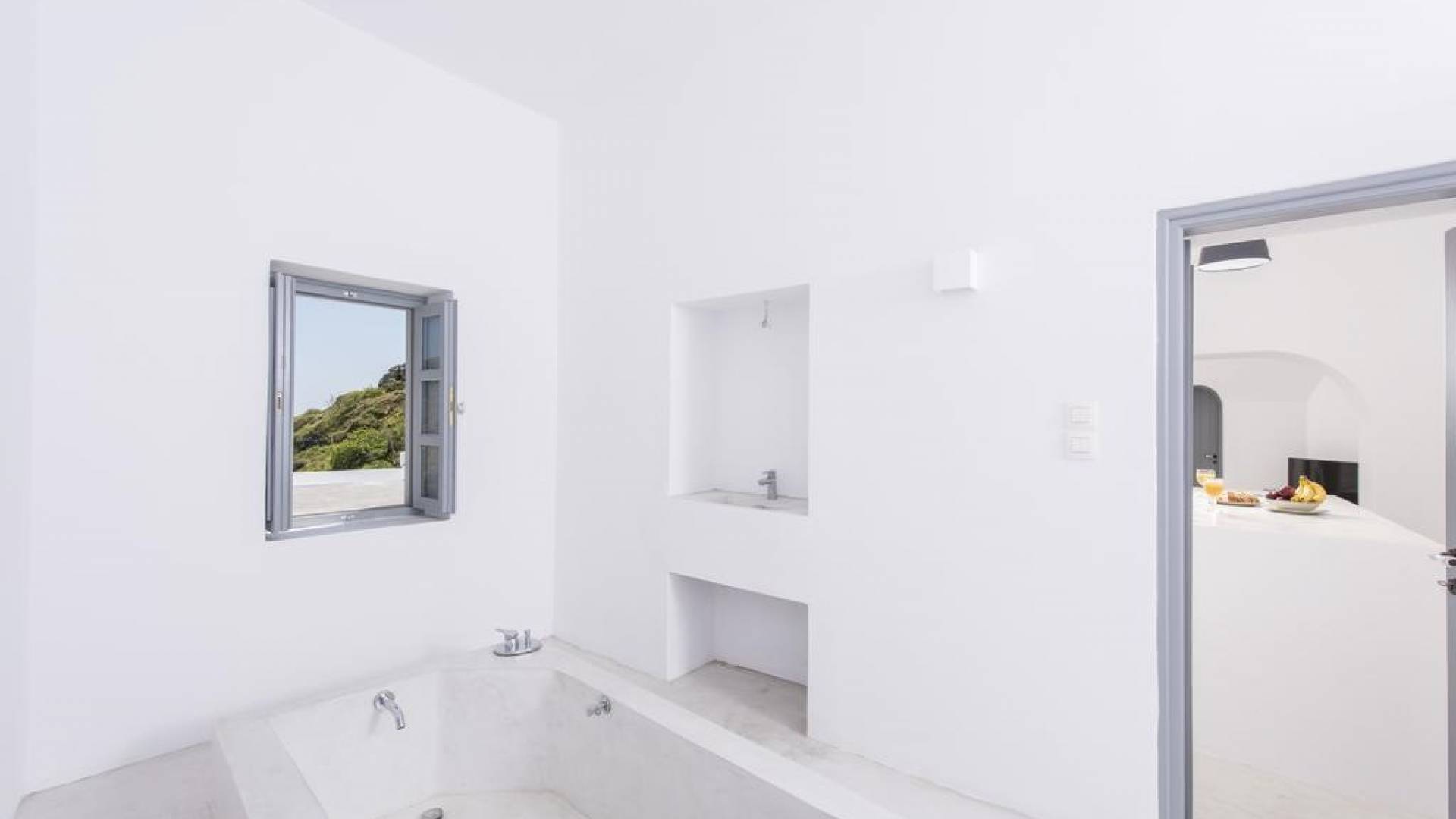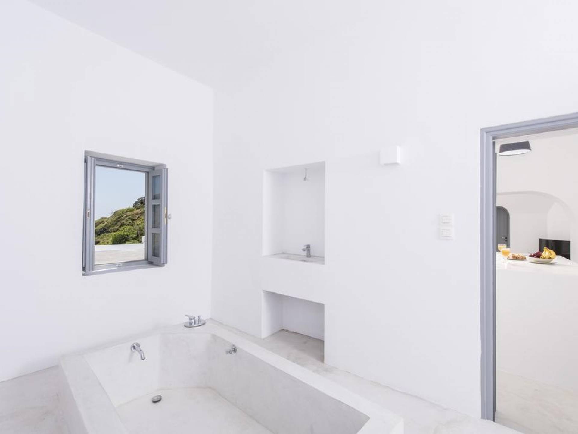 Dating from the early 20th century, the property was originally a small house of two rooms with a wine production and storage area attached. The cave, with its year-round constant temperatures, was used to store produce. Following a complete architectural redesign, the property today takes full advantage of Santorini’s unique land formations to create a contemporary space that preserves and enhances the island’s original architecture.
