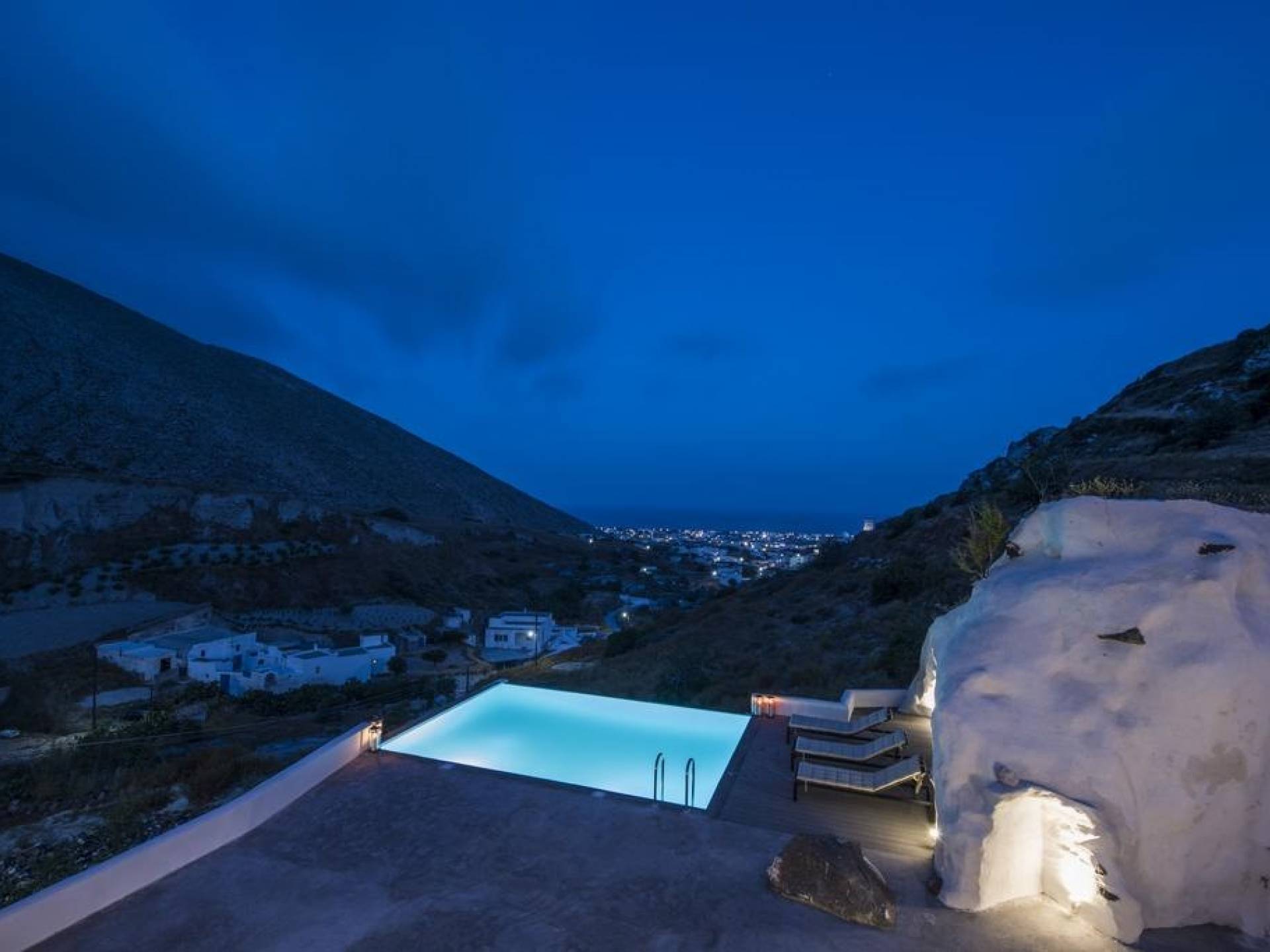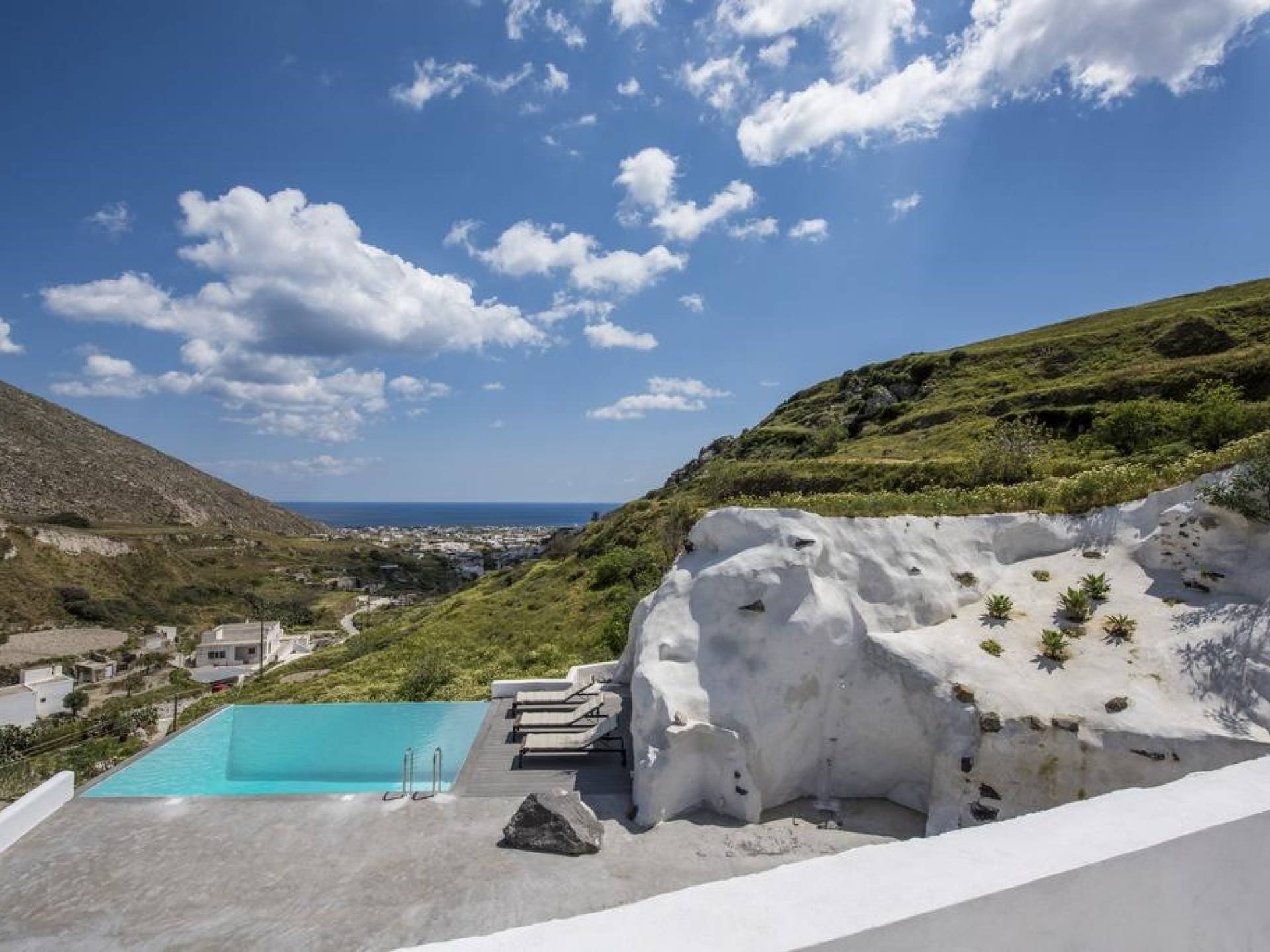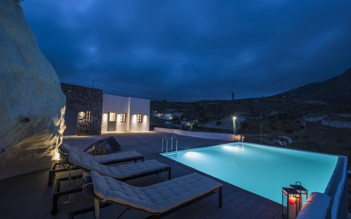 Architecturally designed with a sleek, minimalistic style, Villa Insolito features two separate living areas (a traditional house and cave) for one or two families or groups of up to eight people. Sweeping sea views from the villa’s private terrace and a beautifully positioned infinity pool complete the setting. For those who love the sea, Santorini’s famous black beaches and crystal clear waters are just a 5-minute drive away. Villa Insolito is now open for guests and we welcome you to come and enjoy a truly unique holiday experience.
