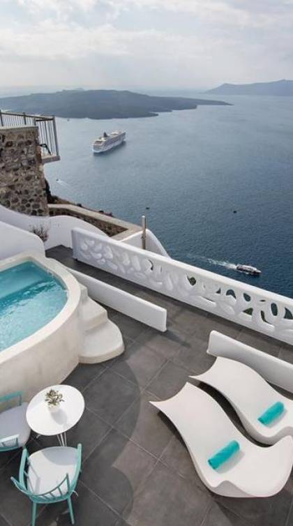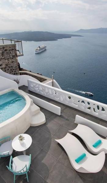 Savor all the best of Fira from Athina Luxury Suites. Just steps away from decadent restaurants and the cosmopolitan lifestyle of Santorini. Yet, tucked away in a quiet, picturesque neighborhood, guests are wrapped in privacy and tranquility. Every suite offers dramatic views of the volcano, the glittering Aegean Sea, and stunning sunsets.