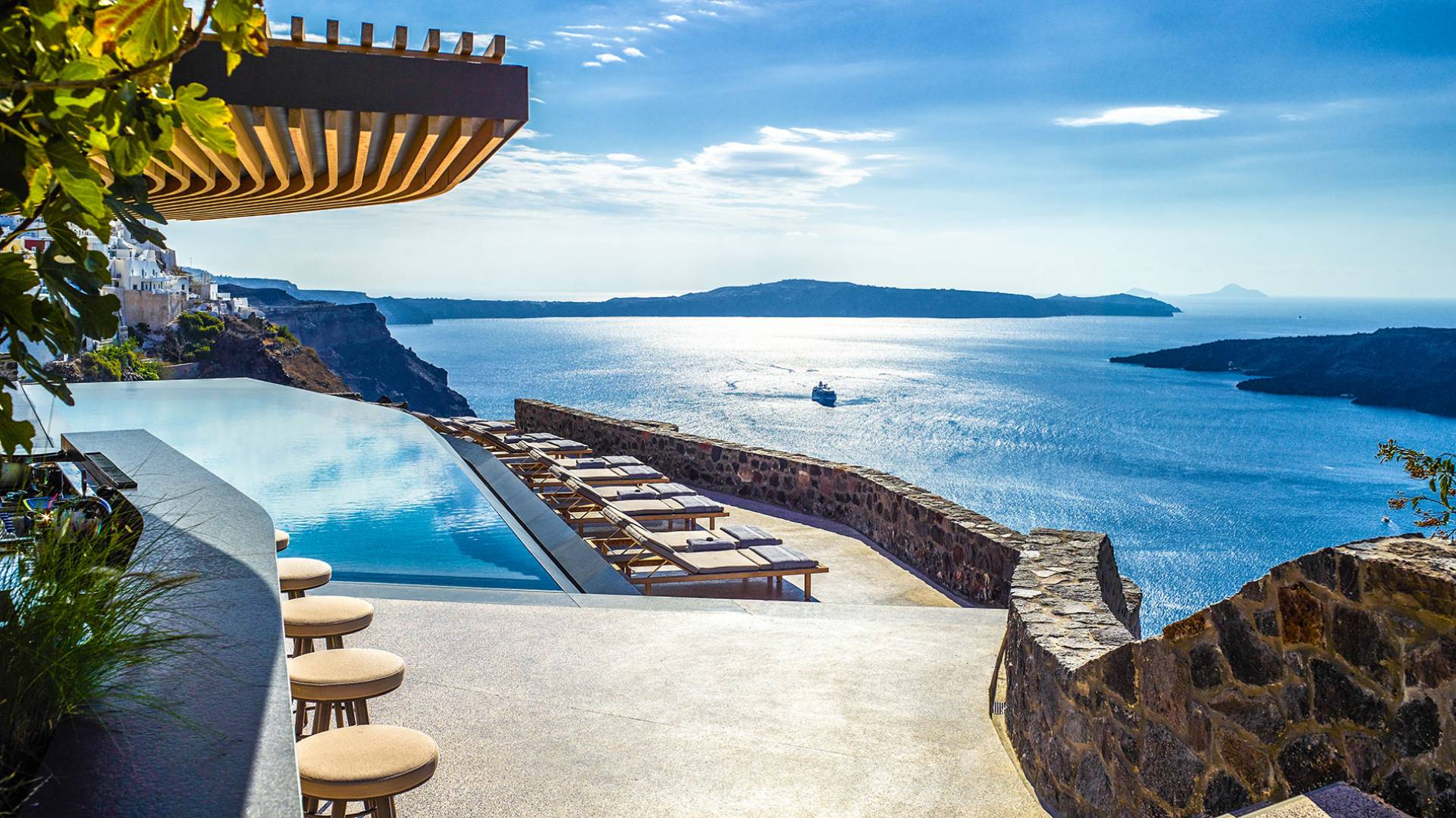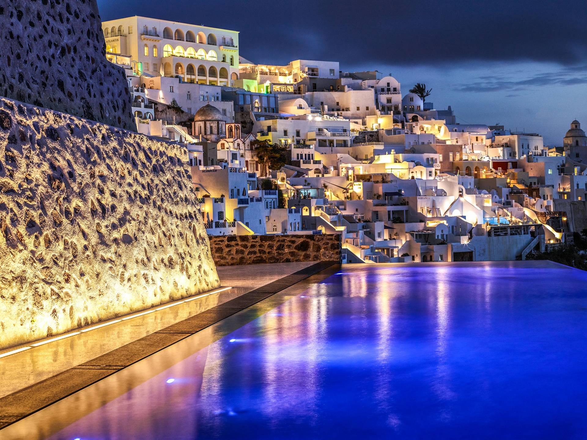 In the heart of Fira, in the Cyclades island complex in Greece, villa Bordeaux stands out for its idyllic location and architectural splendour as well as its awe-inspiring volcanic view. This enchanting villa features 4 individual suites interconnected in pairs, two Santorini suites with a private pool, one maisonette and one open-plan suite, all featuring exceptional facilities, high-end amenities and amazing vistas. Villa Bordeaux is a luxury Fira accommodation fitted with underfloor heating, individually controlled A/C, Smart TV, Satellite Channels, Direct Dial Phone, Dock station & iPod, Ipad, high-speed wireless internet, wet bar, in-room safe box, hairdryer, luxurious toiletries, linen of excellent quality and pillow menu. In order to further enhance the holiday experience for all of its guests the villa also features an amazing luxury Santorini restaurant with majestic views of the sea and sunset.