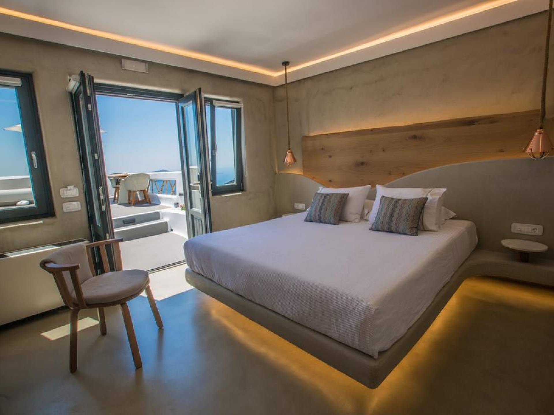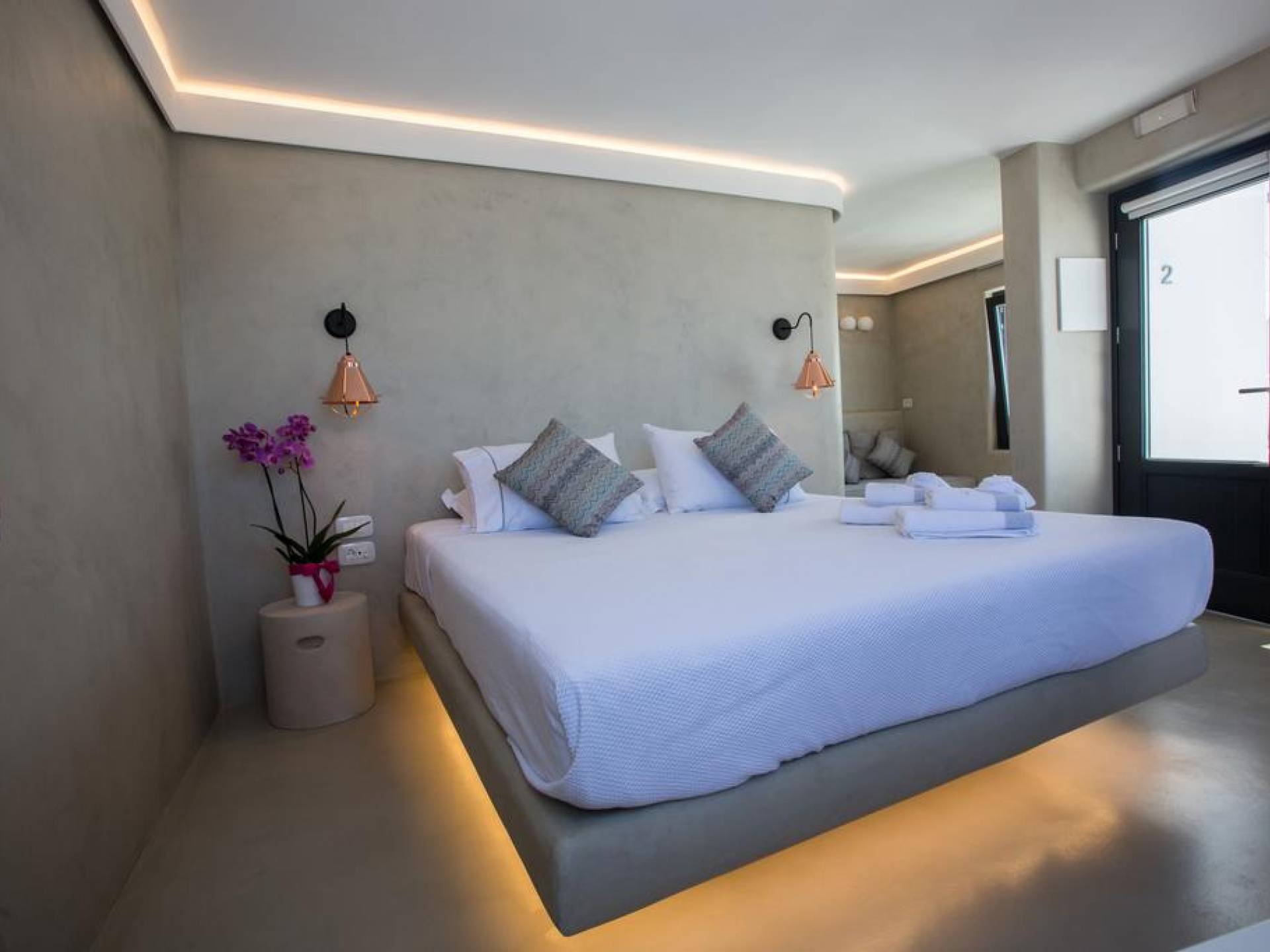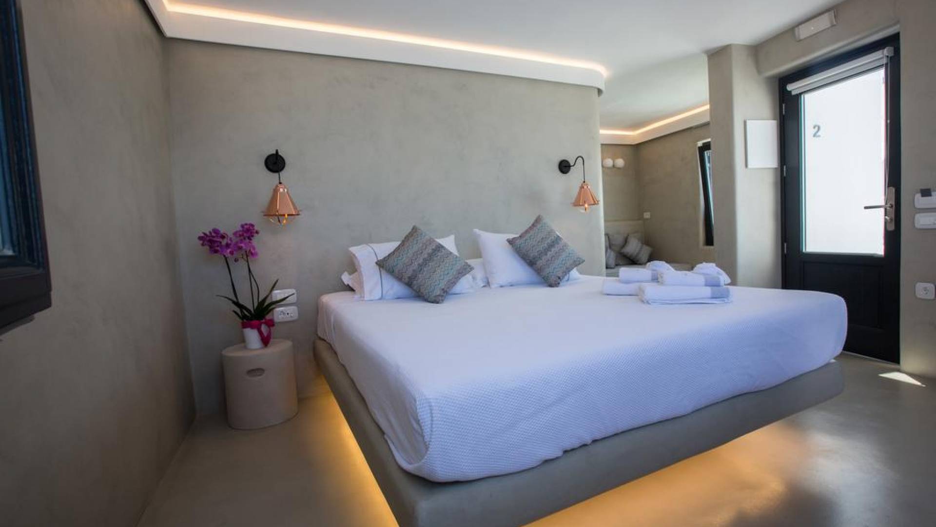 The cave-style impression of distinctive aesthetics maintains the traditional style with a touch of luxury. It offers a private balcony with infinite views of the eternal blue of the Aegean Sea. You will have the chance to enjoy one of the world's most renowned sunsets with the color pallet of the sun, fading out in the sea, on your doorstep. Superior Suite can accommodate up to two guests, consisting of one king-size bed, a bathroom with a shower, a living area, and a private balcony with an outdoor jacuzzi for moments of relaxation with splendid views. Architectural details such as the elevated bed and hidden lighting create a magical atmosphere. This will definitely be an experience for all your senses. Do not miss the chance to indulge yourself with the beauty of one of Greece's top islands. You most definitely deserve it.