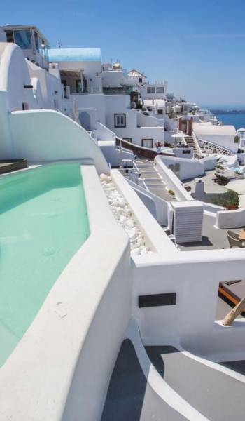Chic Hotel is an elegant, luxurious, and excellently located hotel in the peaceful village of Firostefani, with astonishing views of the Volcanic islets and the Caldera, only 5 minutes walking distance from the island’s capital, Fira.