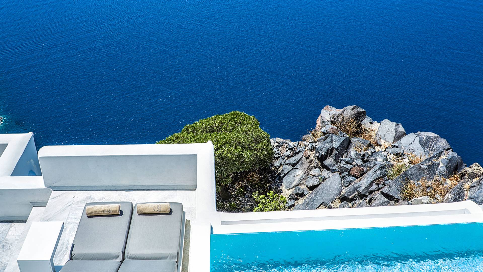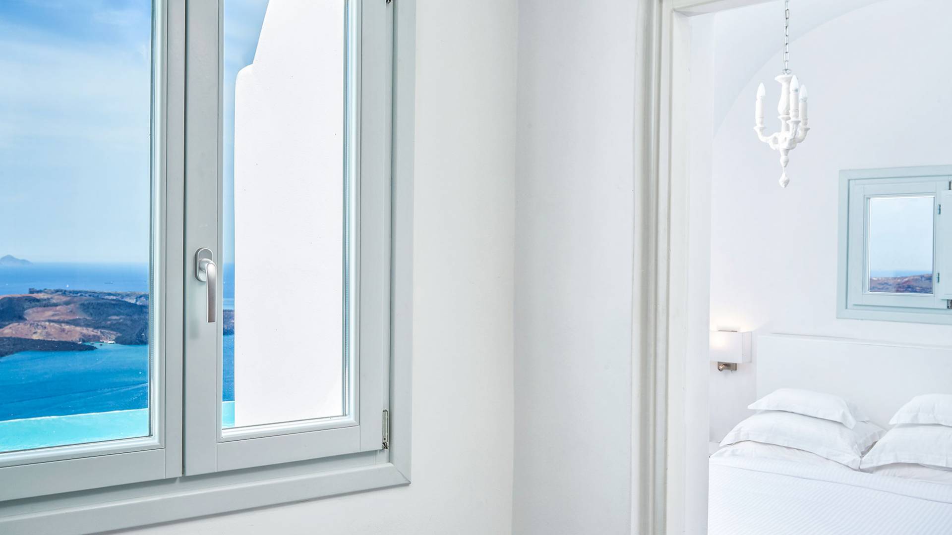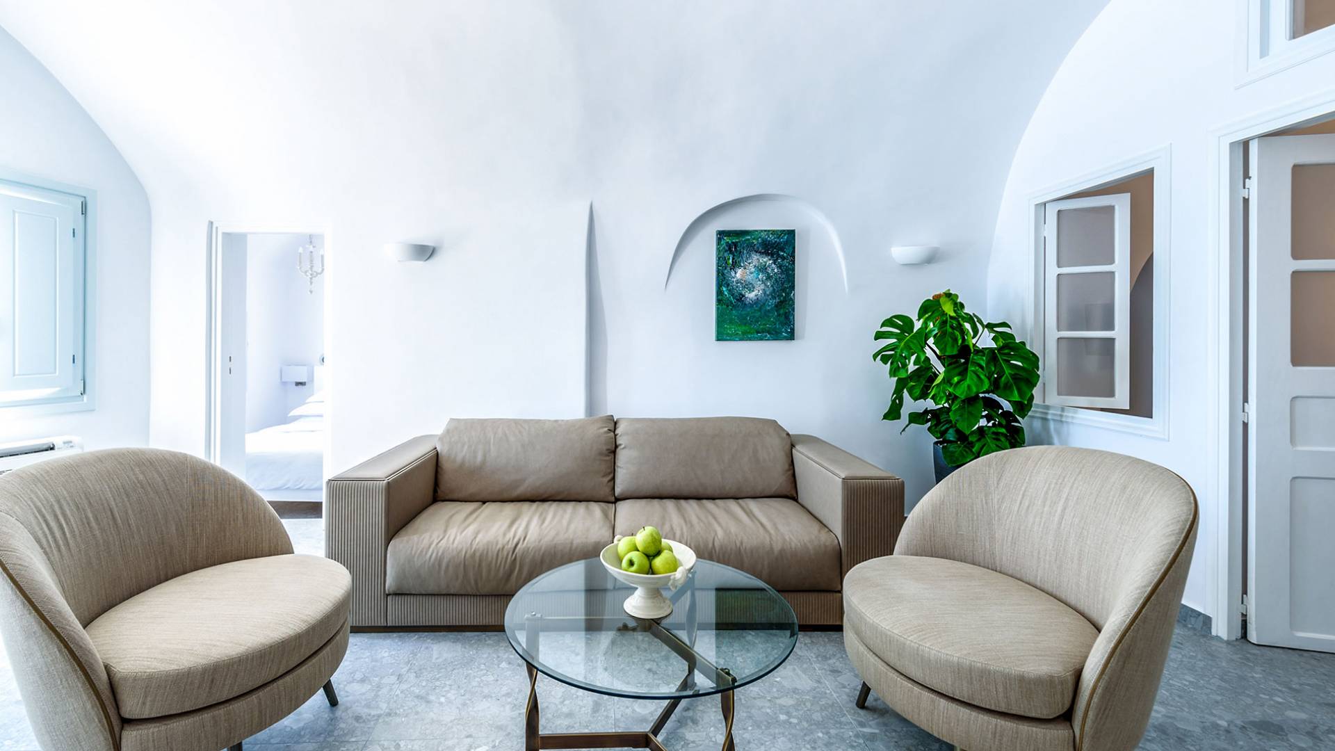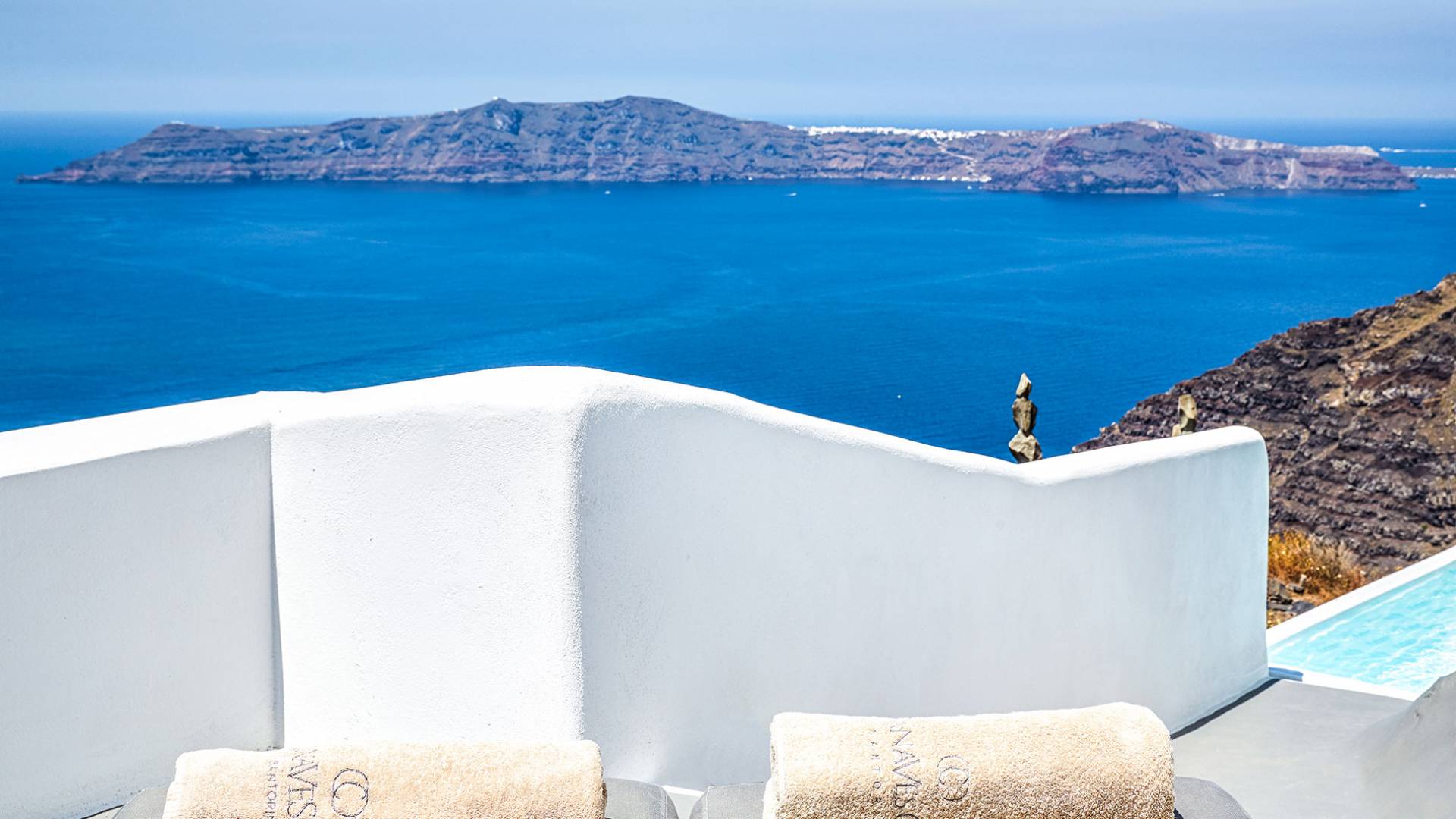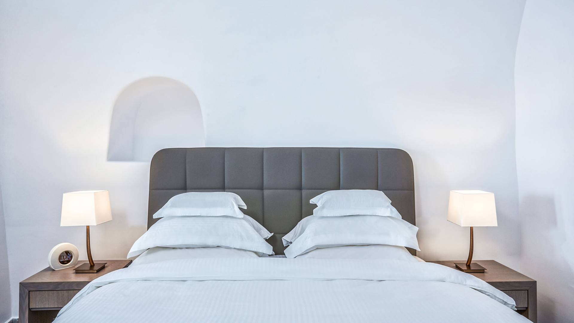 Alongside all the VIP amenities and services you could wish for, you will find your own private hot tub on your balcony. The Two Bedroom Villa with Outdoor Plunge Pool and Caldera View will be the perfect place to unwind in a calm and private setting; it offers spectacular unobstructed views to the volcano, Skaros Rock and the sunset and a hot tub in the balcony.