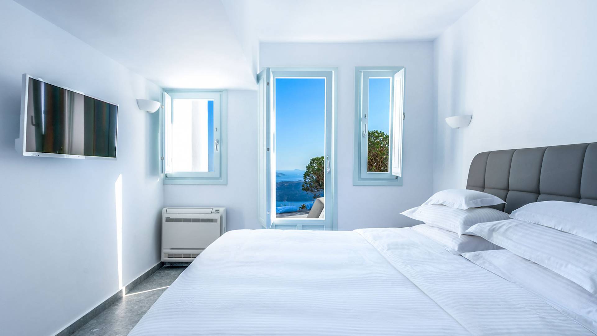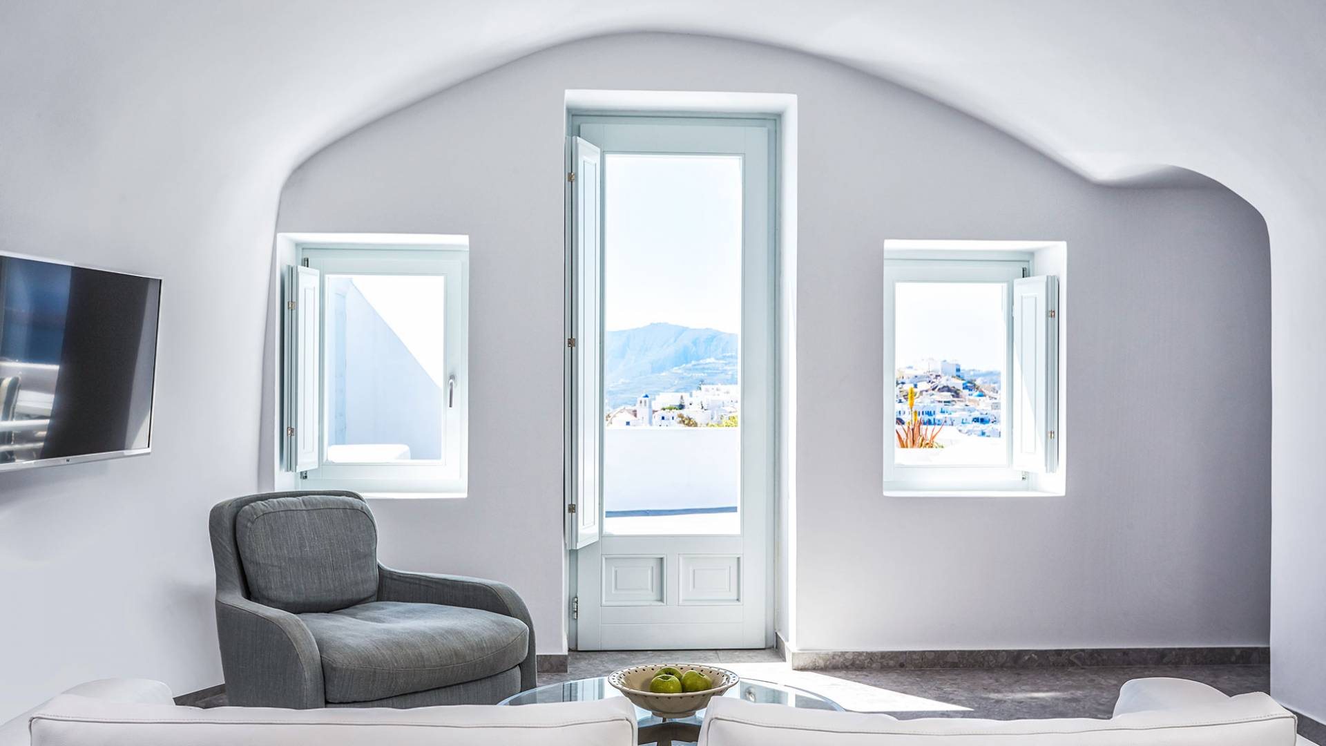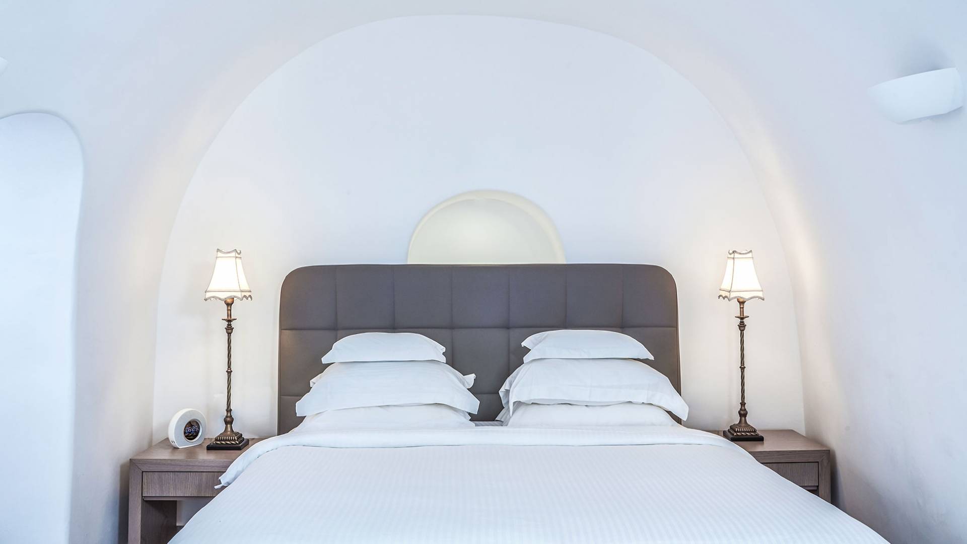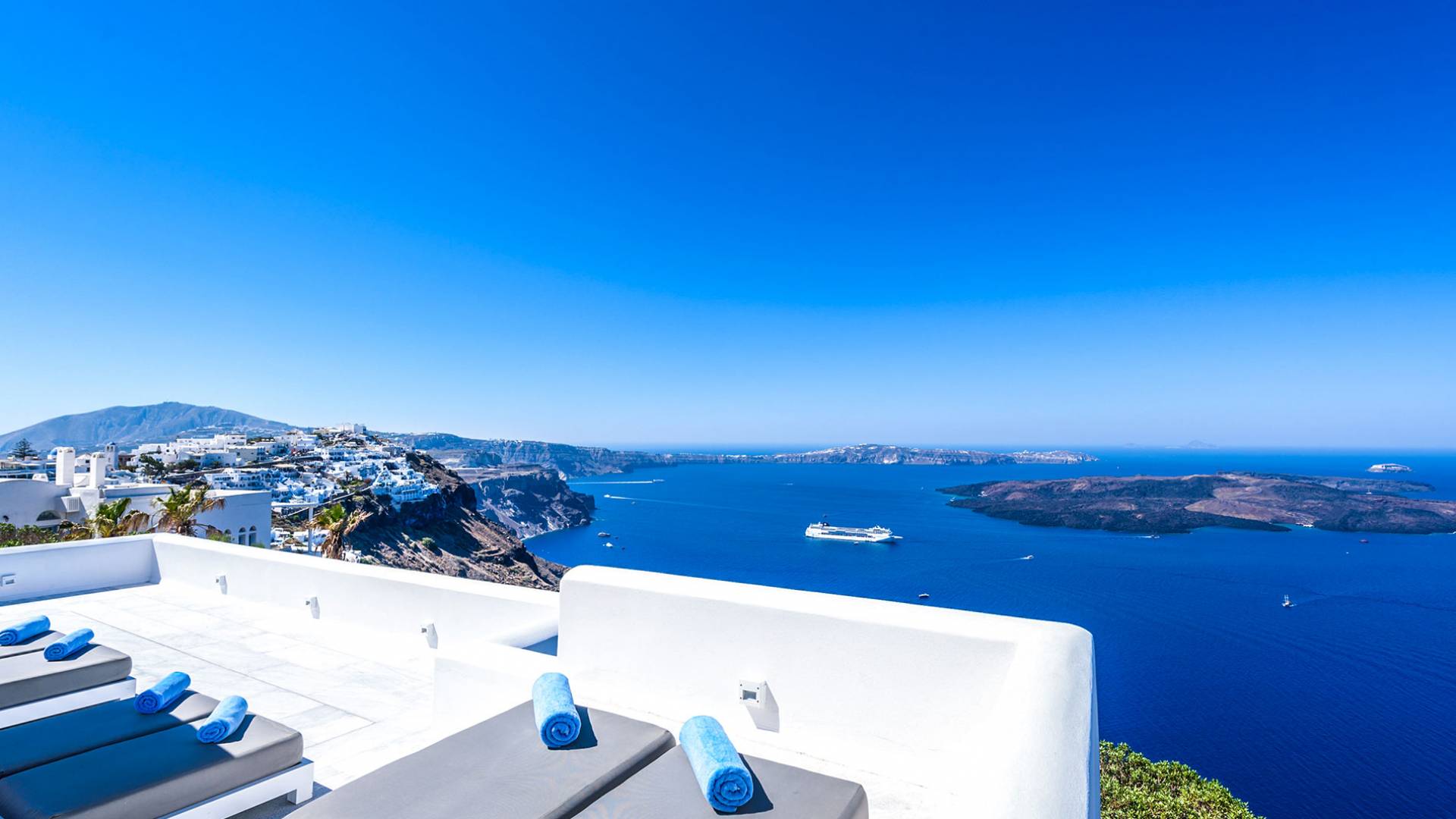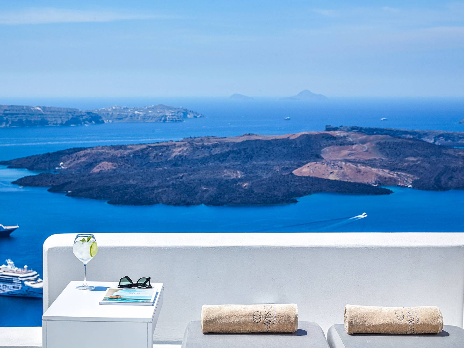 Alongside all the VIP amenities and services you could wish for, you will find your own private hot tub on your balcony. The Two Bedroom Villa with Outdoor Plunge Pool and Caldera View will be the perfect place to unwind in a calm and private setting; it offers spectacular unobstructed views to the volcano, Skaros Rock and the sunset and a hot tub in the balcony.